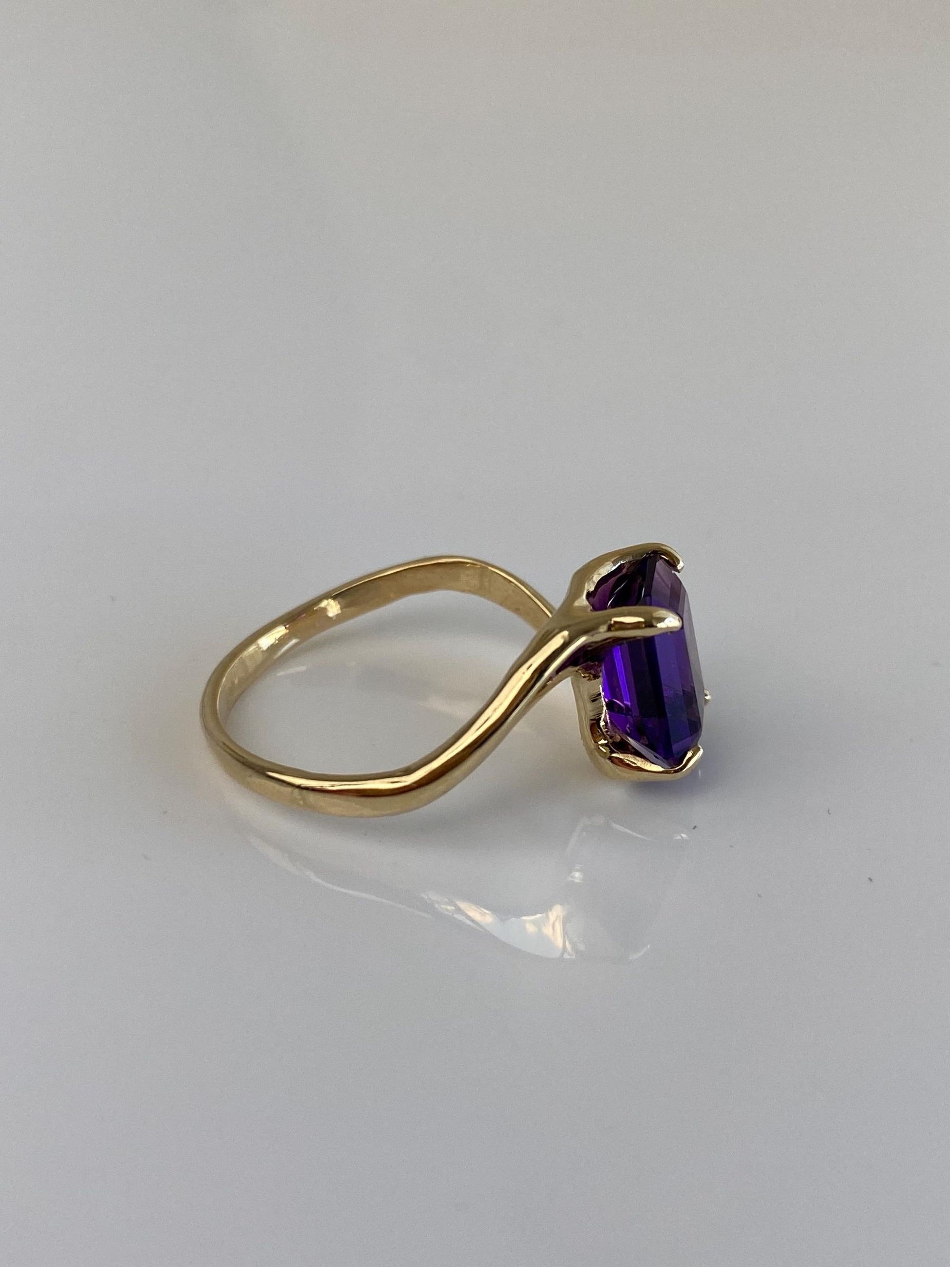 Vintage Solid 14k Yellow Gold Amethyst Ring - Size 7
