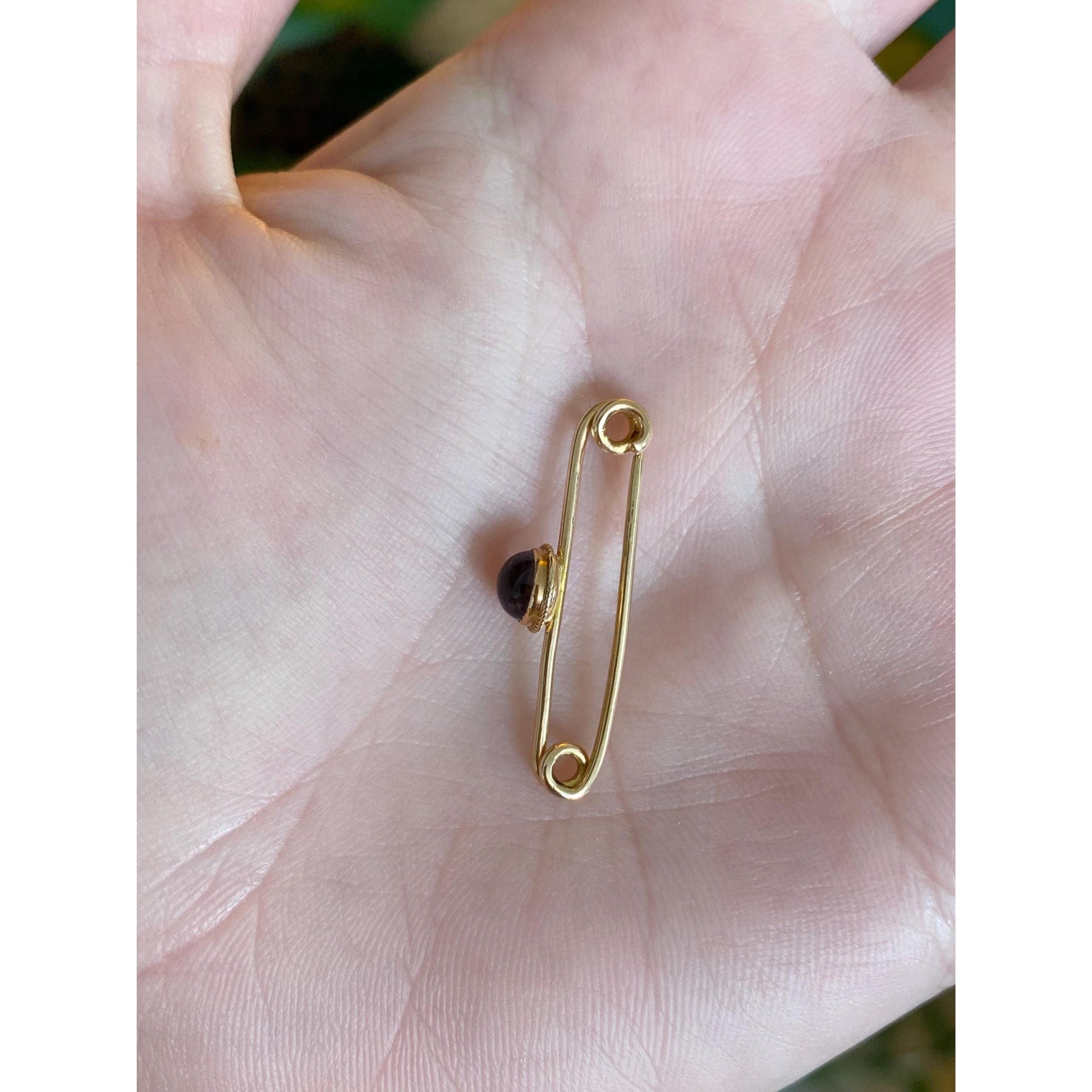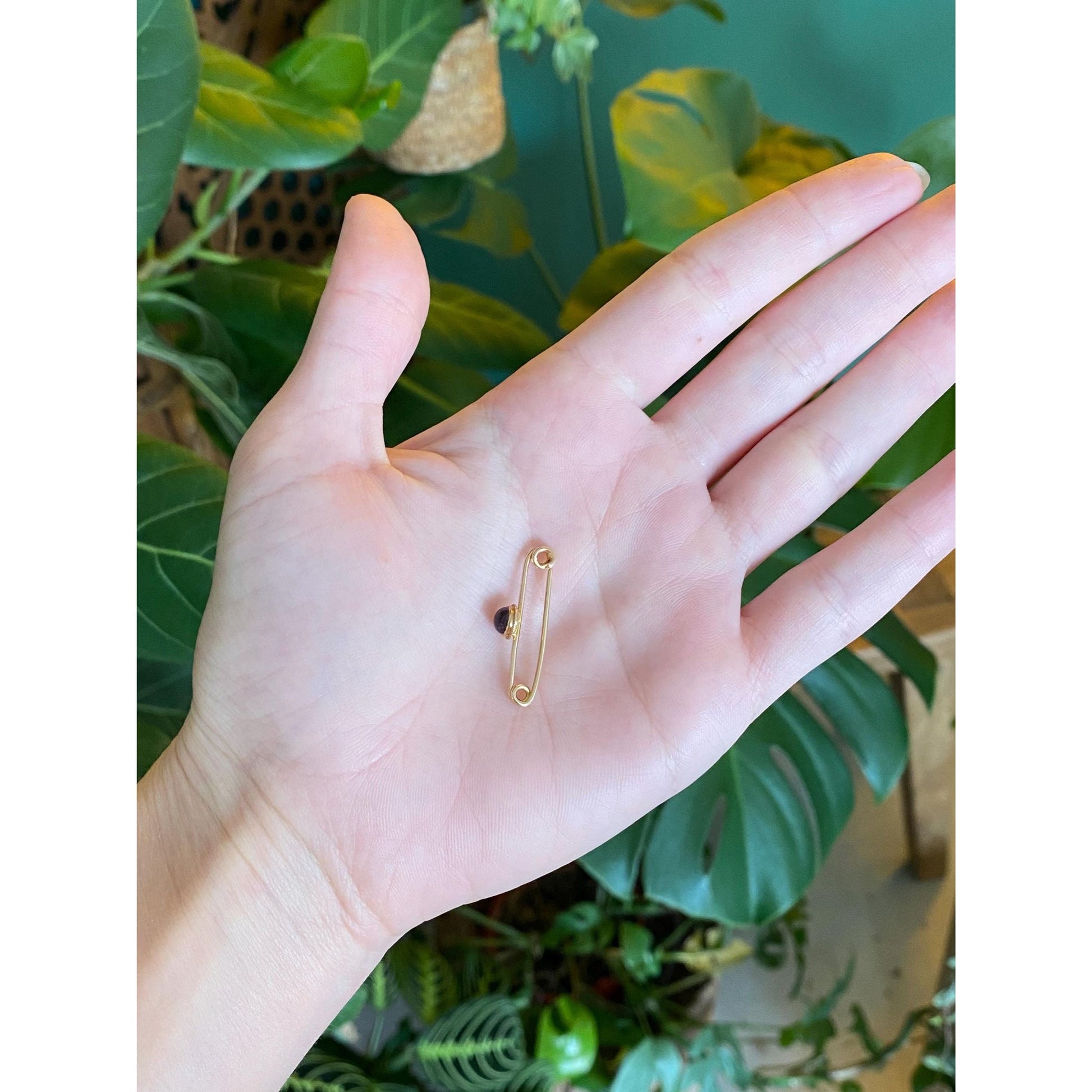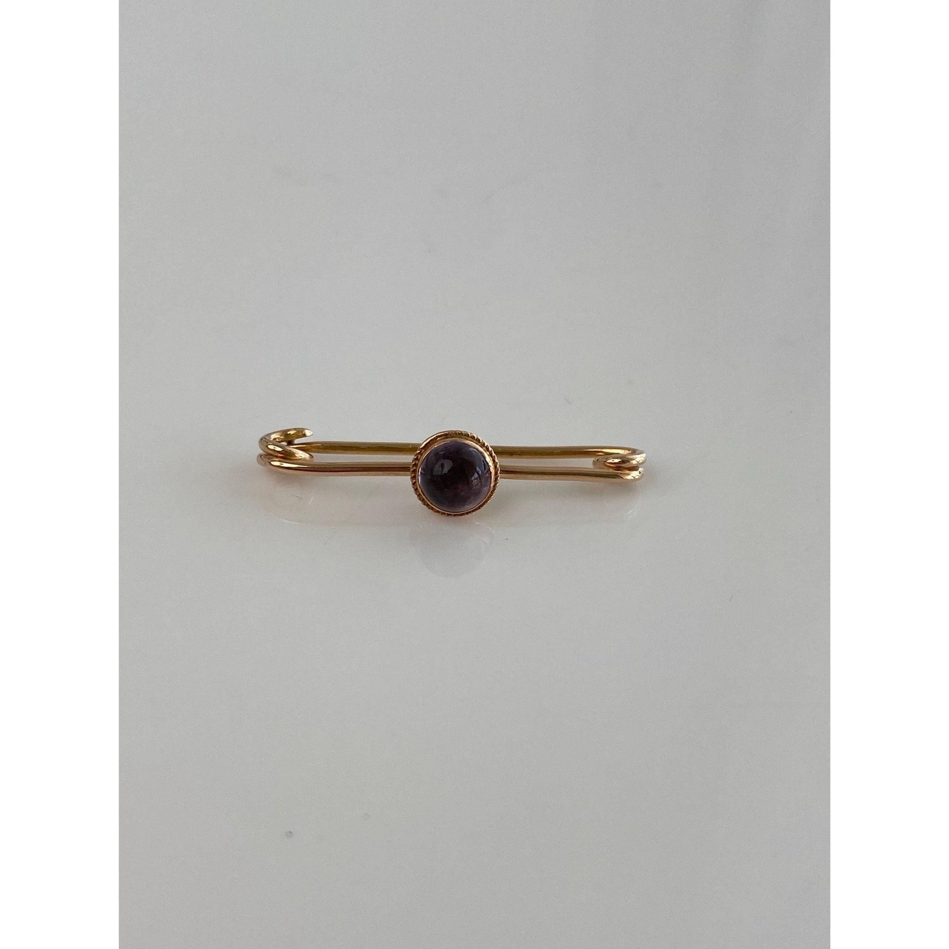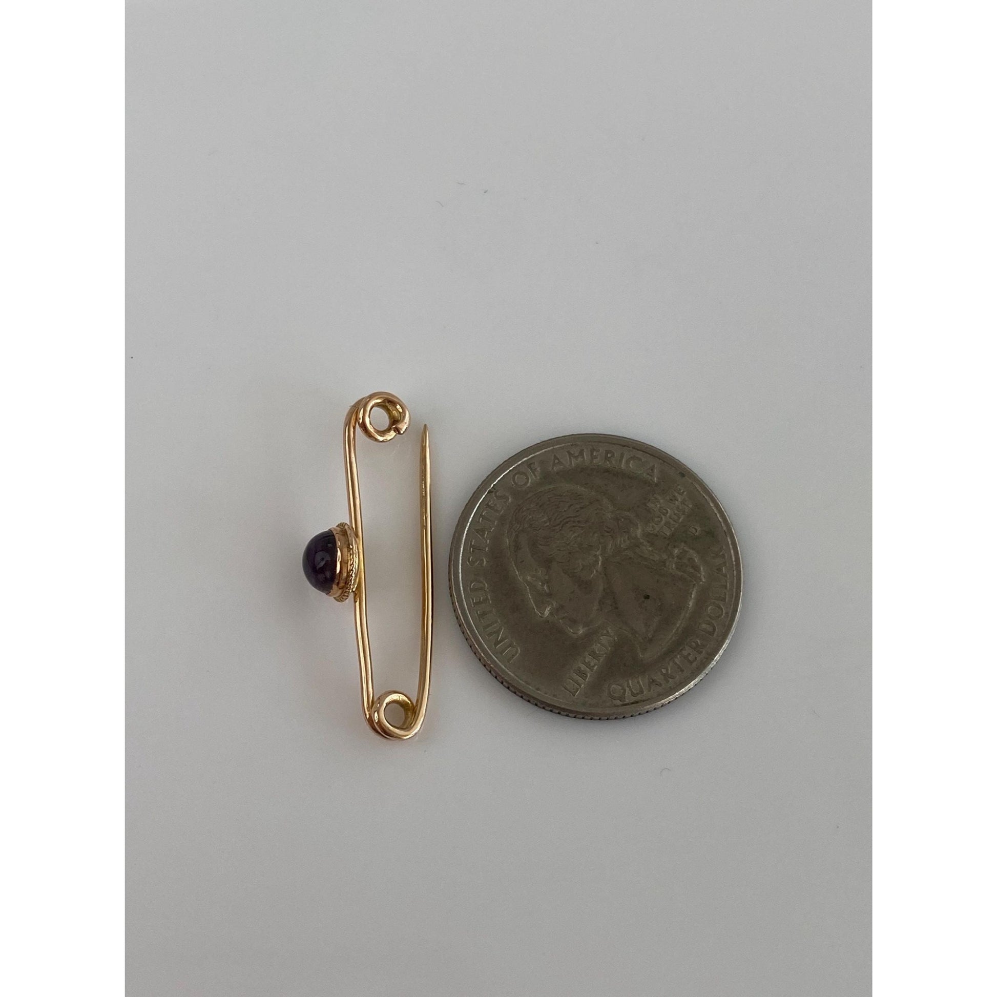 Vintage Solid 14k Yellow Gold Amethyst Safety Pin