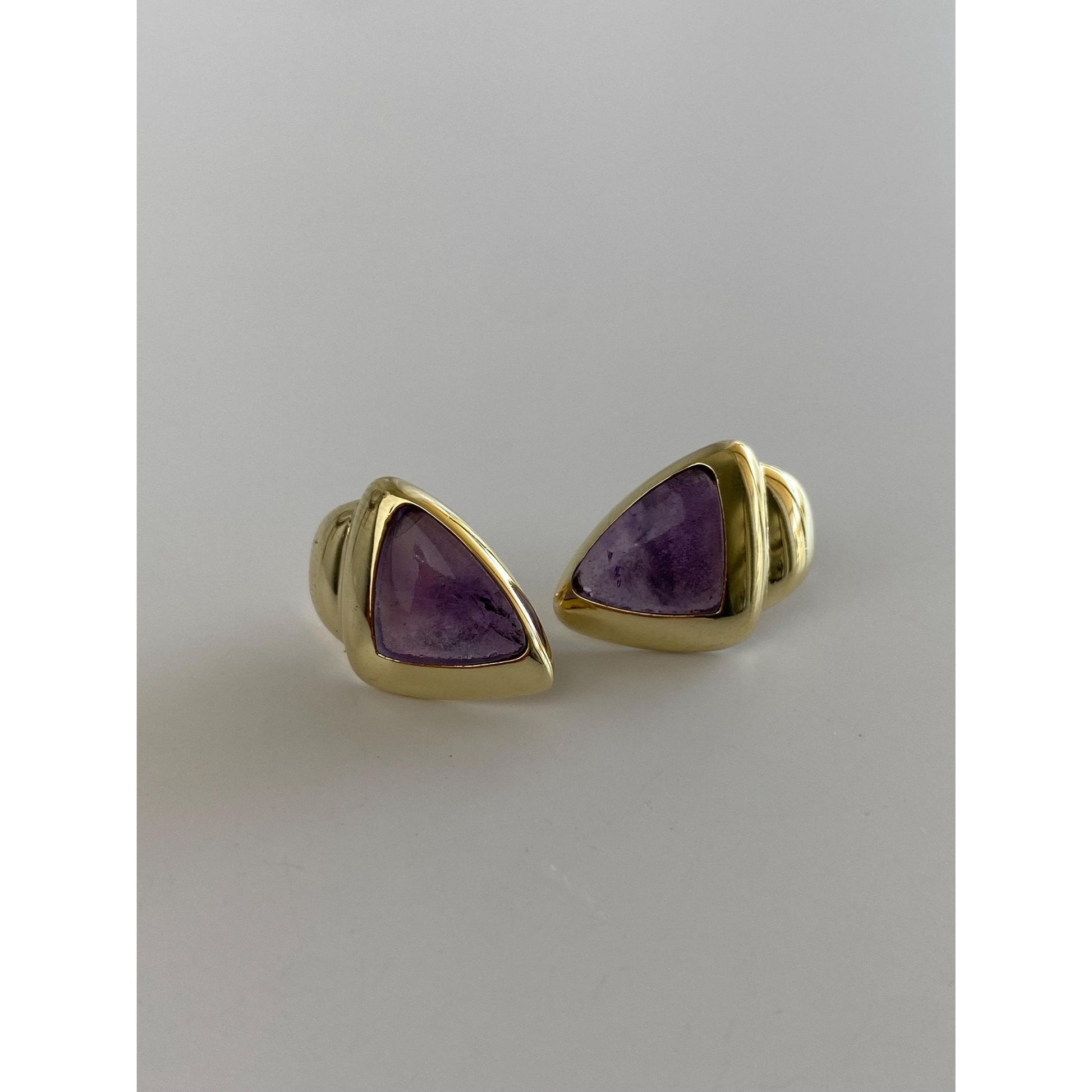 Vintage Solid 14k Yellow Gold Amethyst Stud Earrings