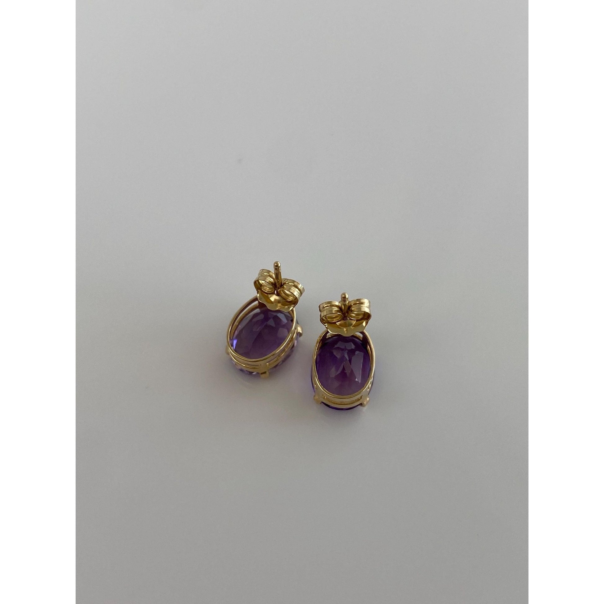 Vintage Solid 14k Yellow Gold Amethyst Stud Earrings