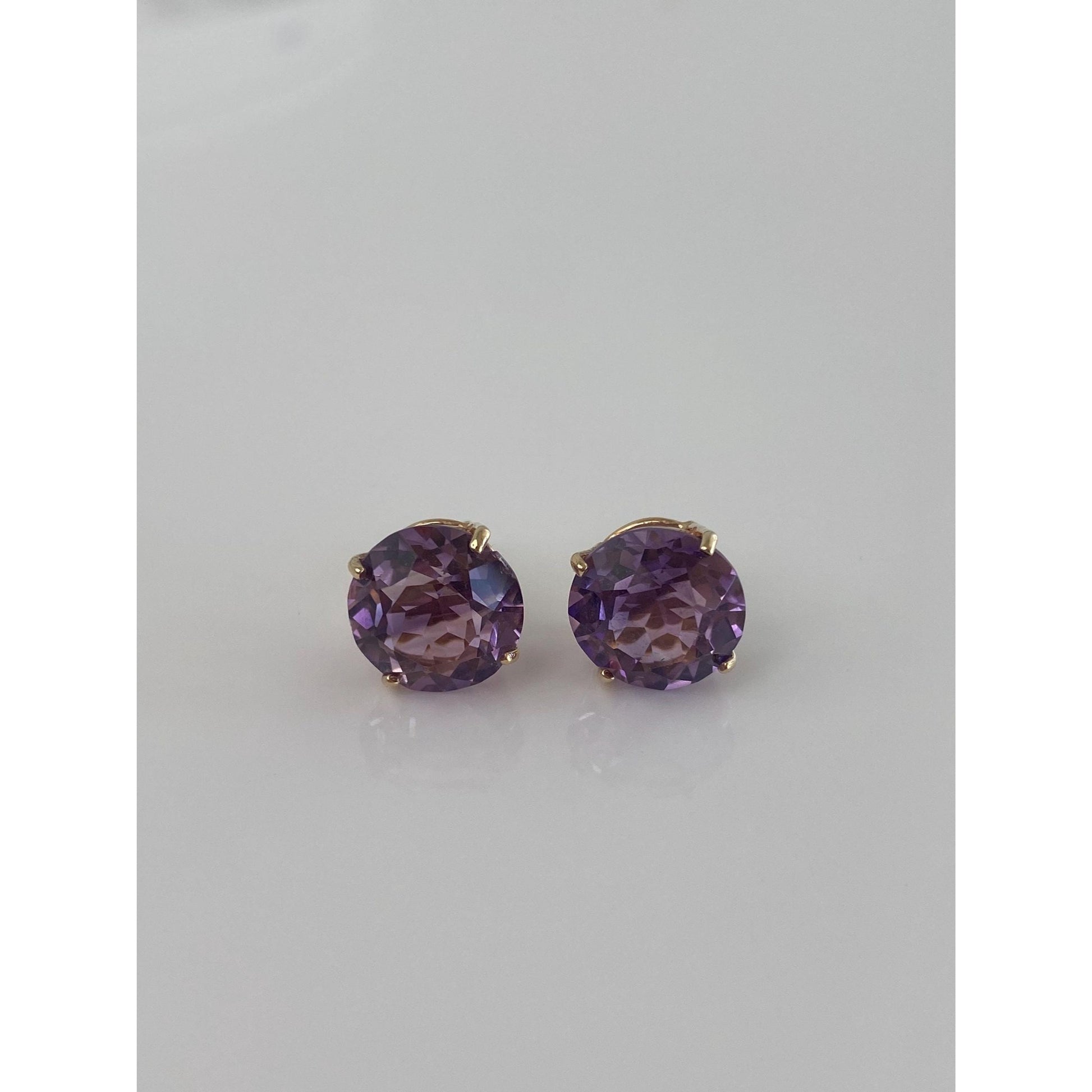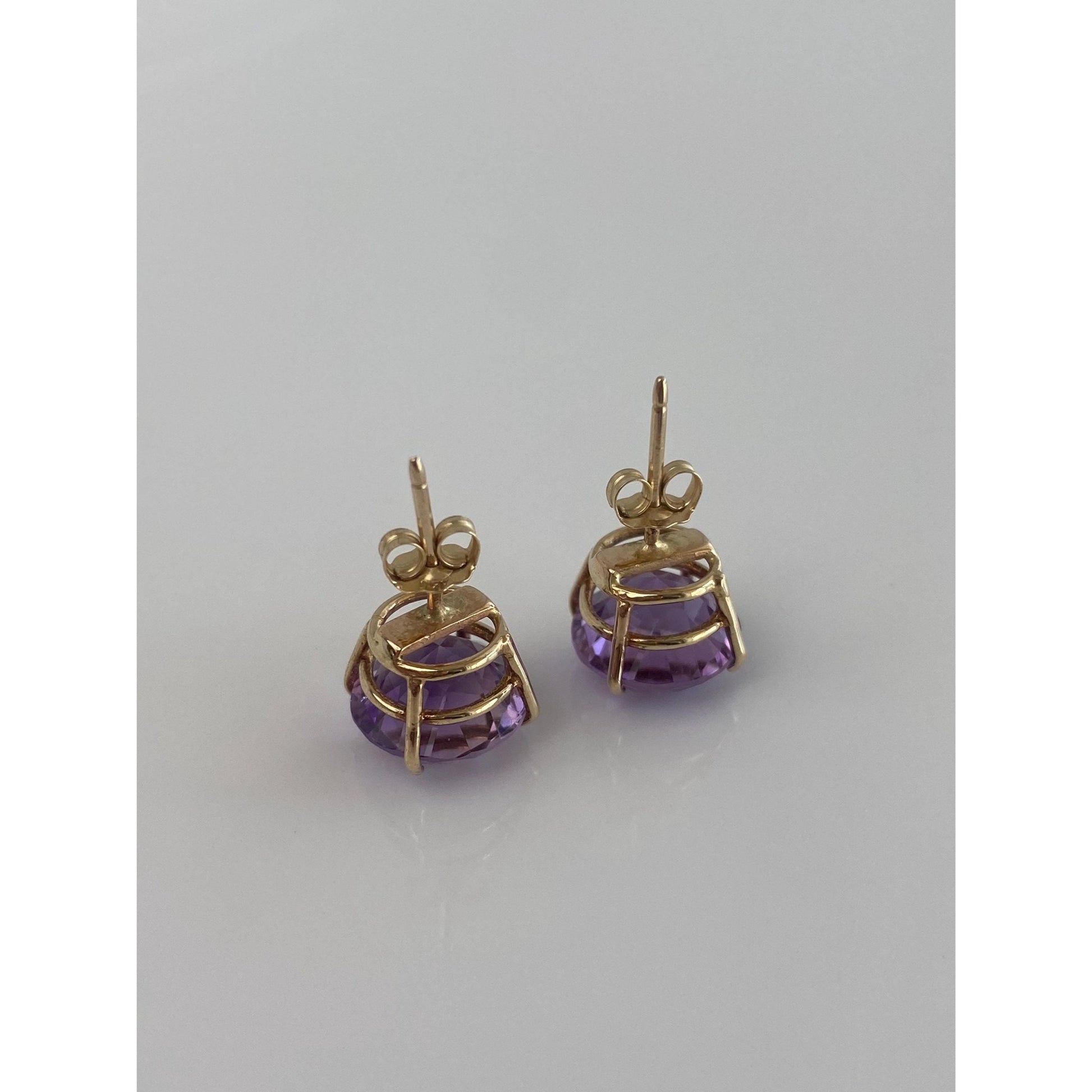Vintage Solid 14k Yellow Gold Amethyst Stud Earrings