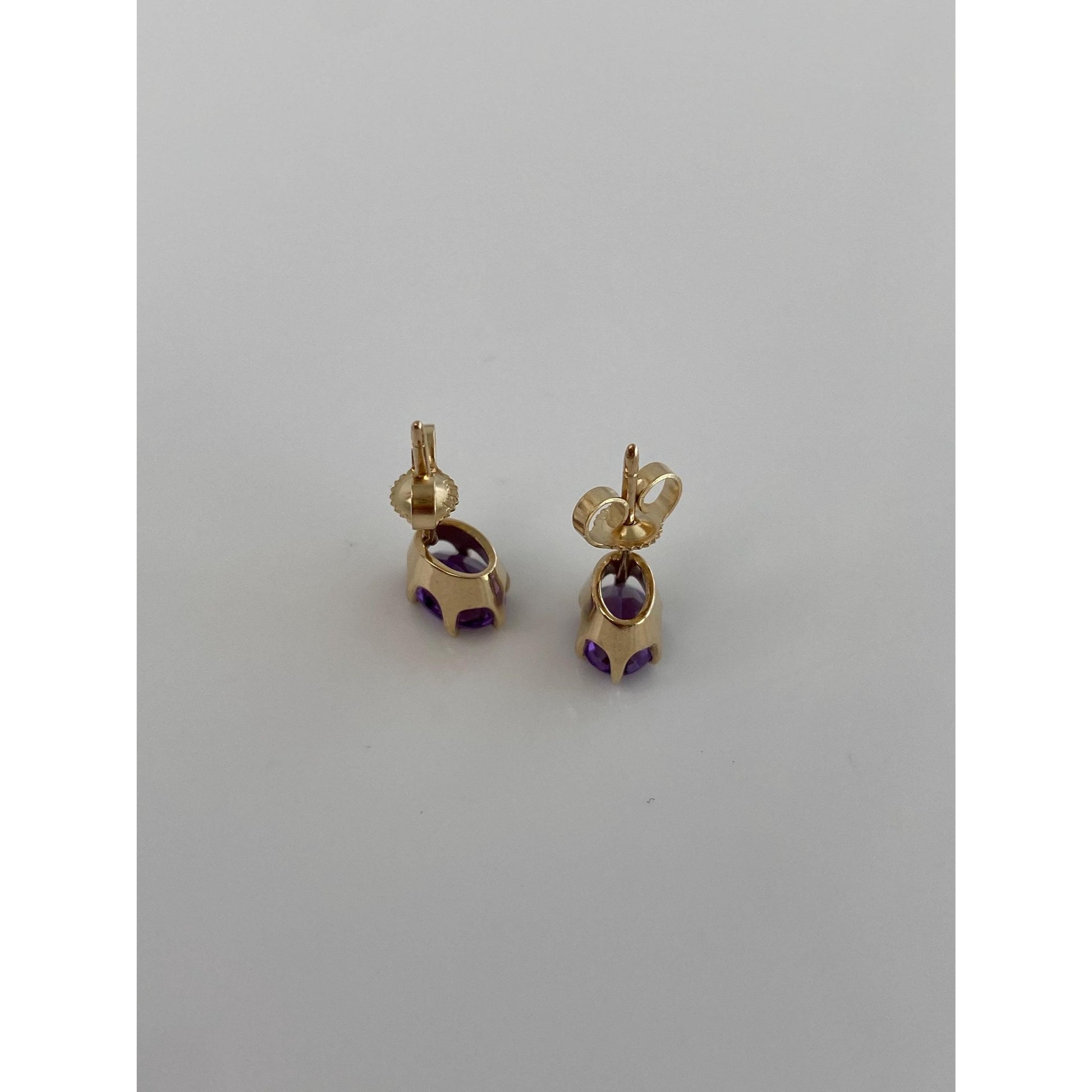 Vintage Solid 14k Yellow Gold Amethyst Stud Earrings