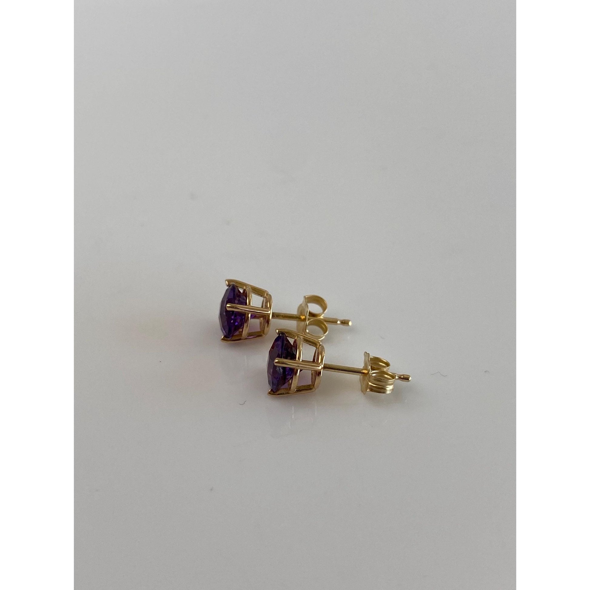 Vintage Solid 14k Yellow Gold Amethyst Stud Earrings