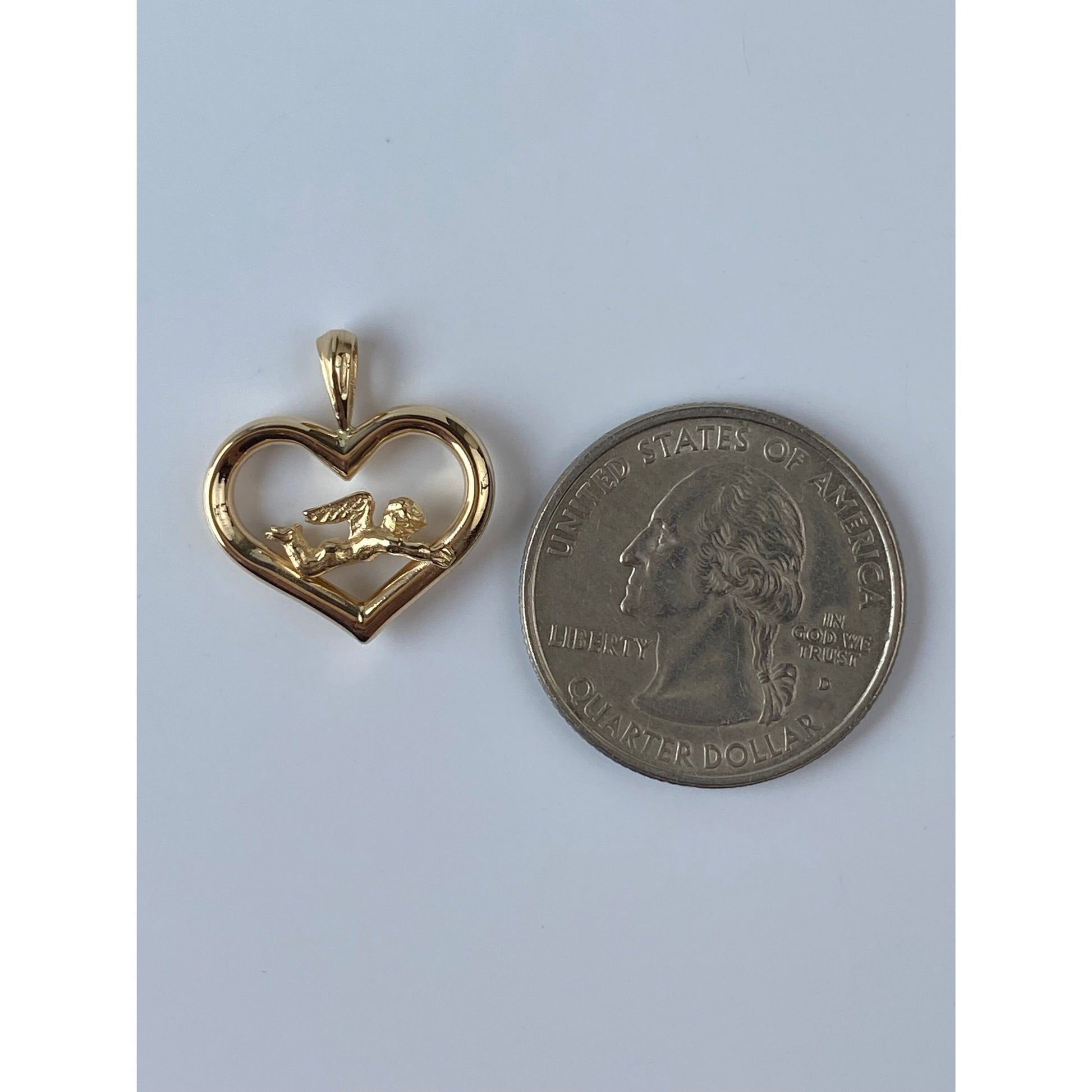 Vintage Solid 14k Yellow Gold Angel Heart Charm