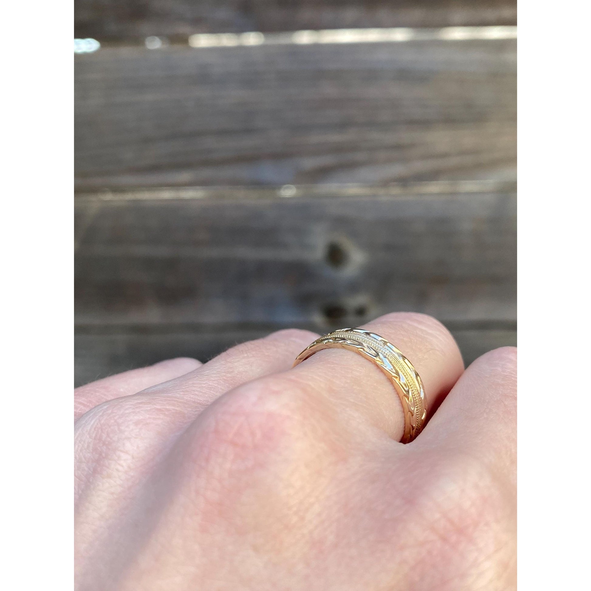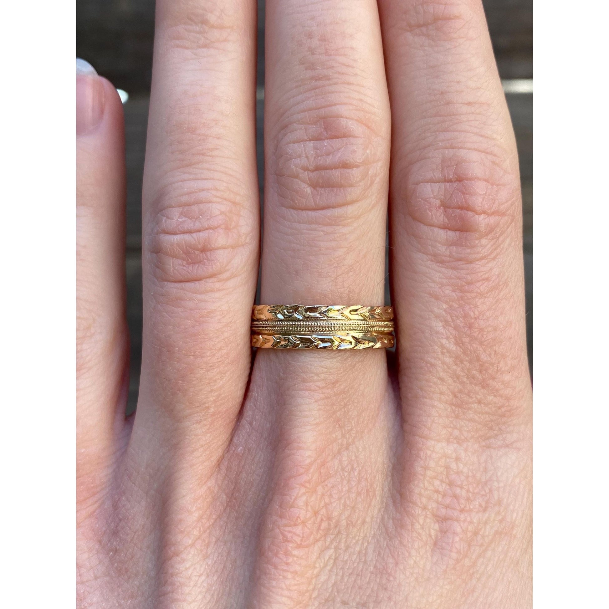Vintage Solid 14k Yellow Gold Arrow Pattern Ring Band - Size 7.25
