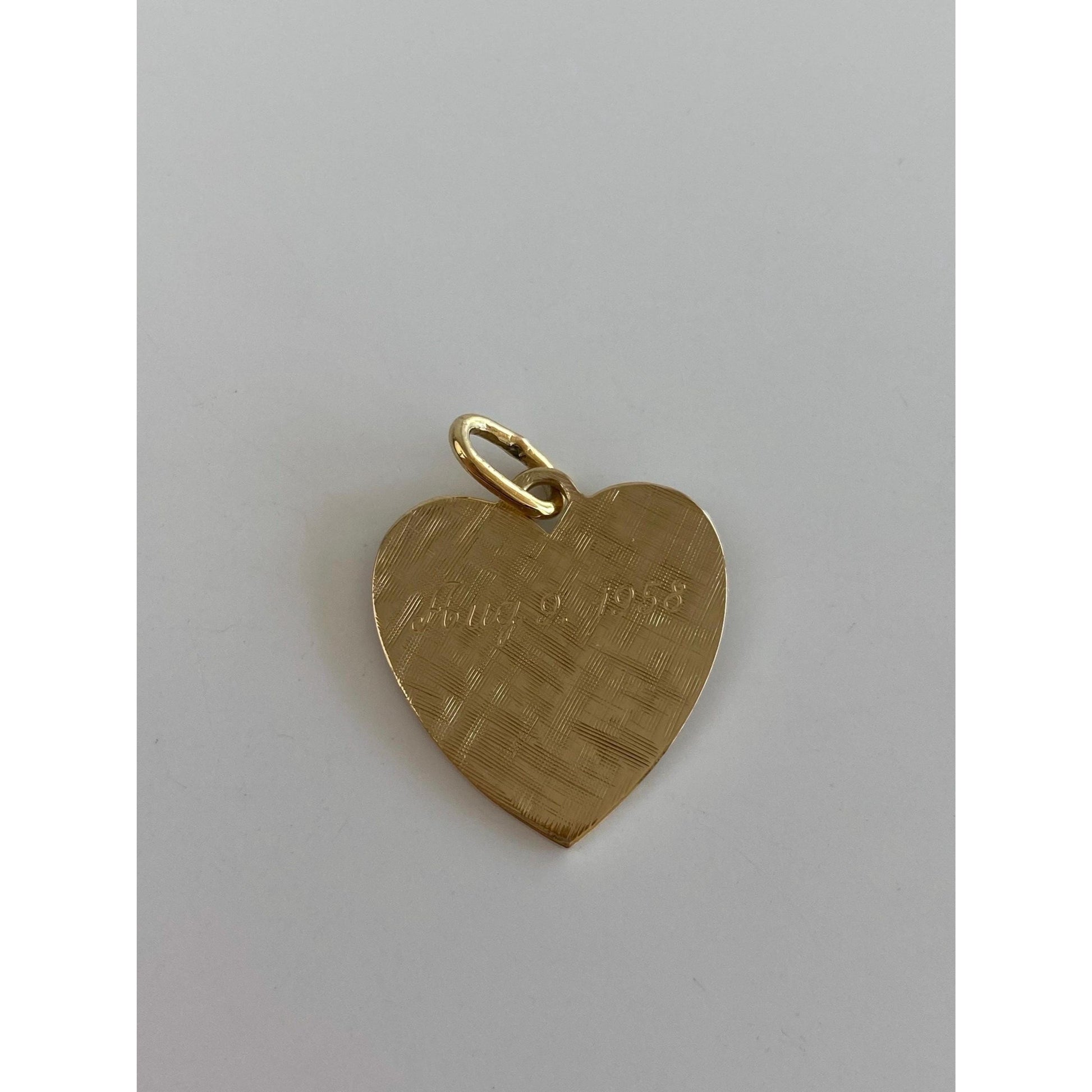 Vintage Solid 14k Yellow Gold 'August 9, 1958' Crosshatch Texture Heart Charm