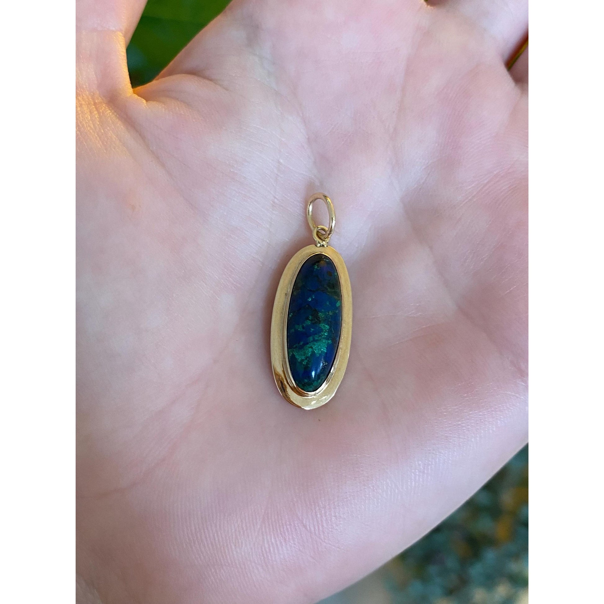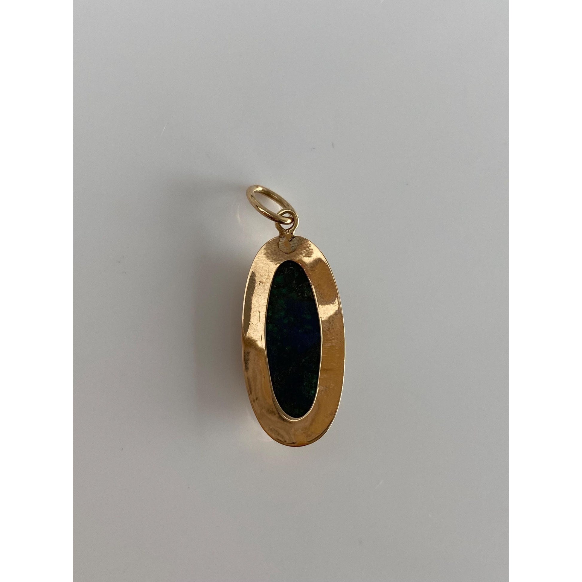 Vintage Solid 14k Yellow Gold Azurite Malachite Cabochon Stick Pin Conversion Charm