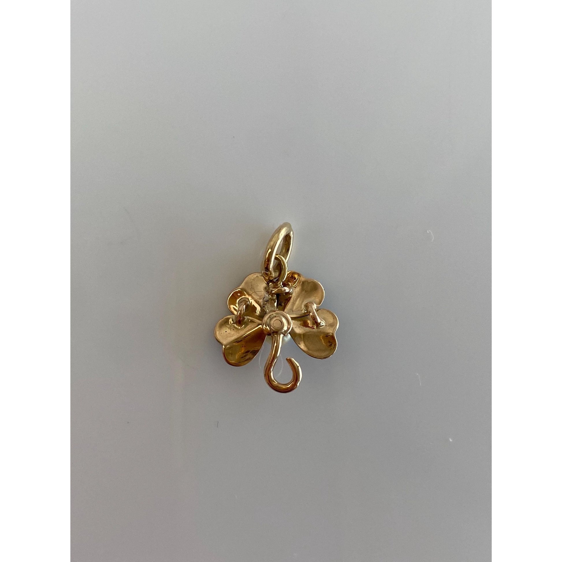Vintage Solid 14k Yellow Gold Black Enamel Pearl Clover Stick Pin Conversion Charm