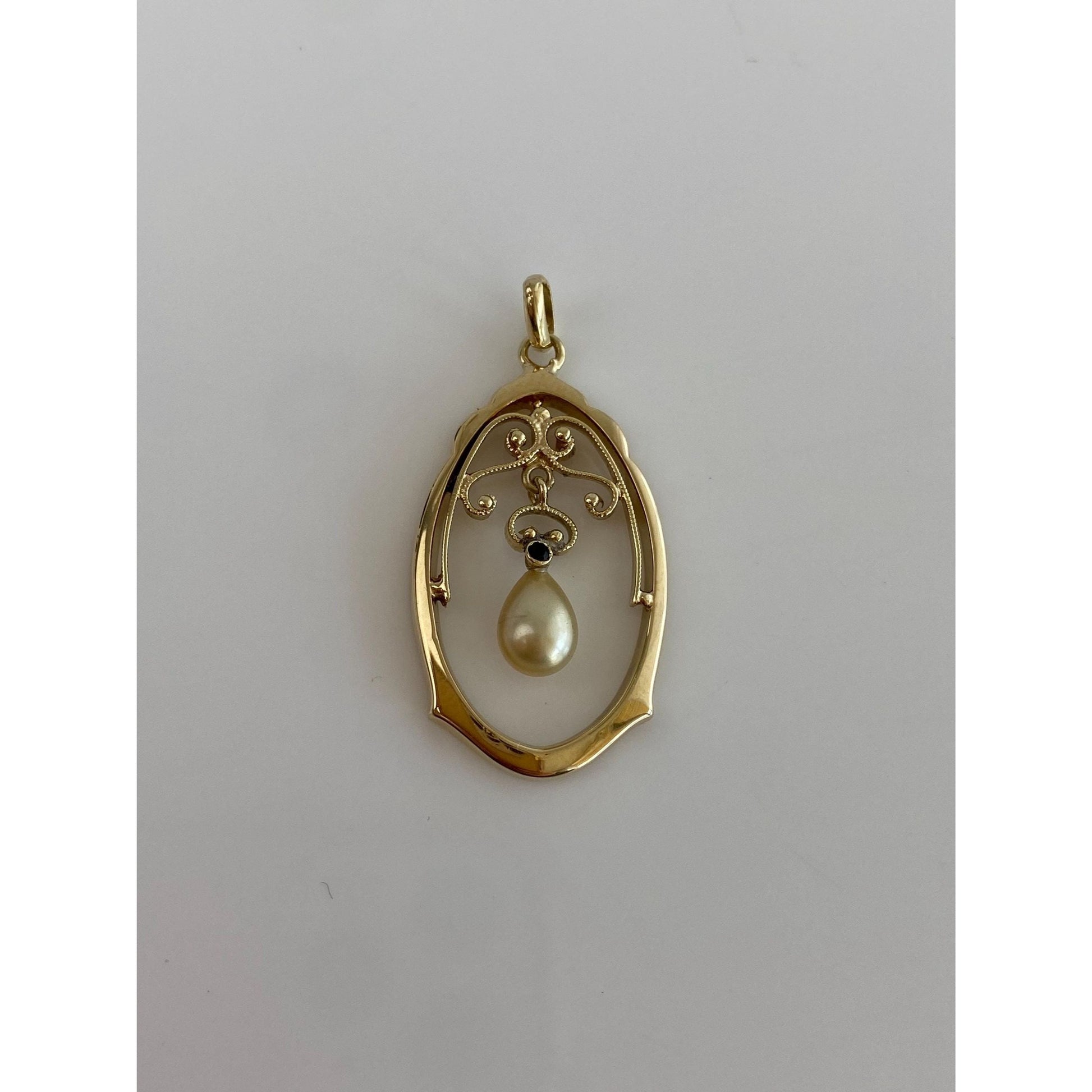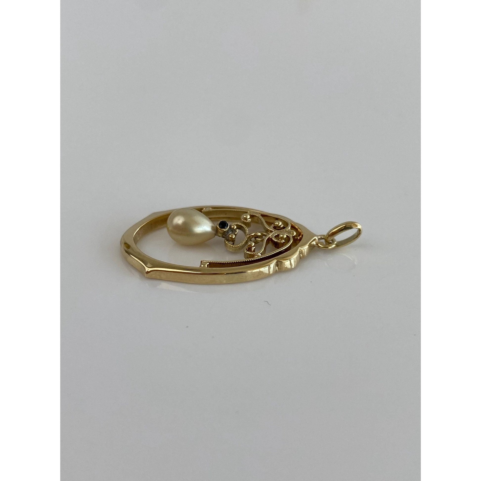 Vintage Solid 14k Yellow Gold Blue Cubic Zirconia Pearl Dangle Charm