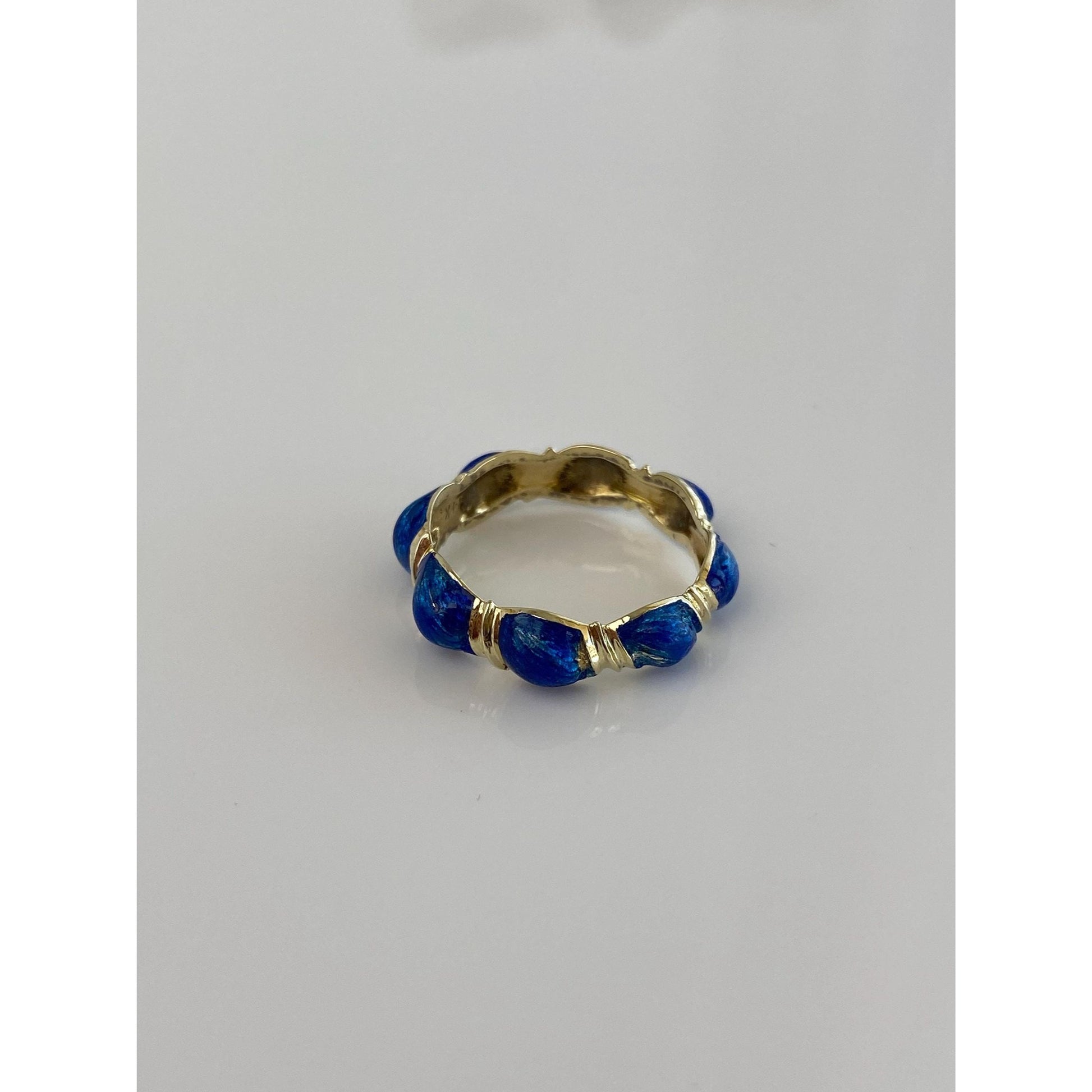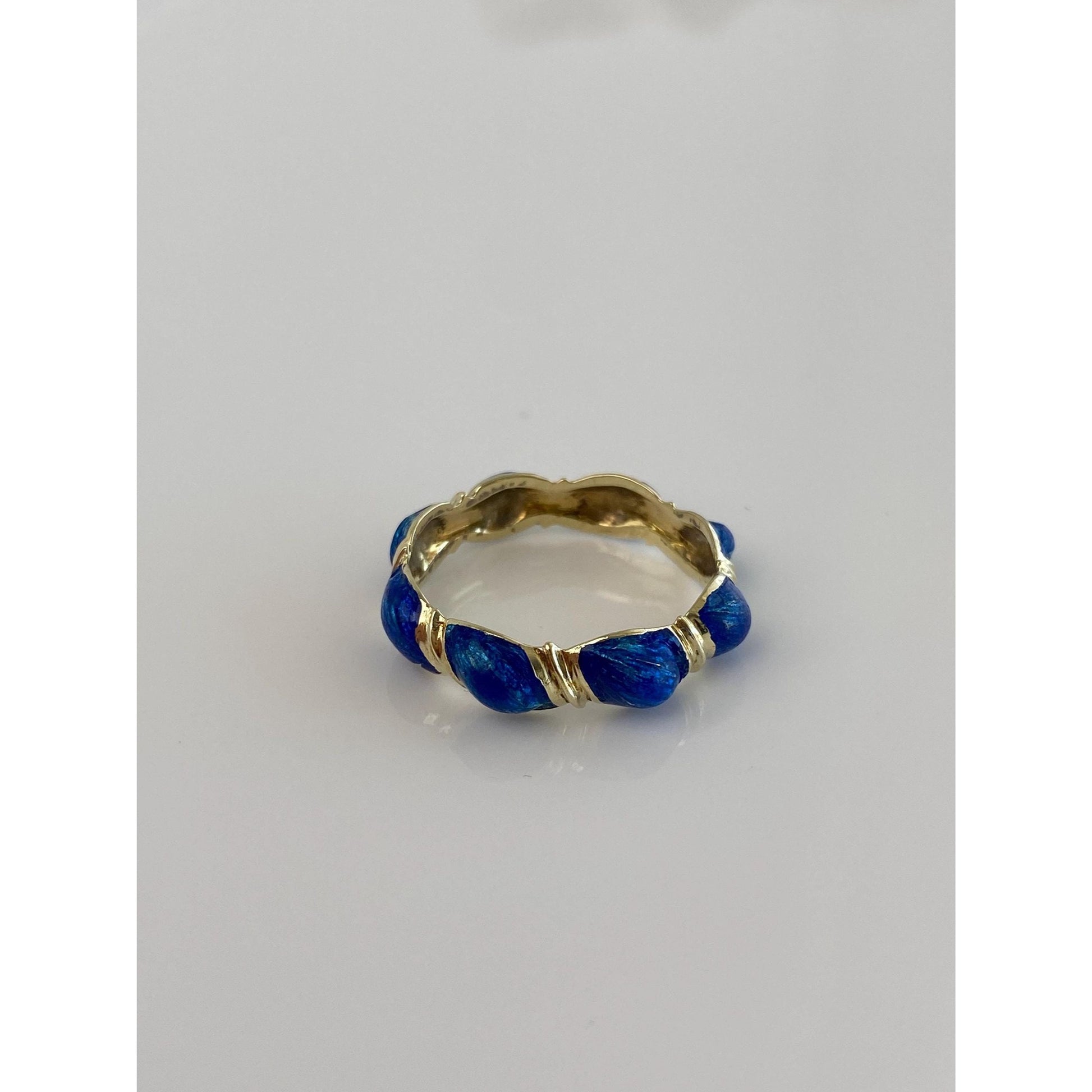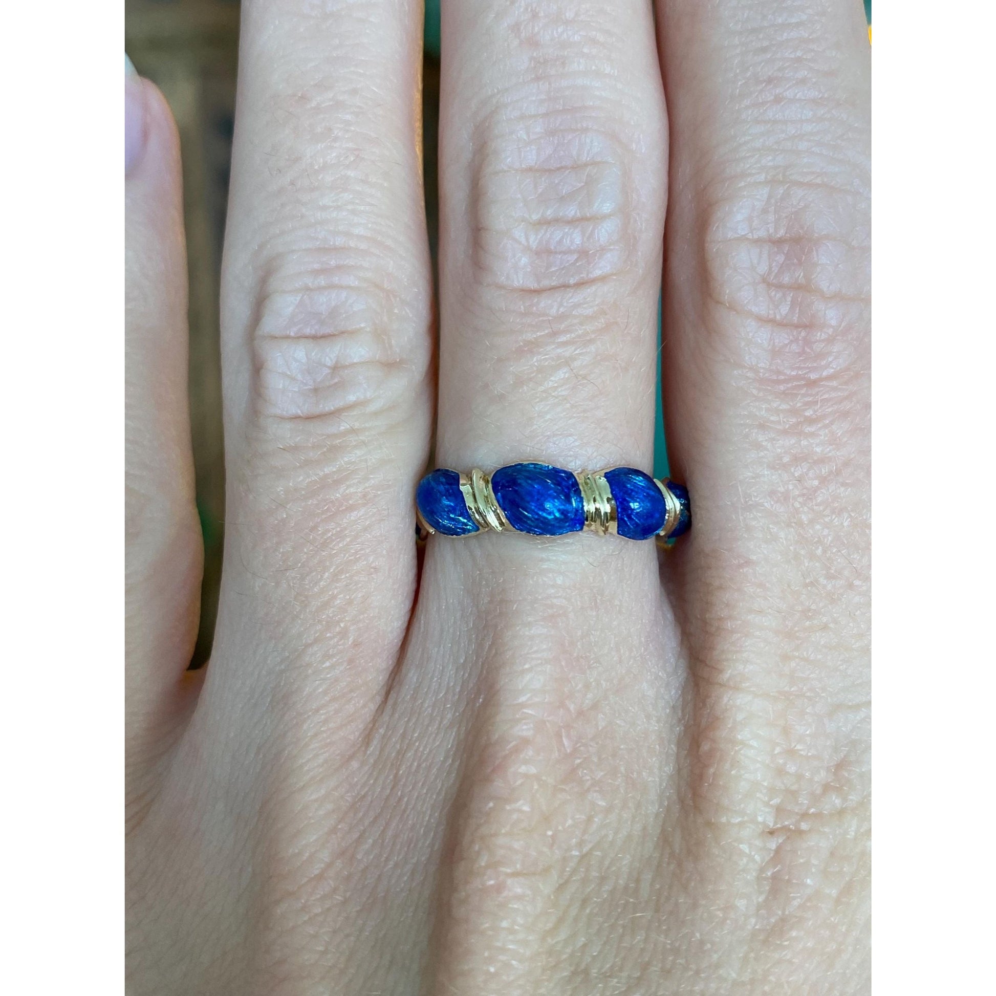 Vintage Solid 14k Yellow Gold Blue Enamel Ring Band - Size 7.25