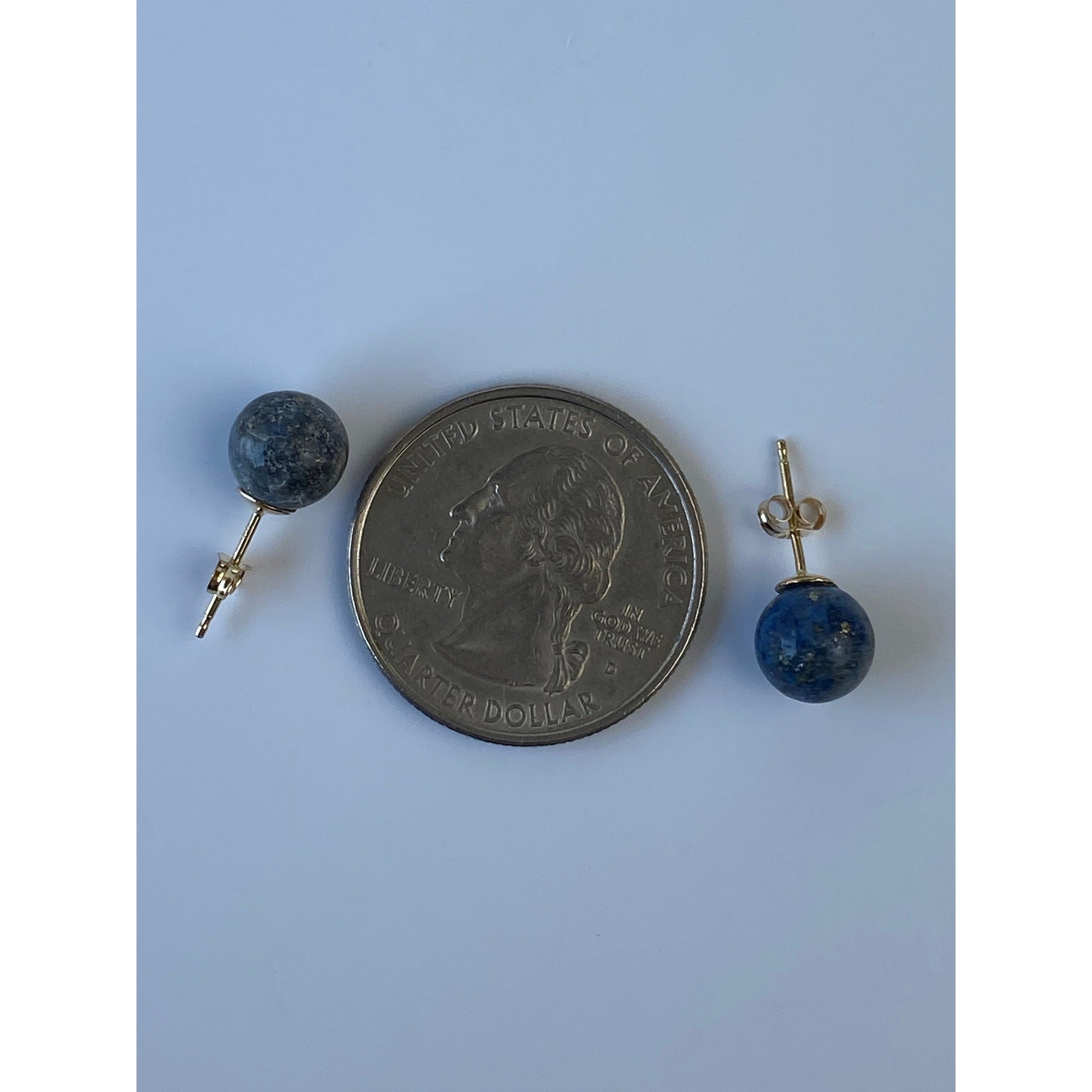 Vintage Solid 14k Yellow Gold Blue Lapis Lazuli Ball Stud Earrings