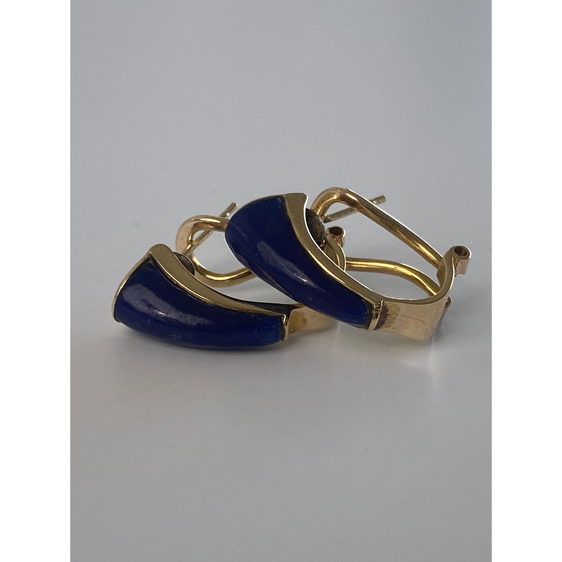 Vintage Solid 14k Yellow Gold Blue Lapis Lazuli Drop Earrings