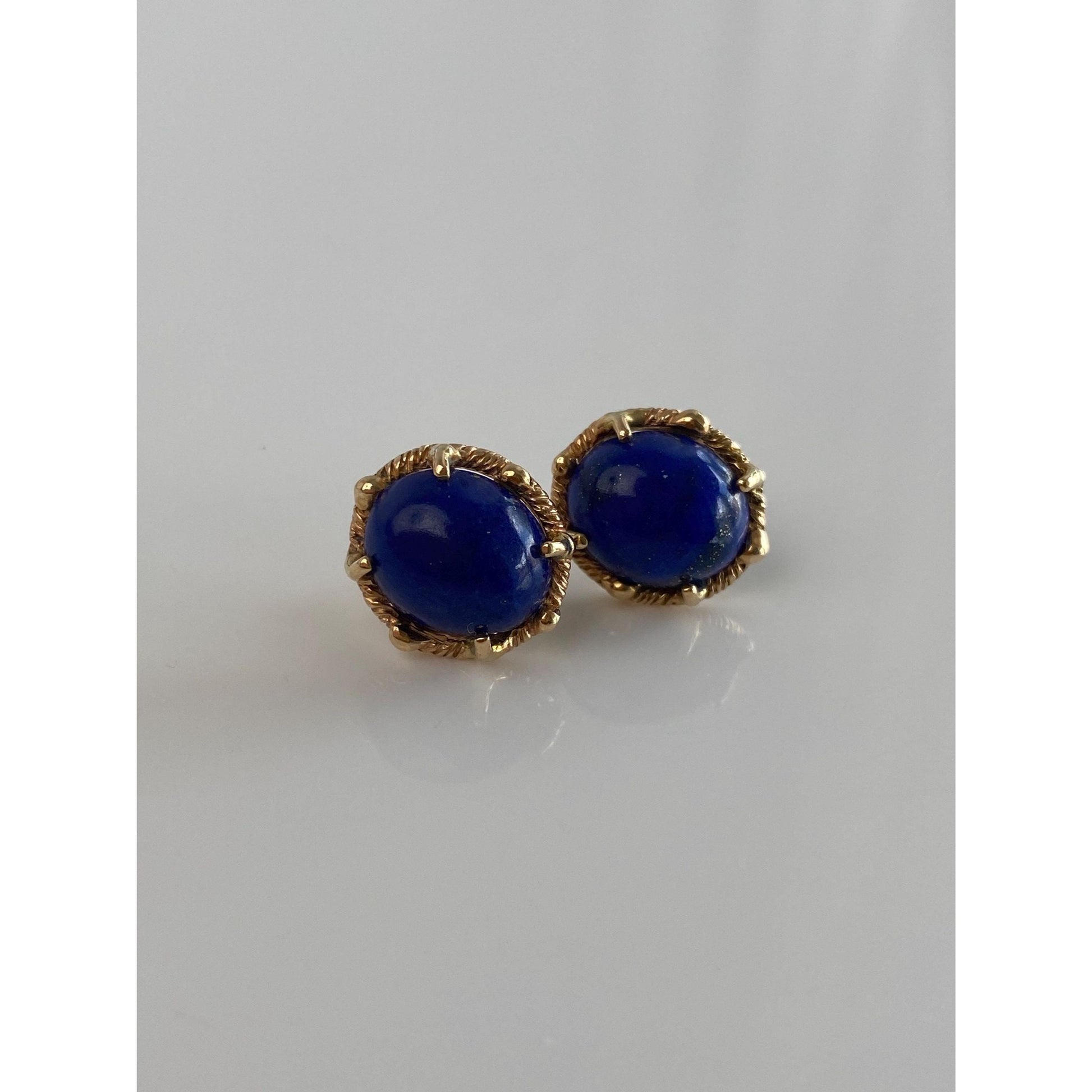 Vintage Solid 14k Yellow Gold Blue Lapis Lazuli Stud Earrings