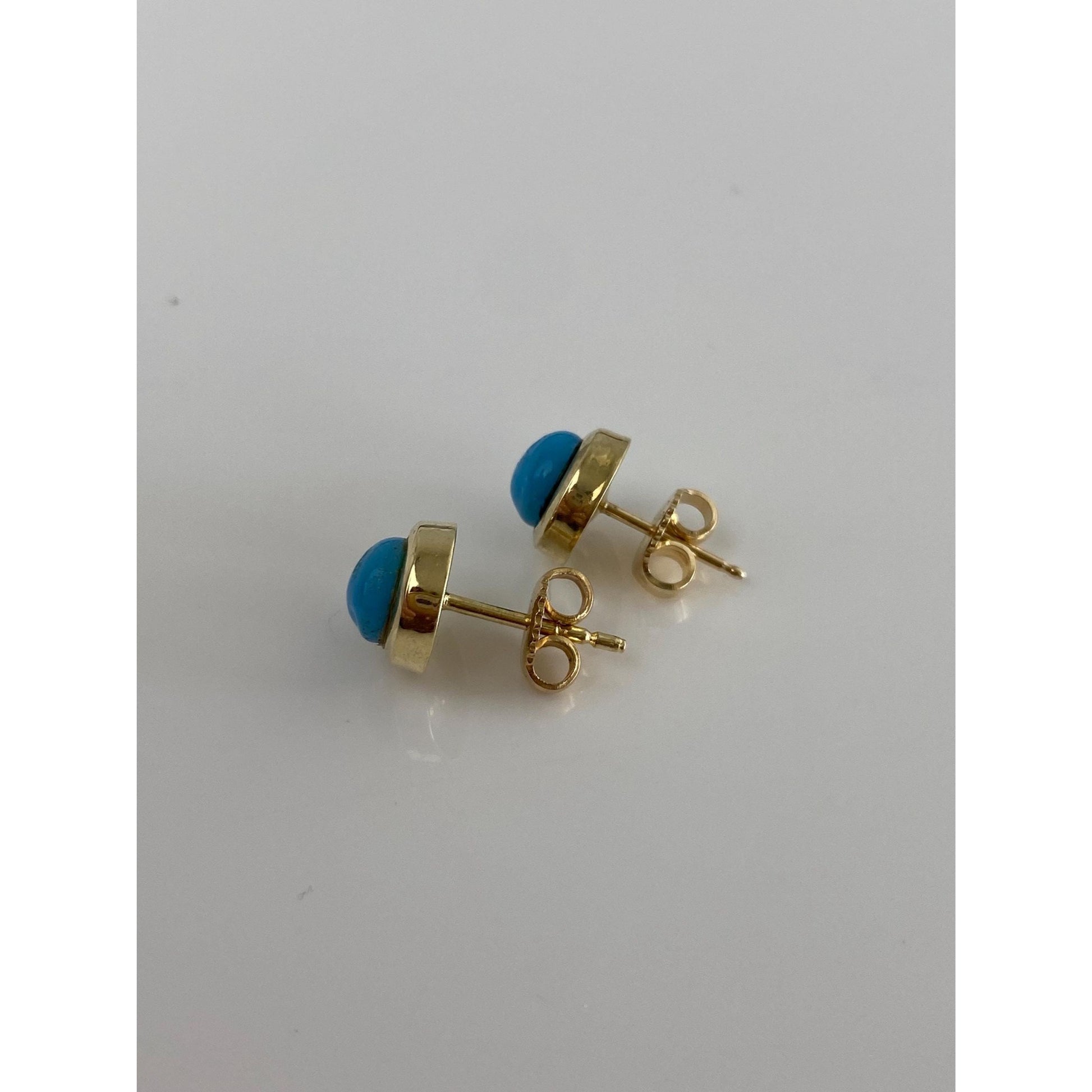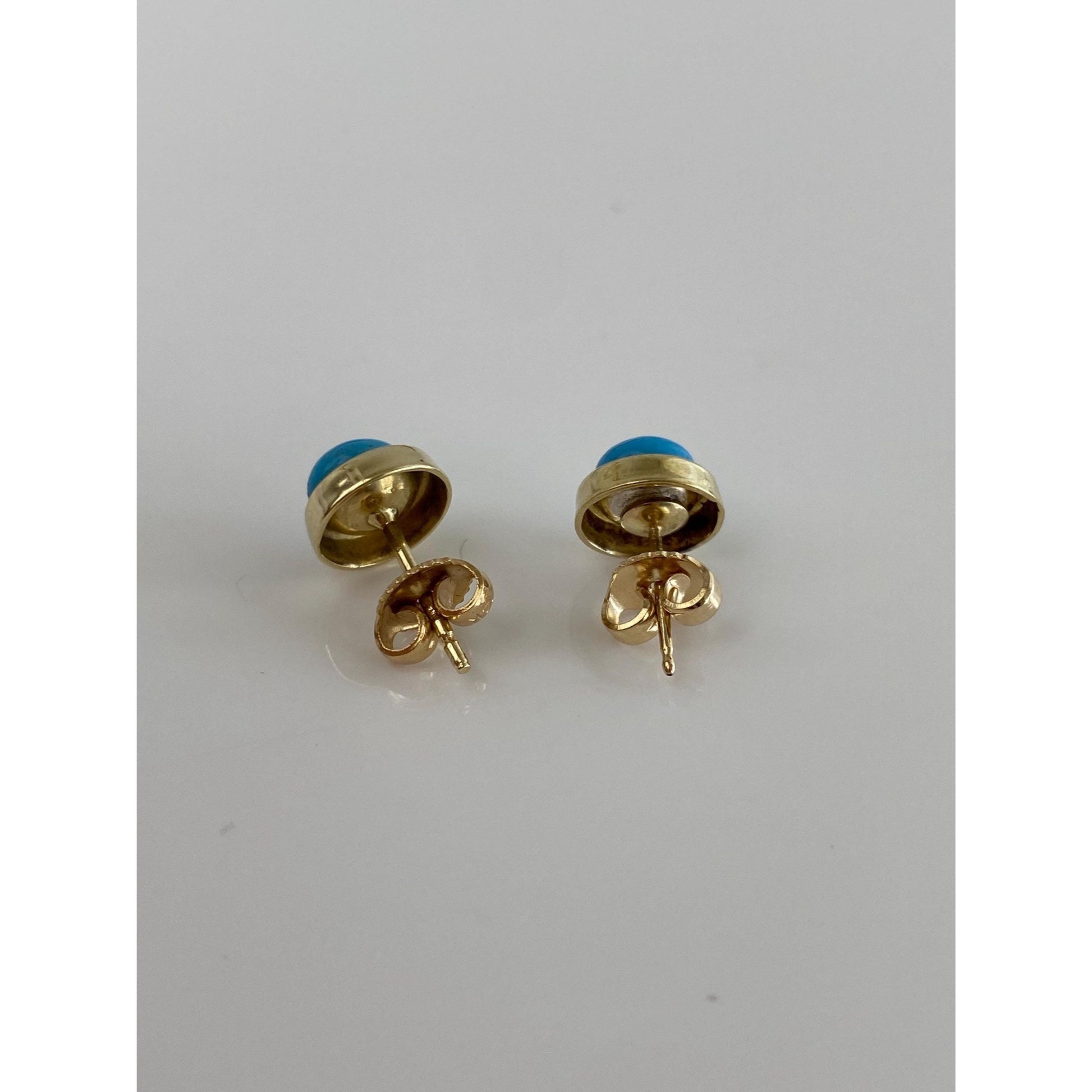 Vintage Solid 14k Yellow Gold Blue Resin Stud Earrings