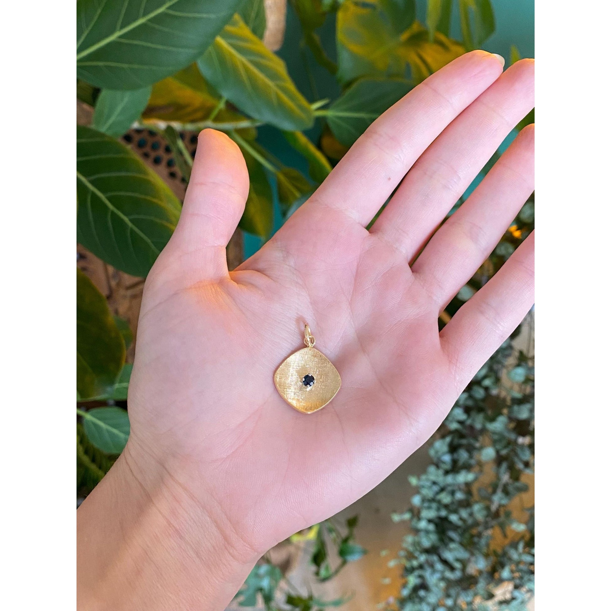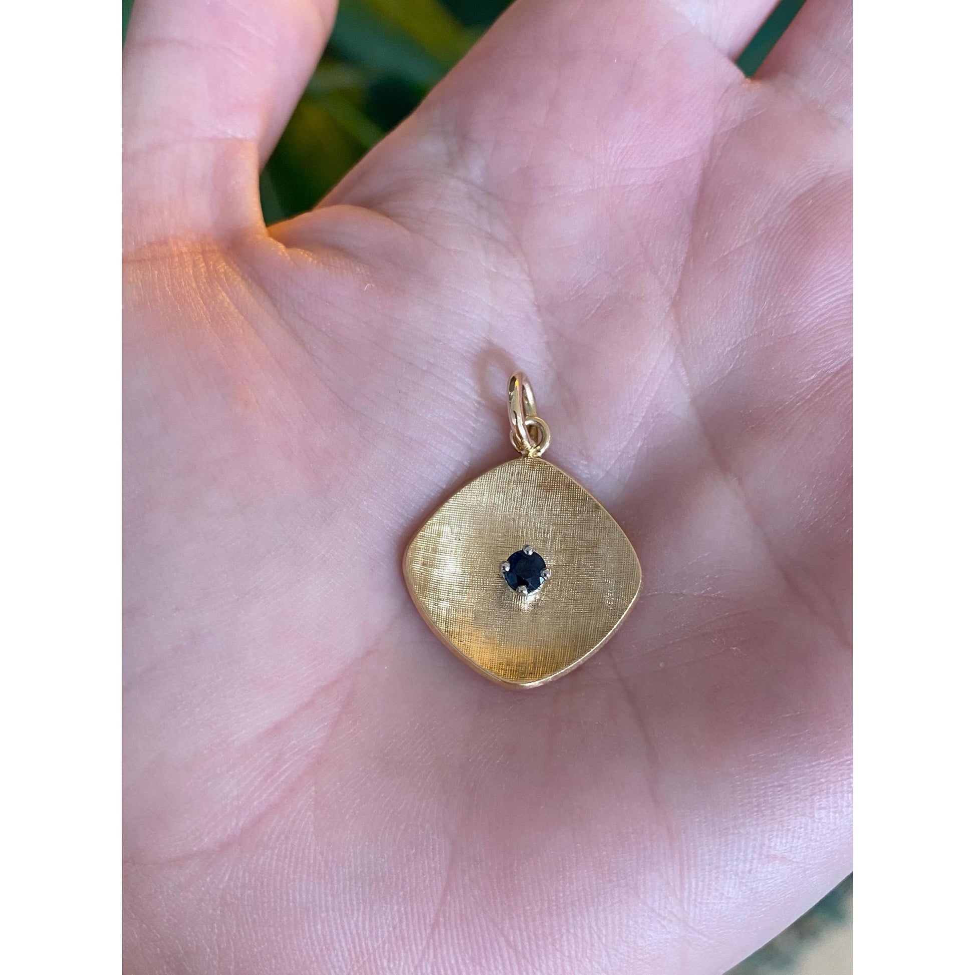 Vintage Solid 14k Yellow Gold Blue Sapphire Crosshatch Cufflink Conversion Charm