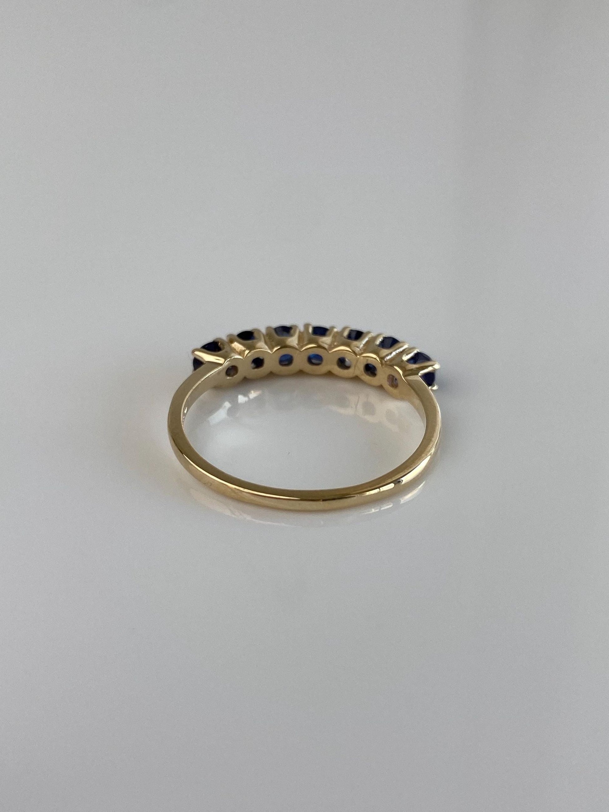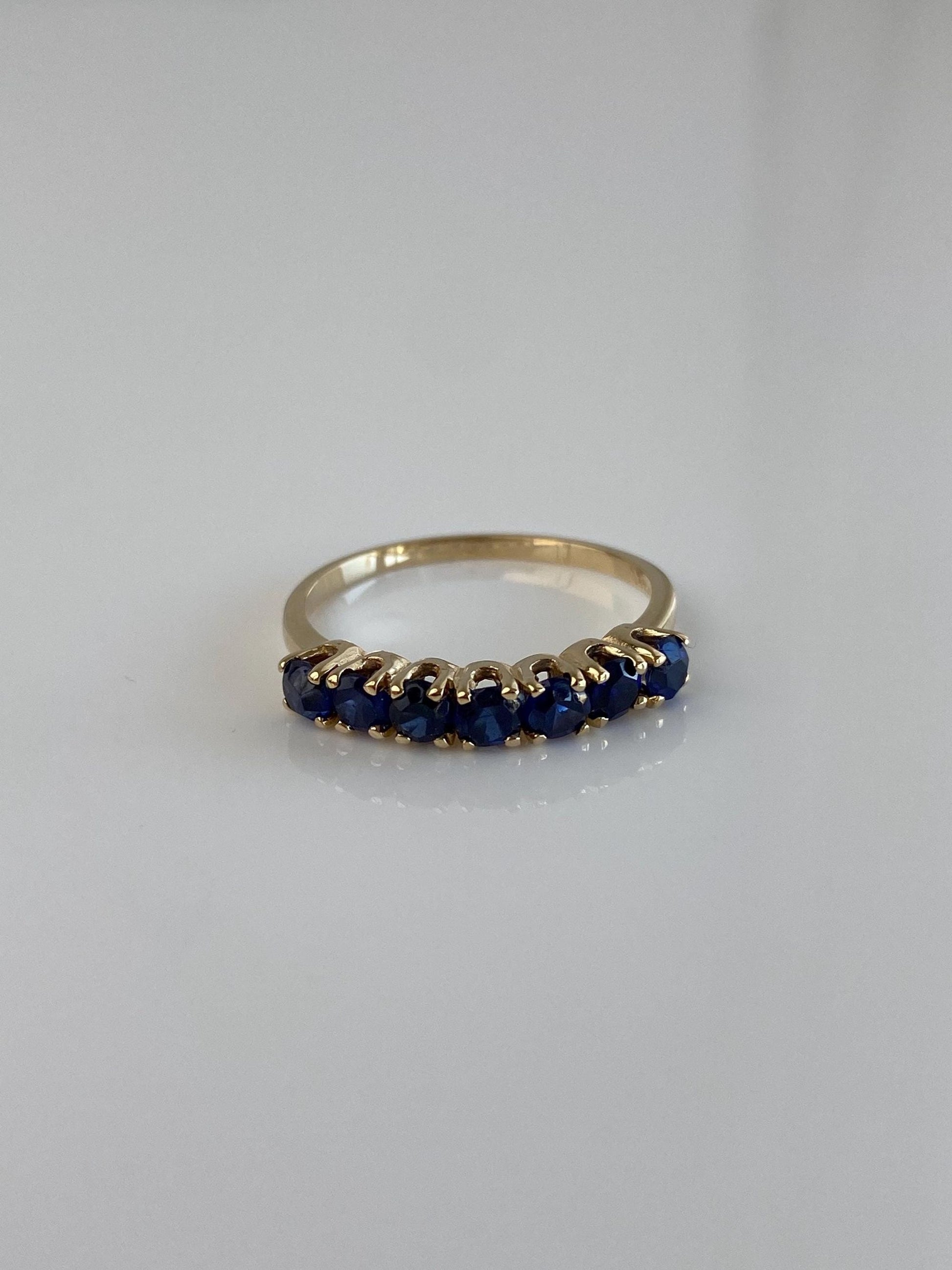 Vintage Solid 14k Yellow Gold Blue Sapphire Ring Band - Size 7.75