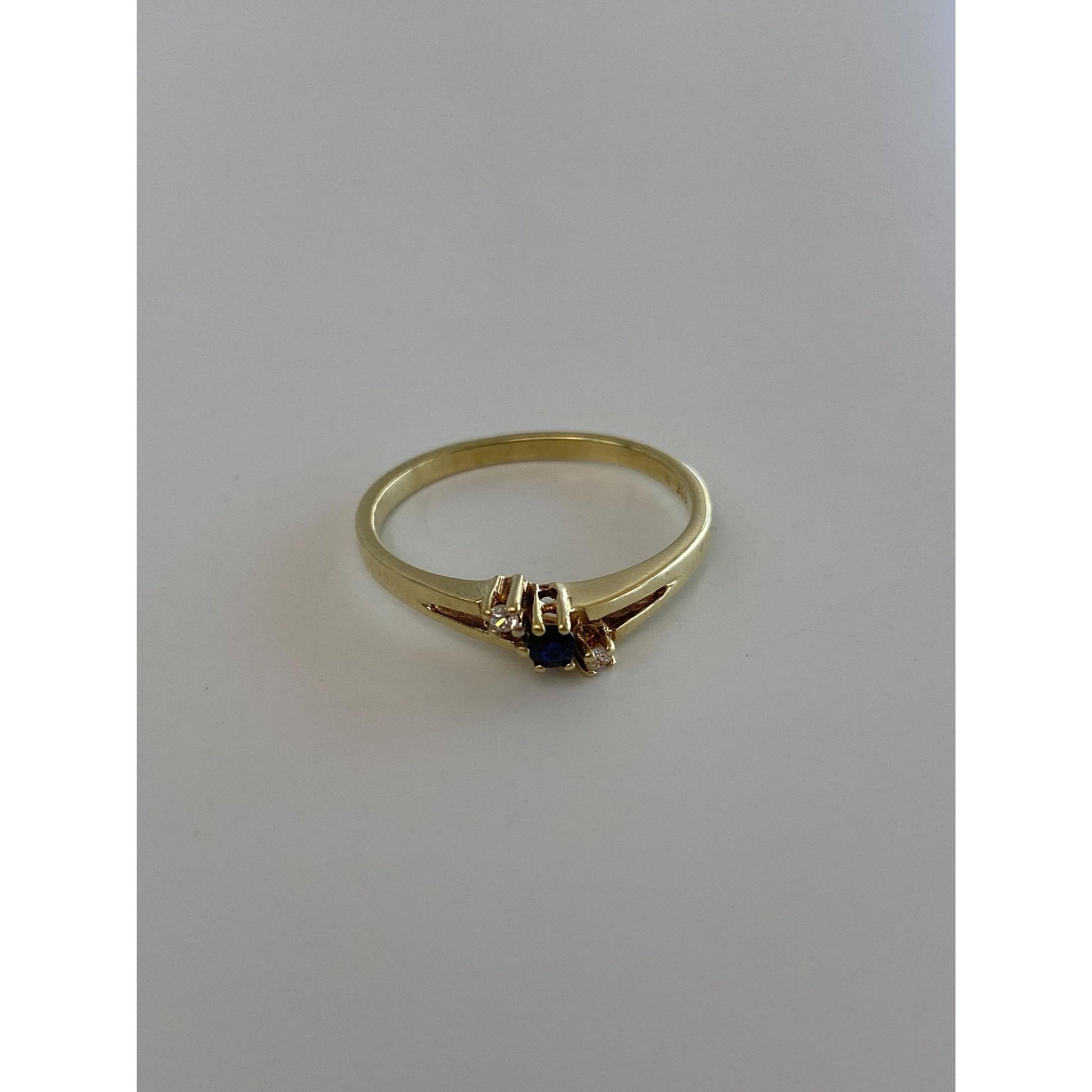 Vintage Solid 14k Yellow Gold Blue Spinel Cubic Zirconia Ring - Size 6