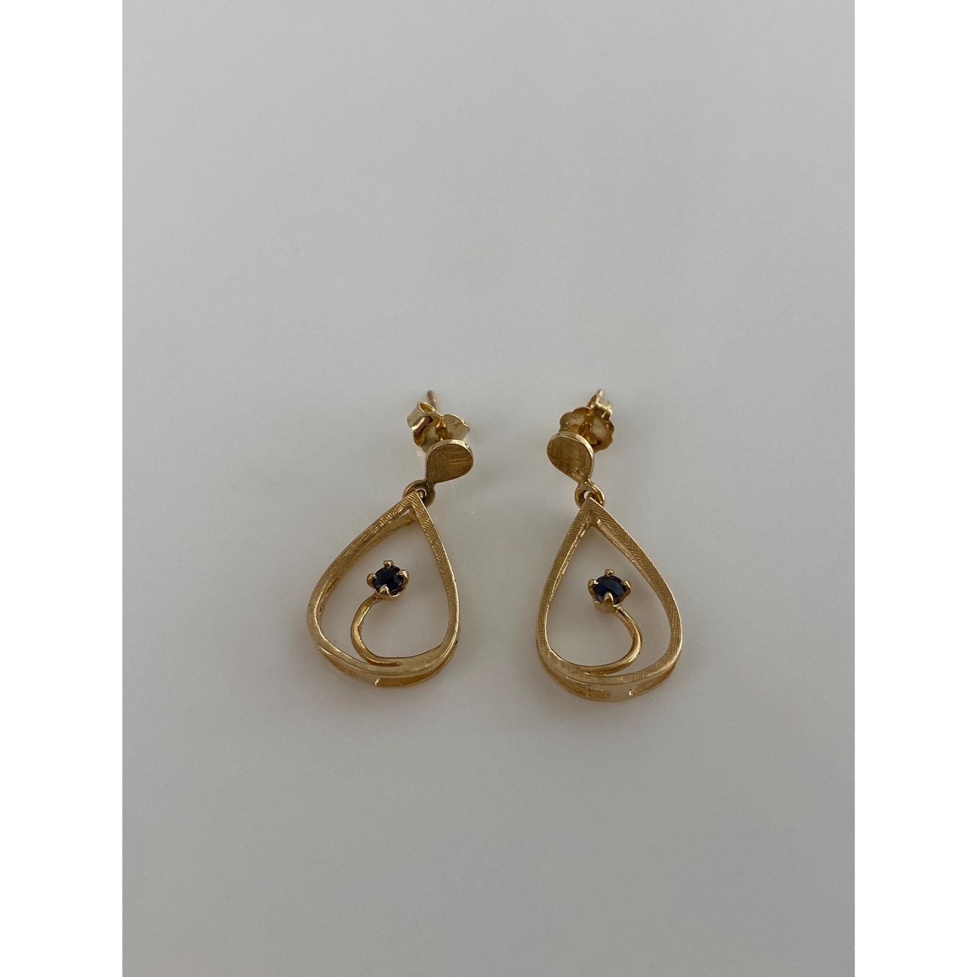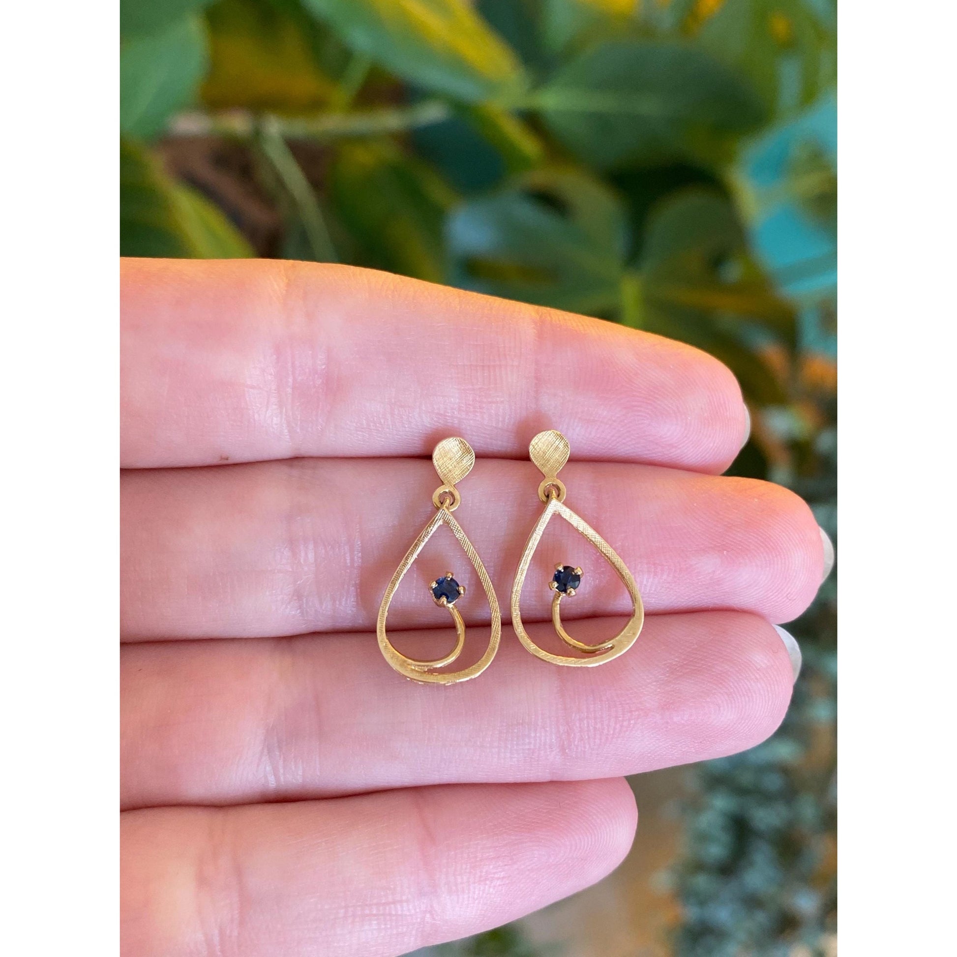 Vintage Solid 14k Yellow Gold Blue Spinel Dangle Stud Earrings