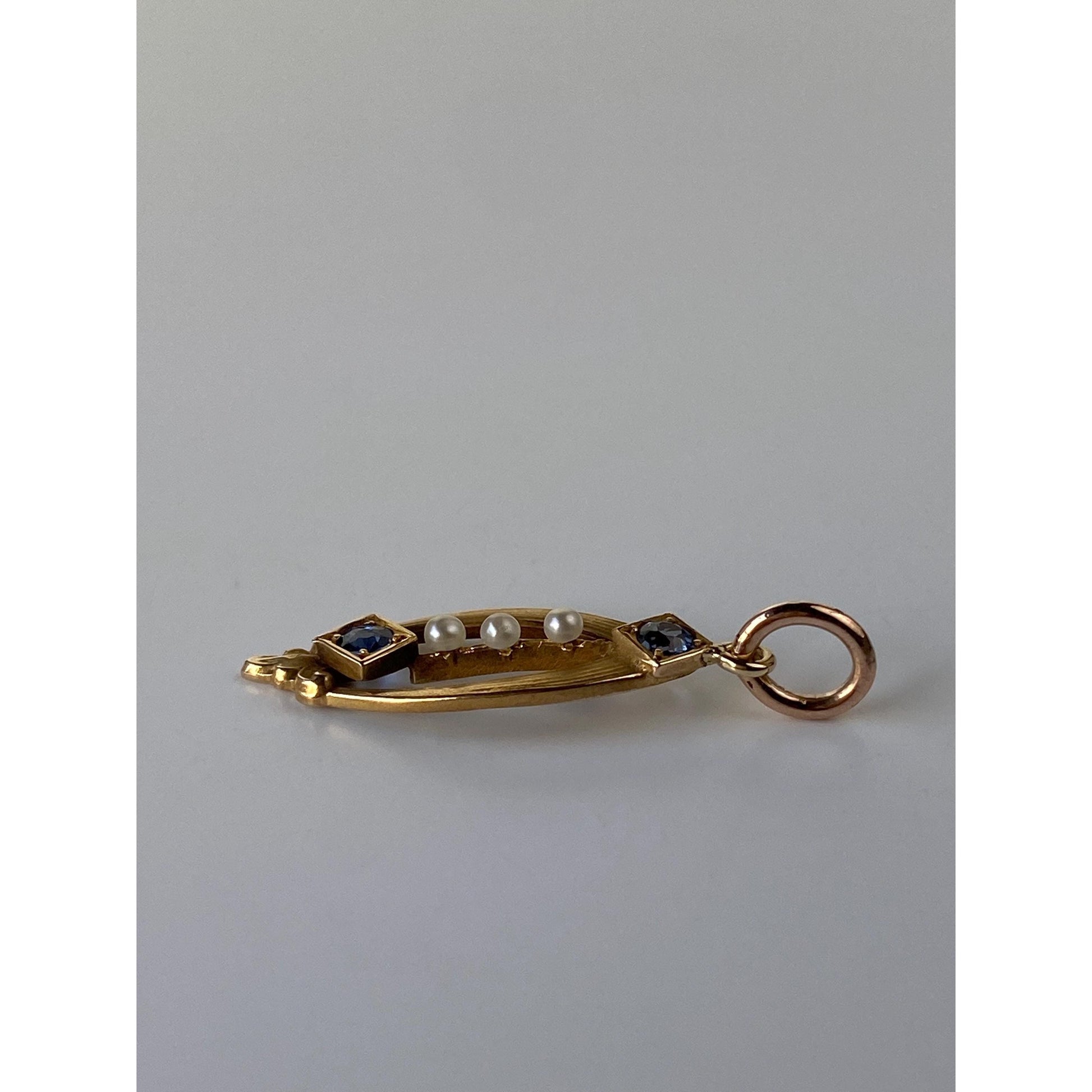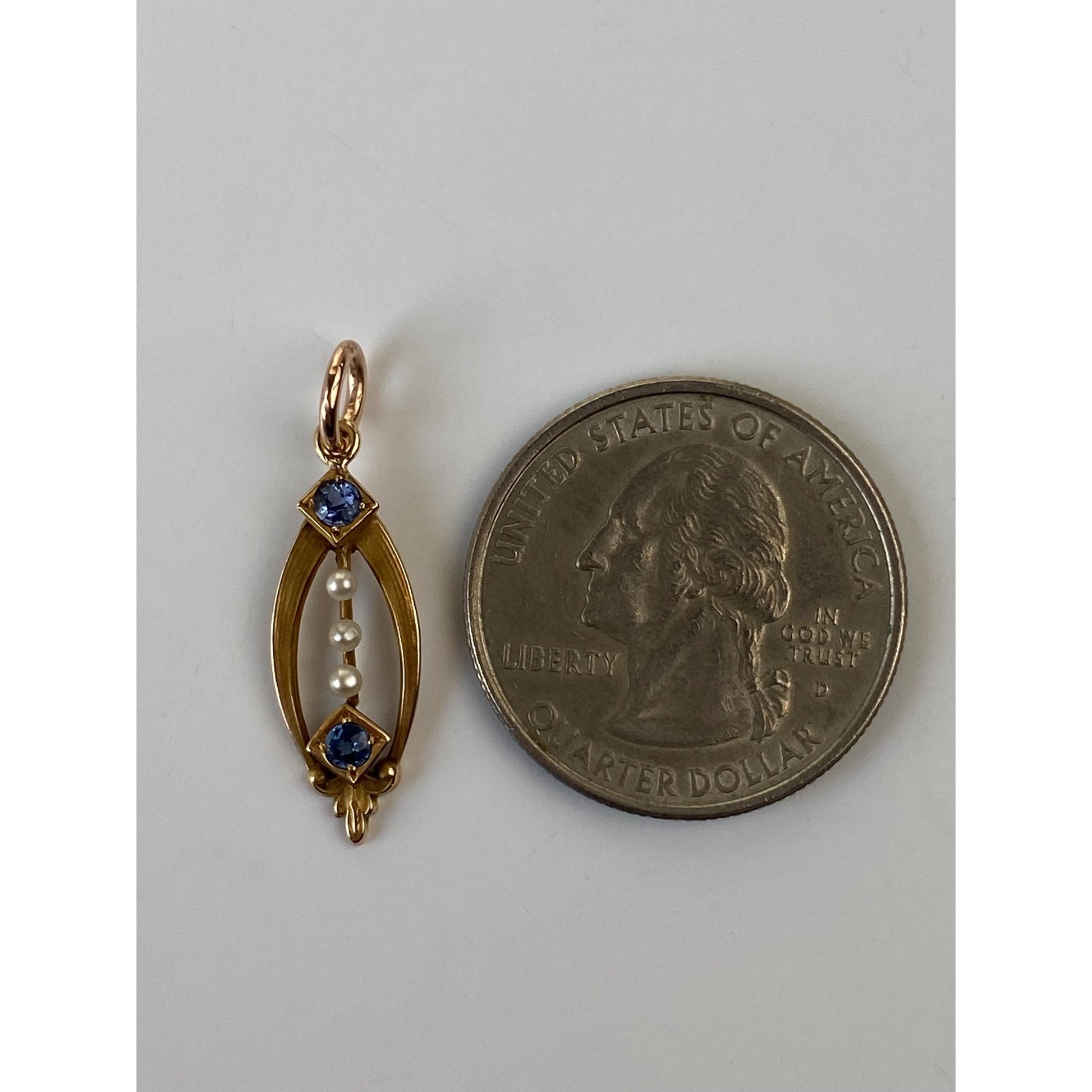 Vintage Solid 14k Yellow Gold Blue Spinel Seed Pearl Charm