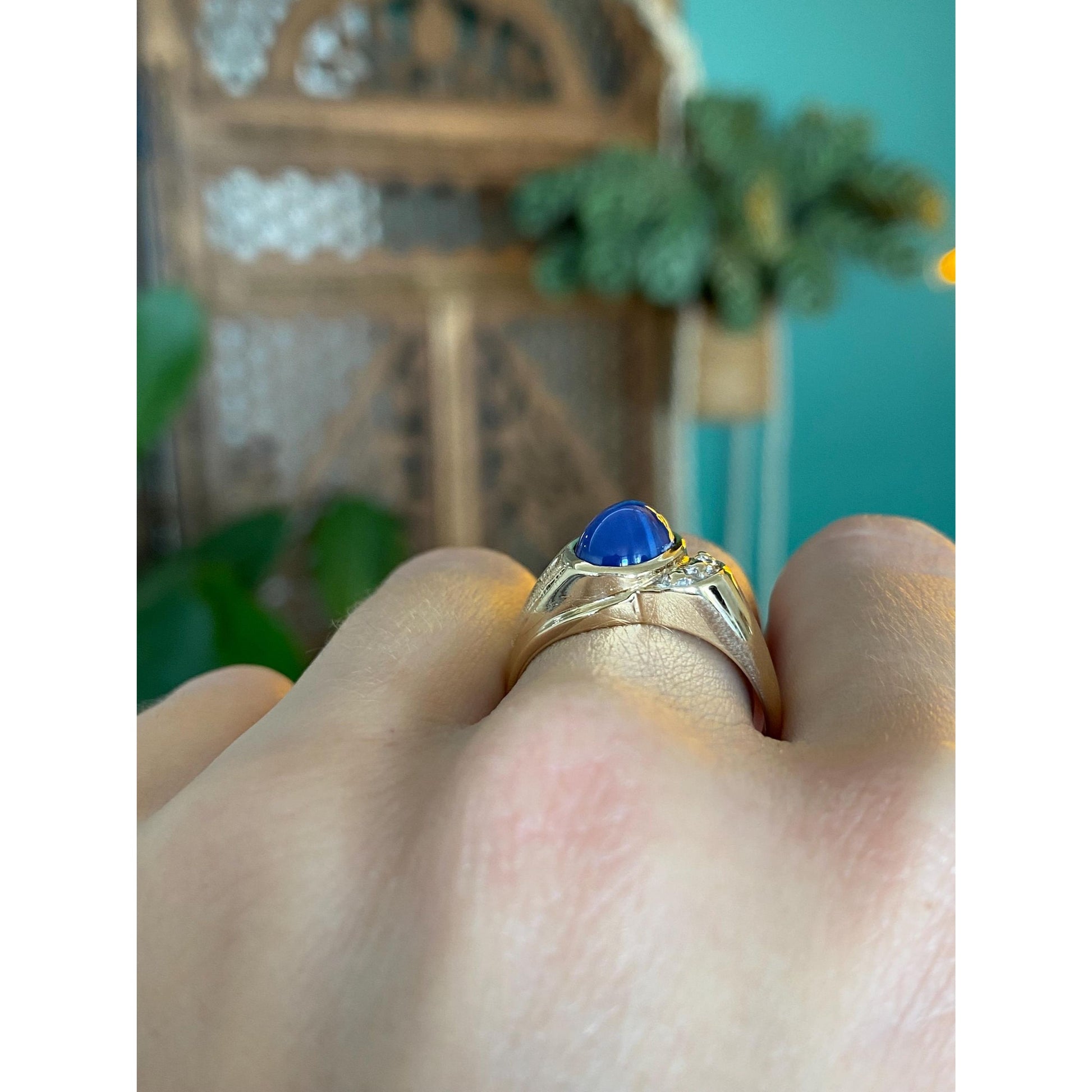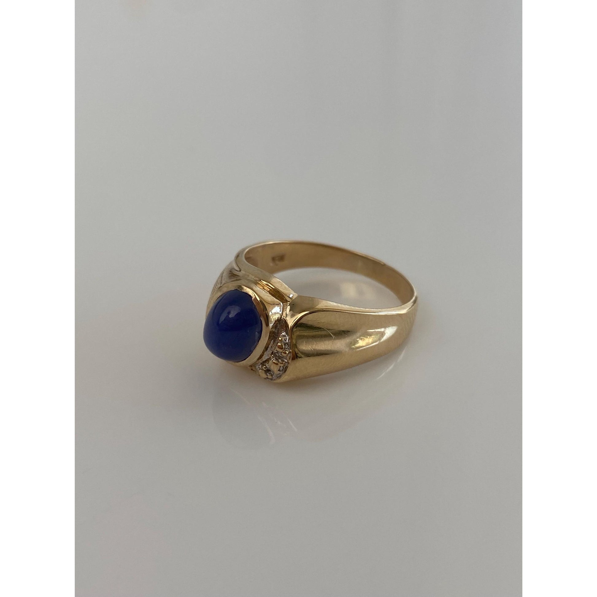 Vintage Solid 14k Yellow Gold Blue Star Sapphire Ring - Size 8.75