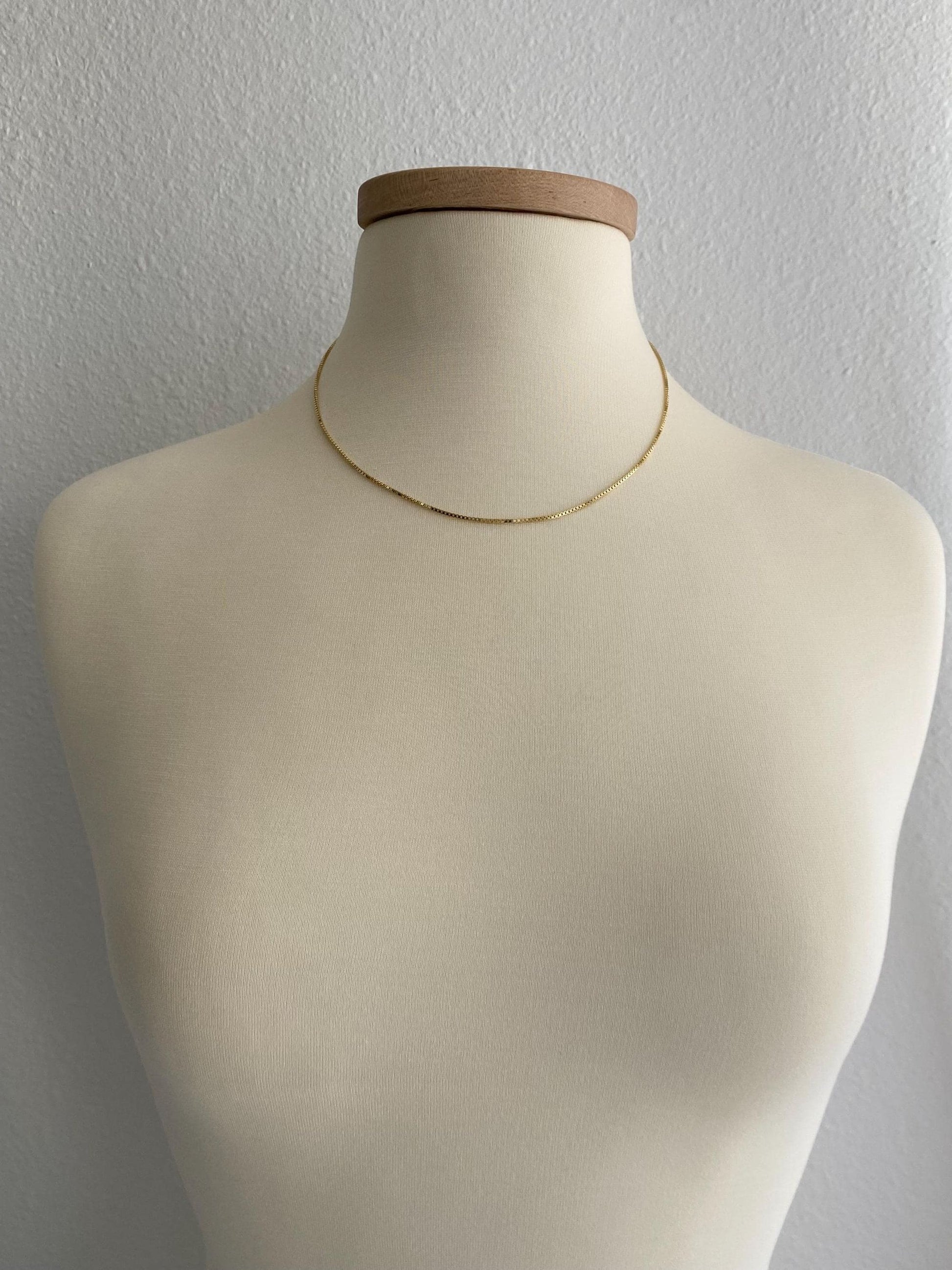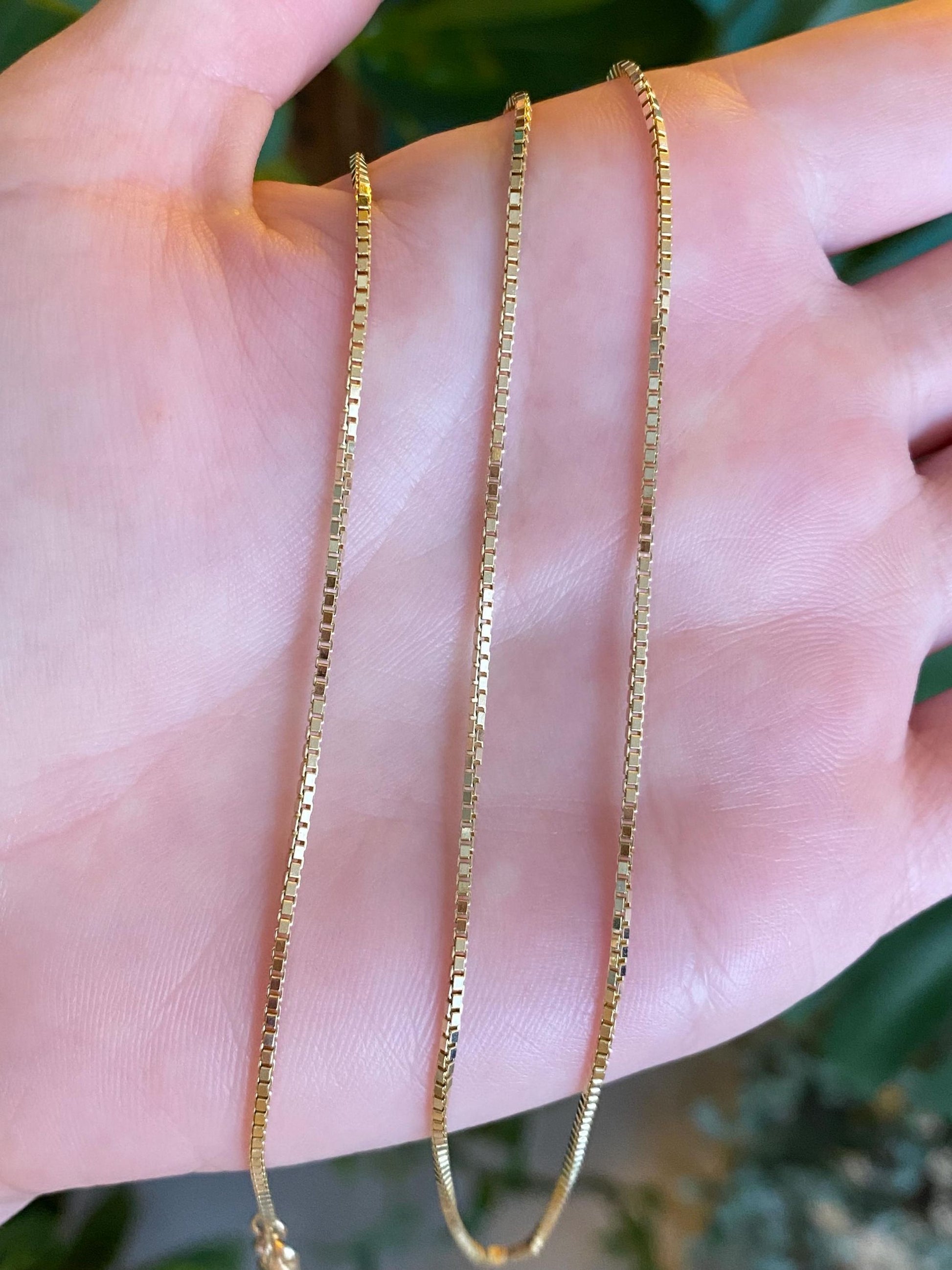 Vintage Solid 14k Yellow Gold Box Chain Necklace - 18.5 inches