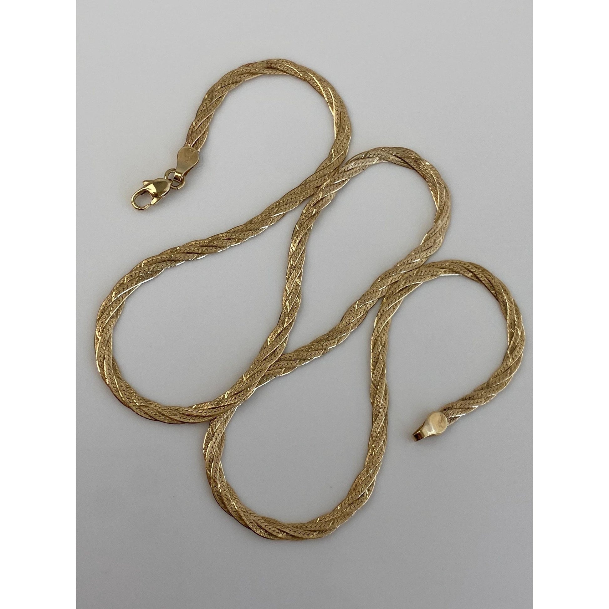 Vintage Solid 14k Yellow Gold Braided Flat Chain Necklace - 18 inches