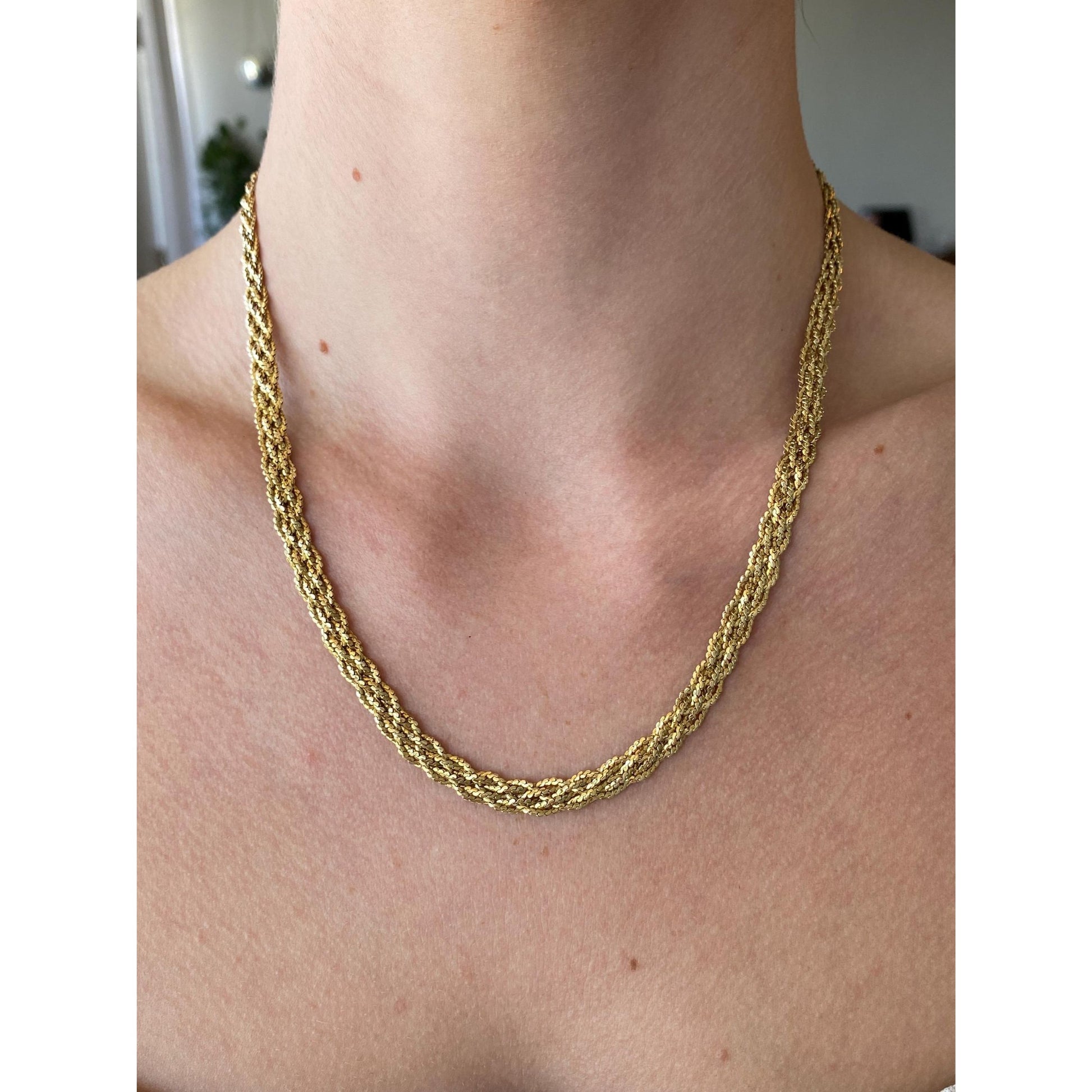 Vintage Solid 14k Yellow Gold Braided Serpentine Chain Necklace - 18.75 inches