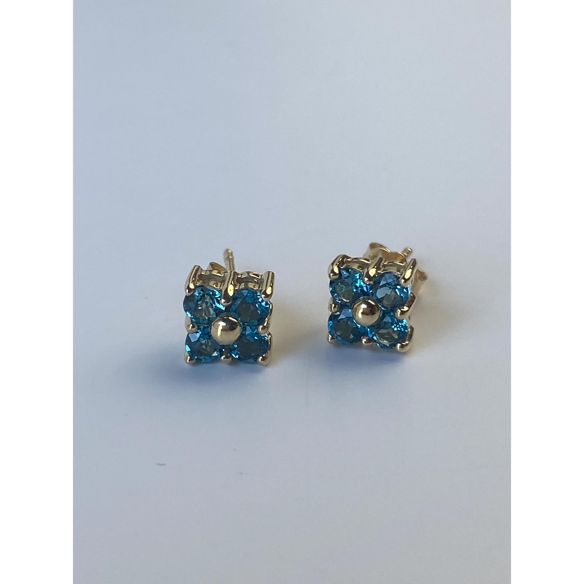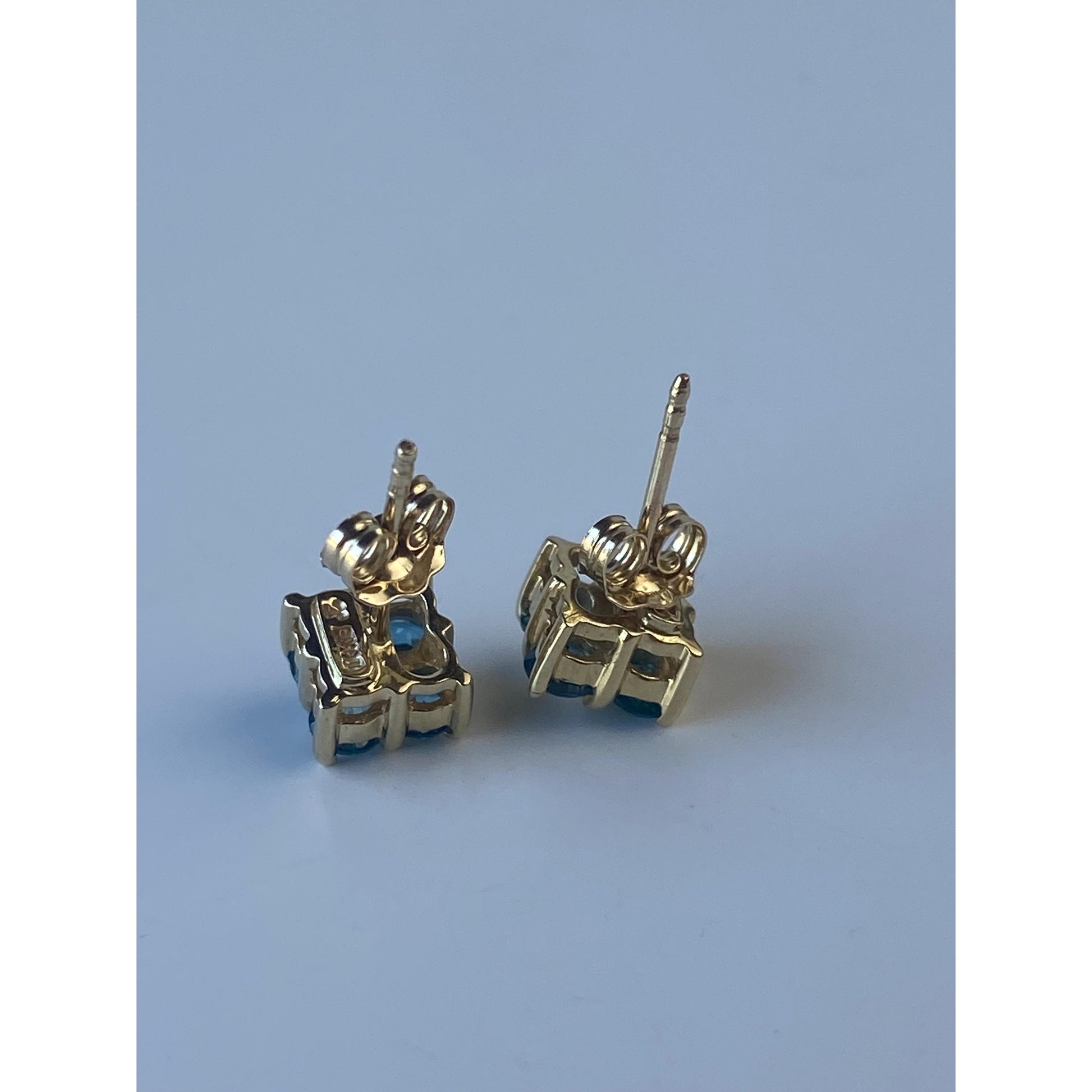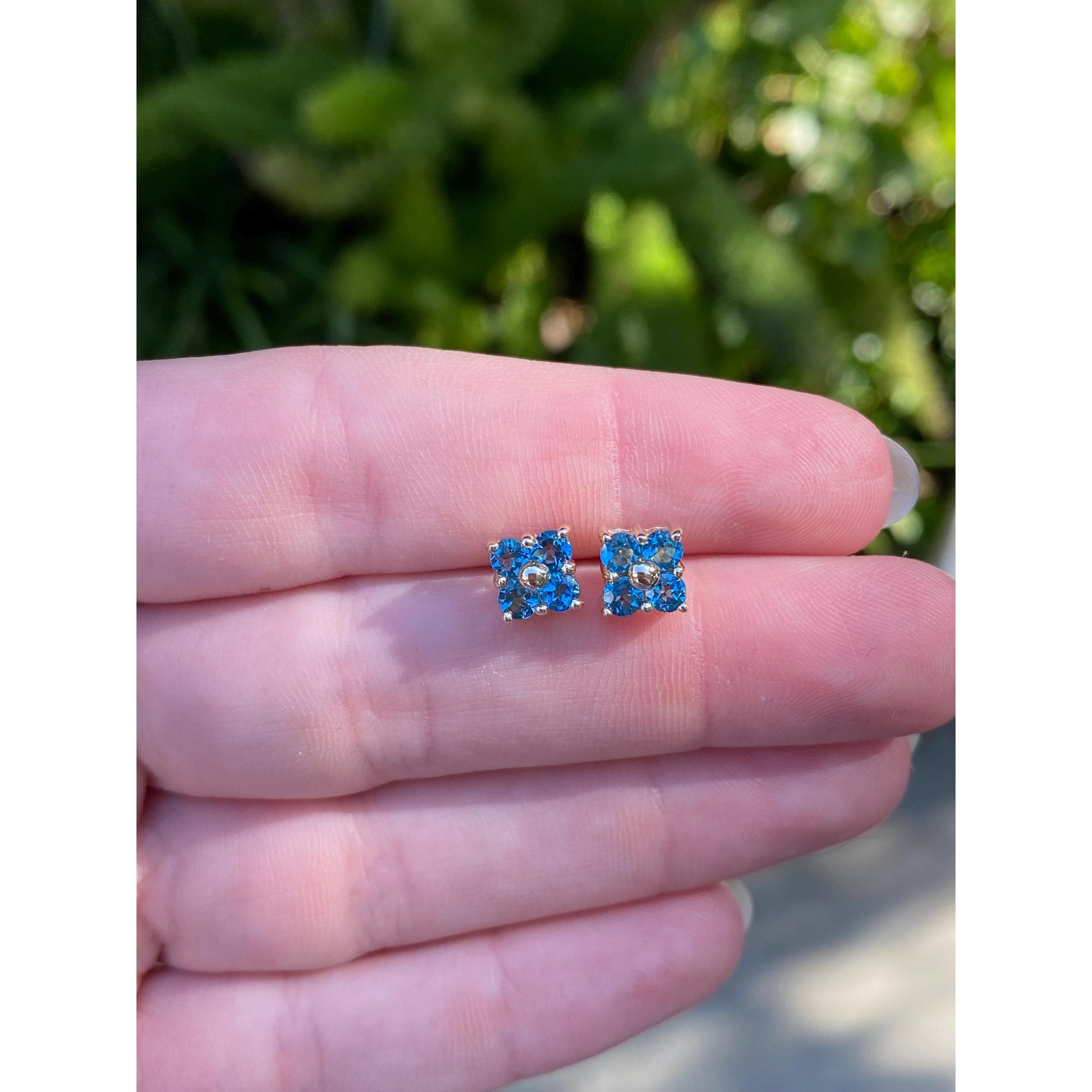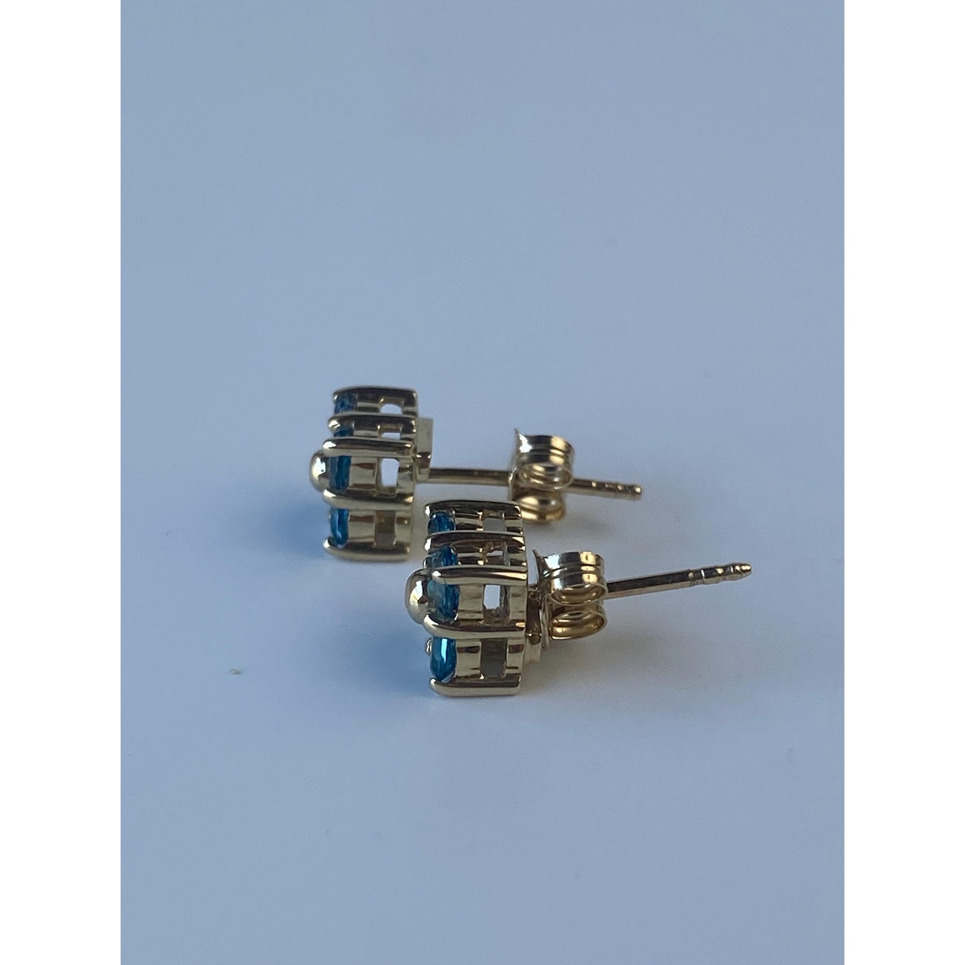 Vintage Solid 14k Yellow Gold Bright Blue Aquamarine Grid Stud Earrings