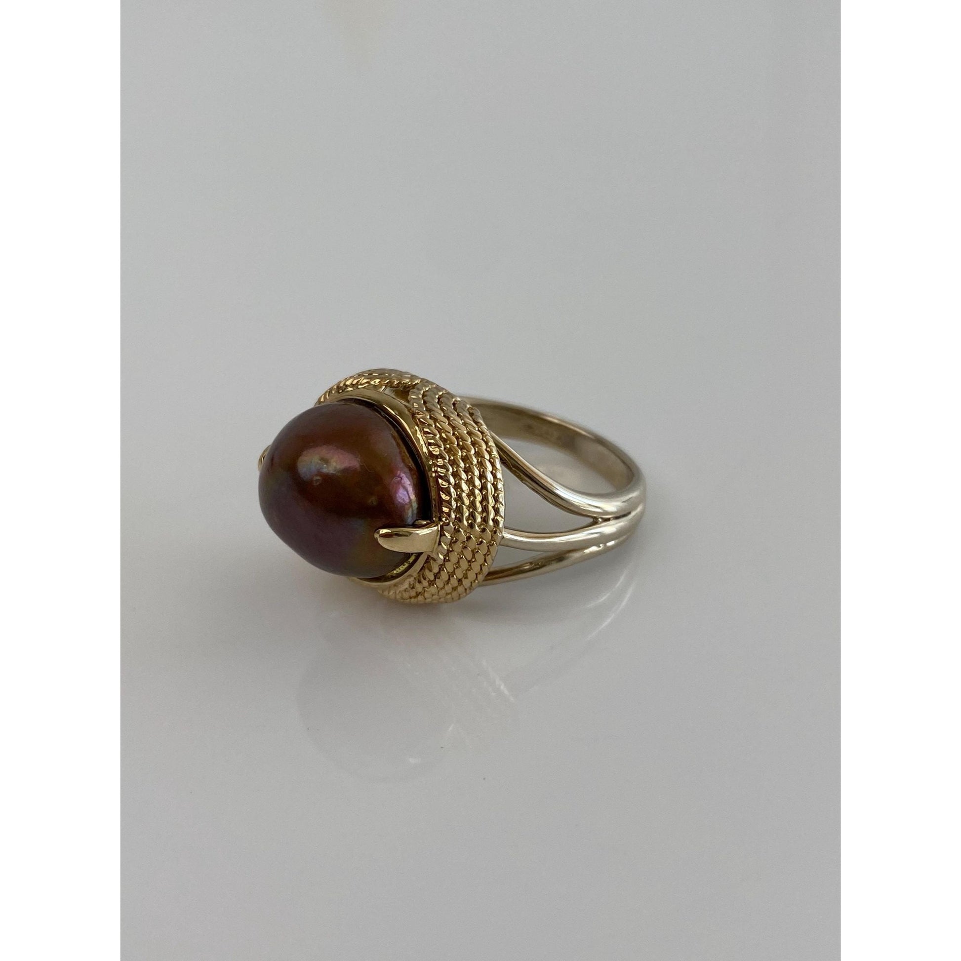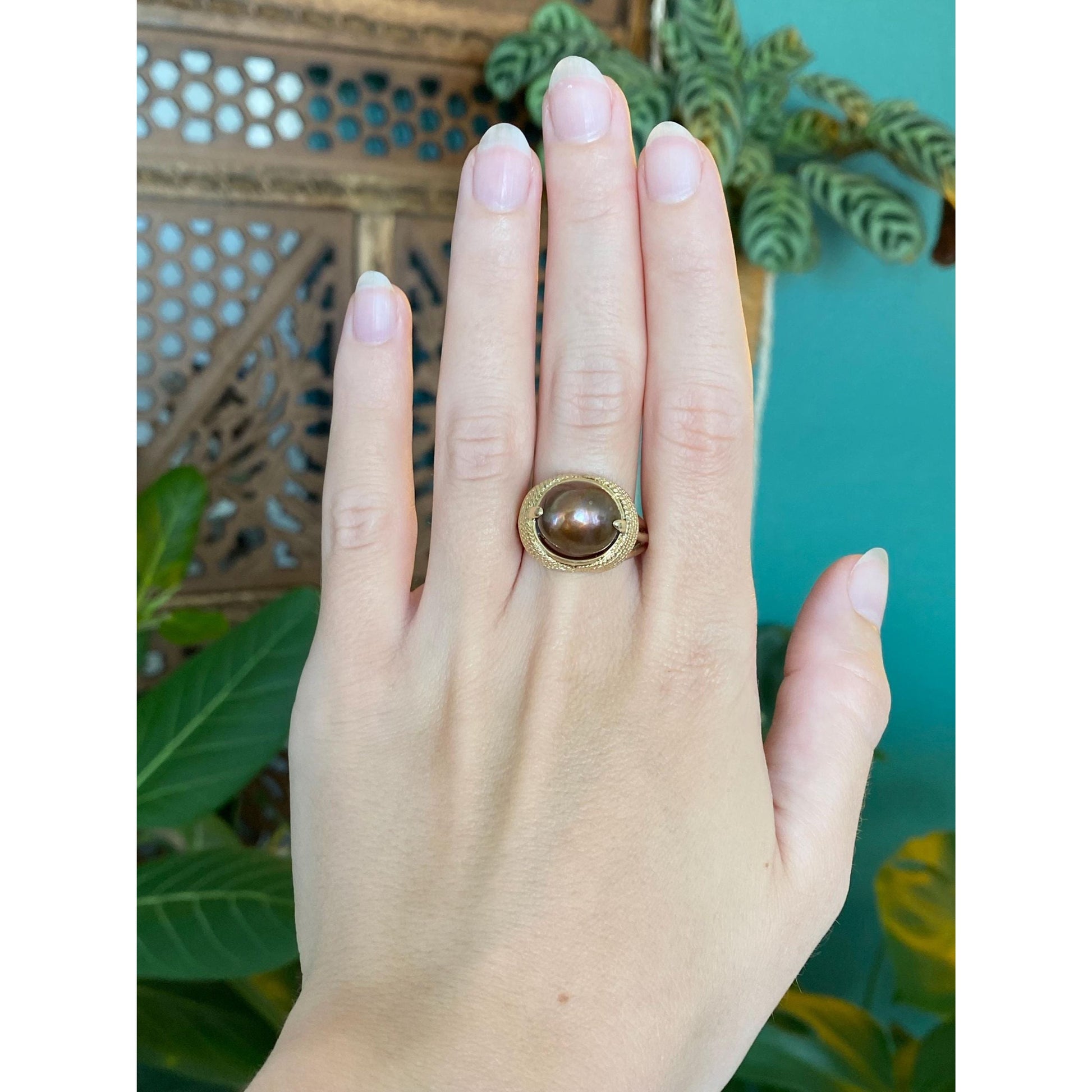 Vintage Solid 14k Yellow Gold Brown Pearl Ring - Size 8.25