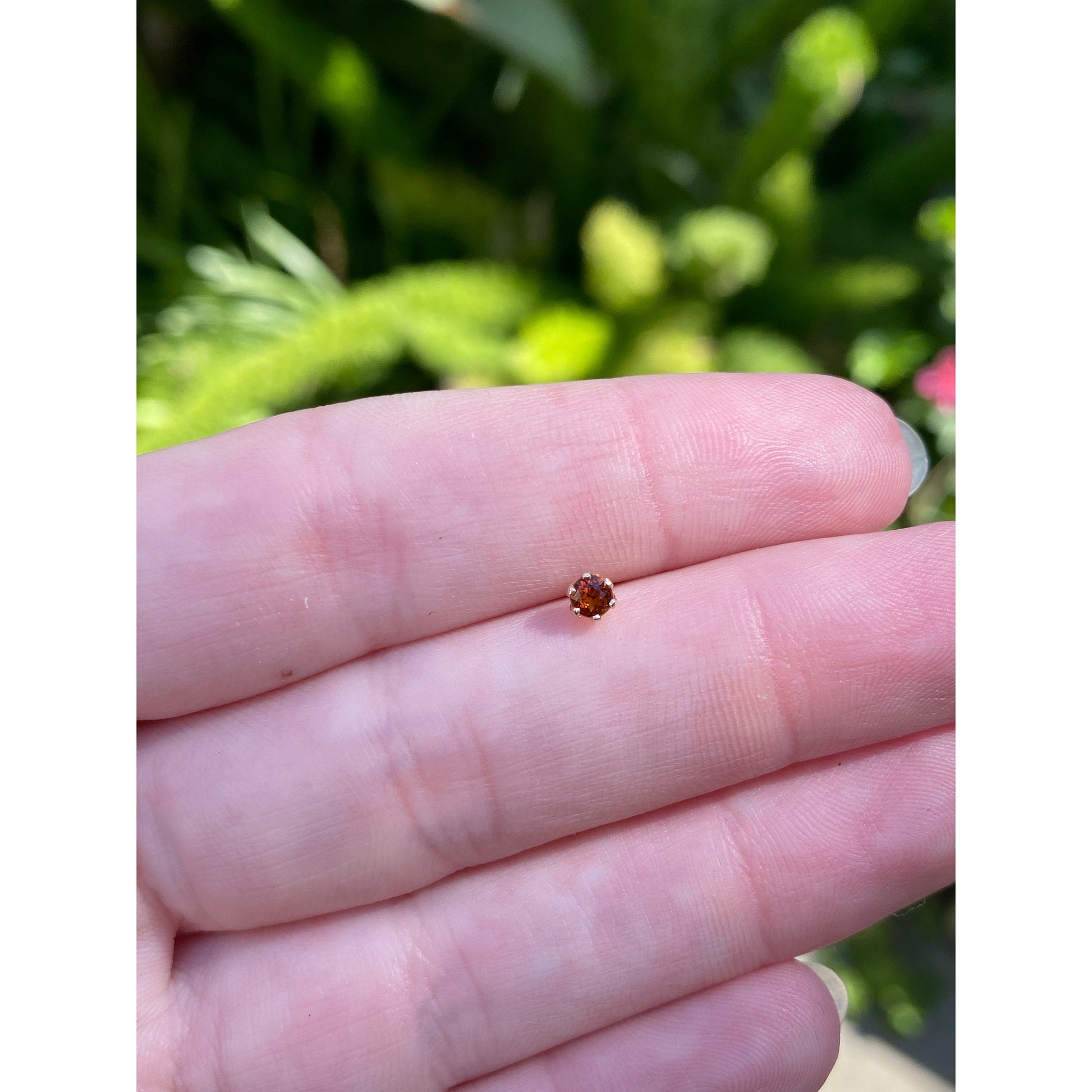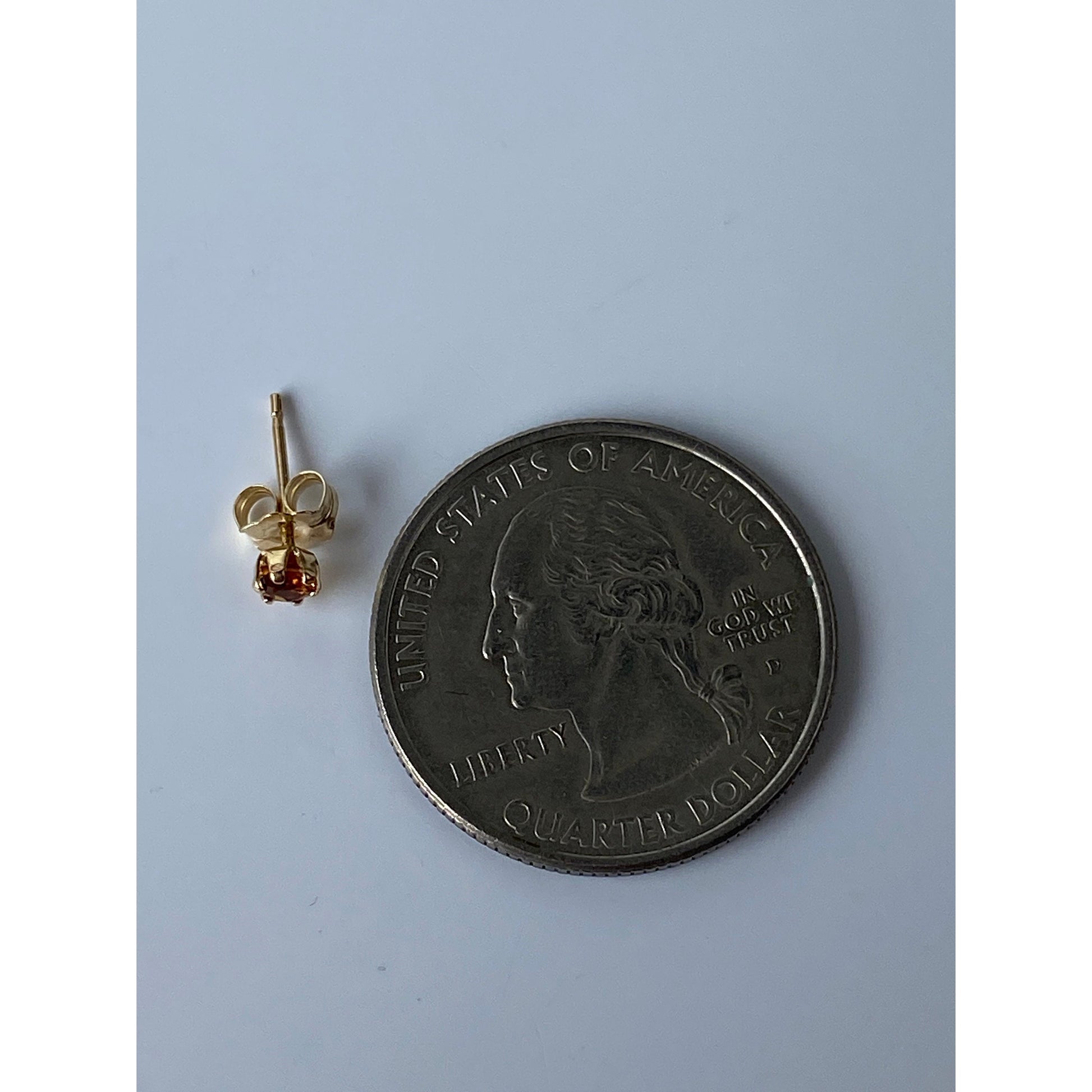 Vintage Solid 14k Yellow Gold Burnt Orange Cubic Zirconia Single Stud Earring