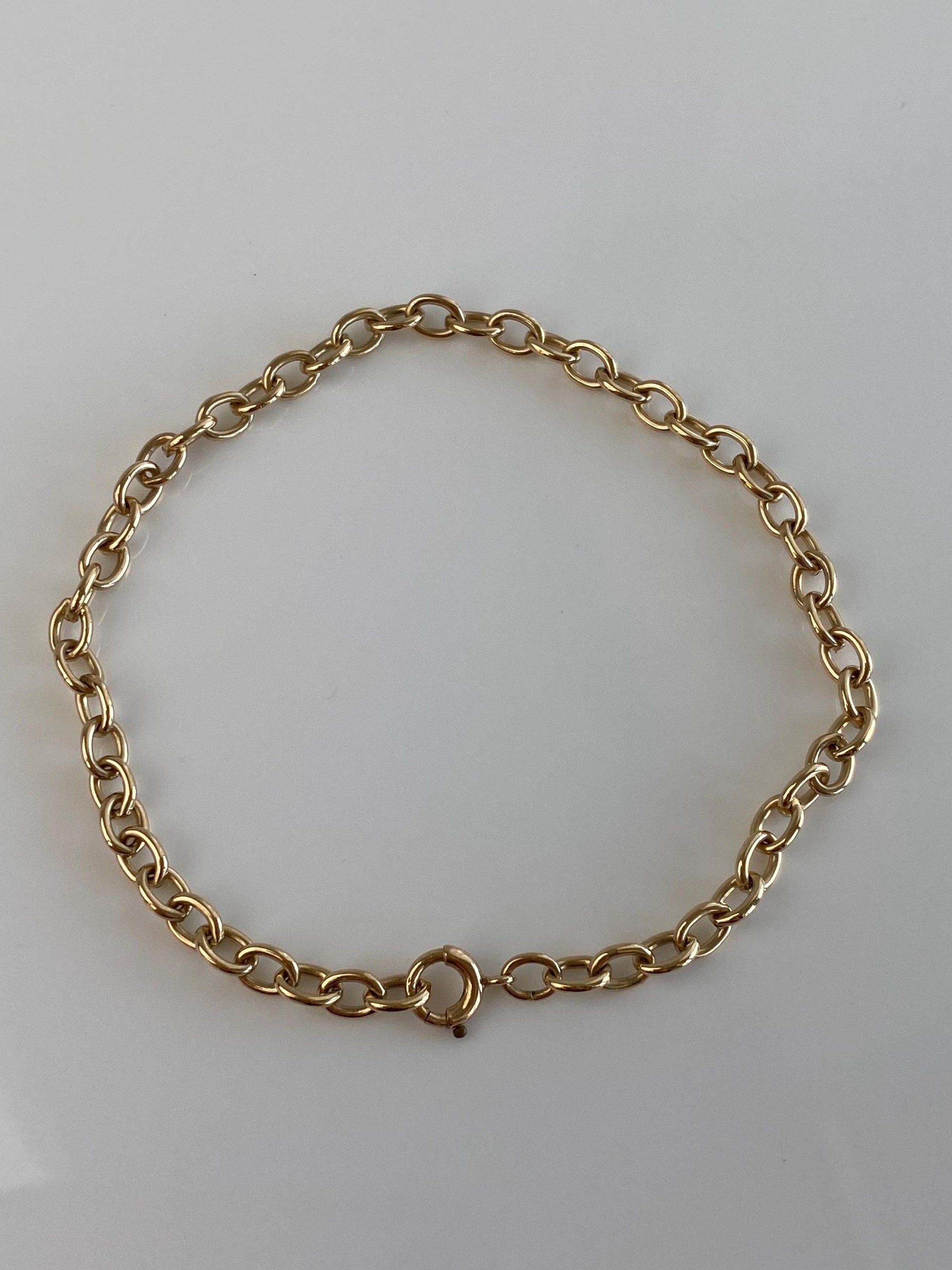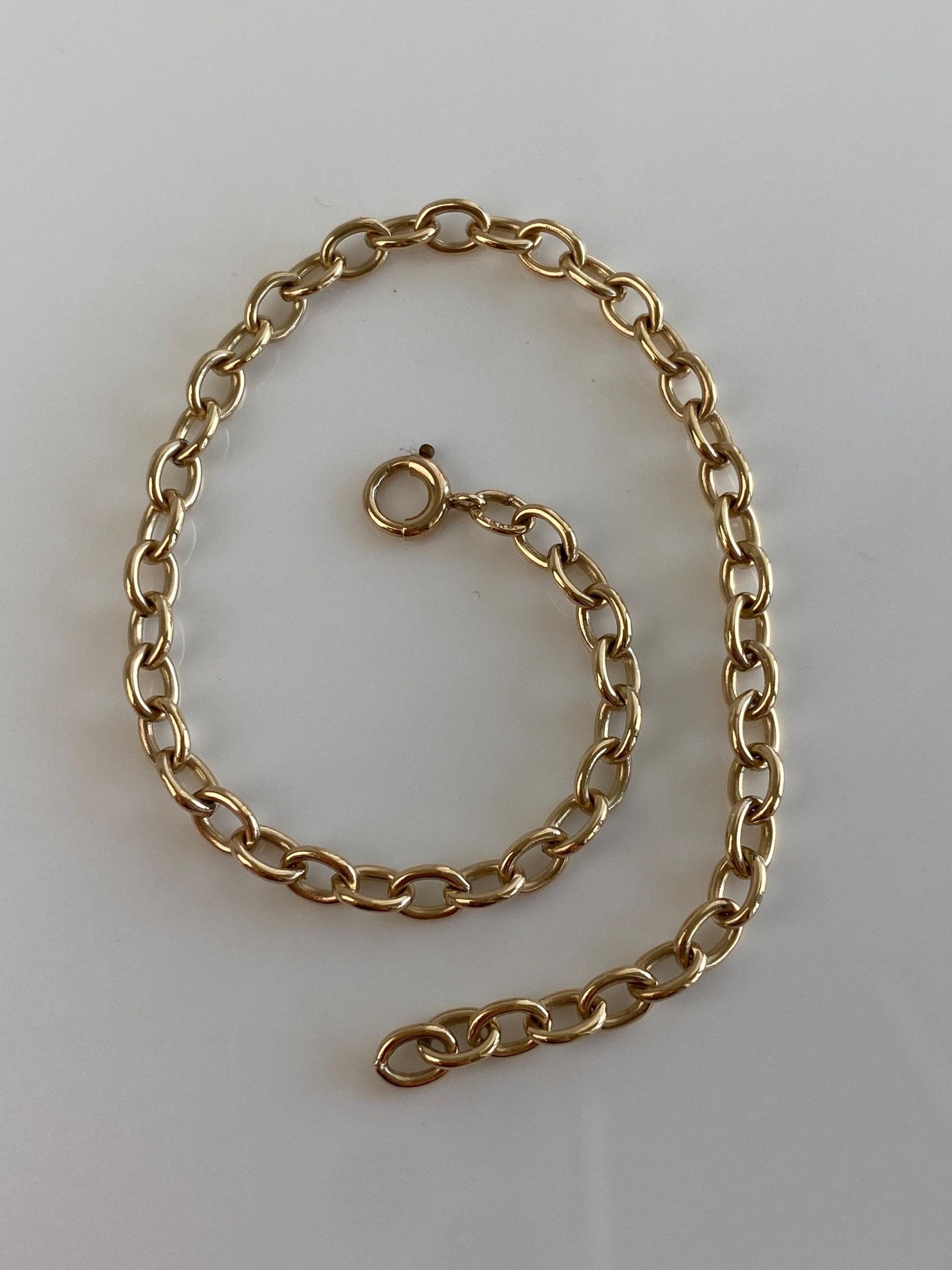 Vintage Solid 14k Yellow Gold Cable Link Charm Bracelet - 7.25 inches