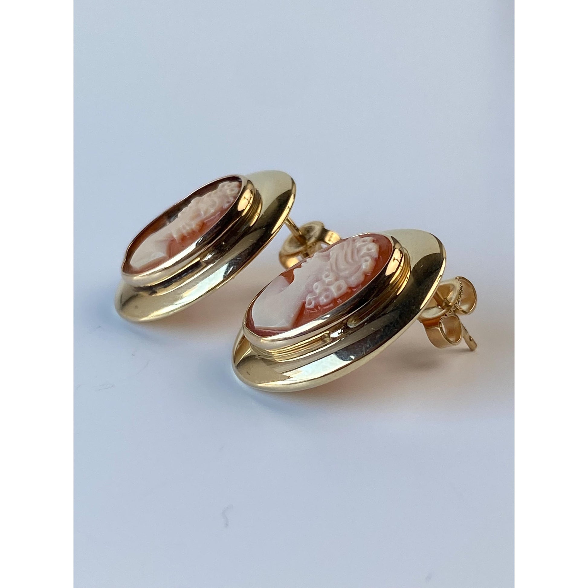 Vintage Solid 14k Yellow Gold Cameo Stud Earrings