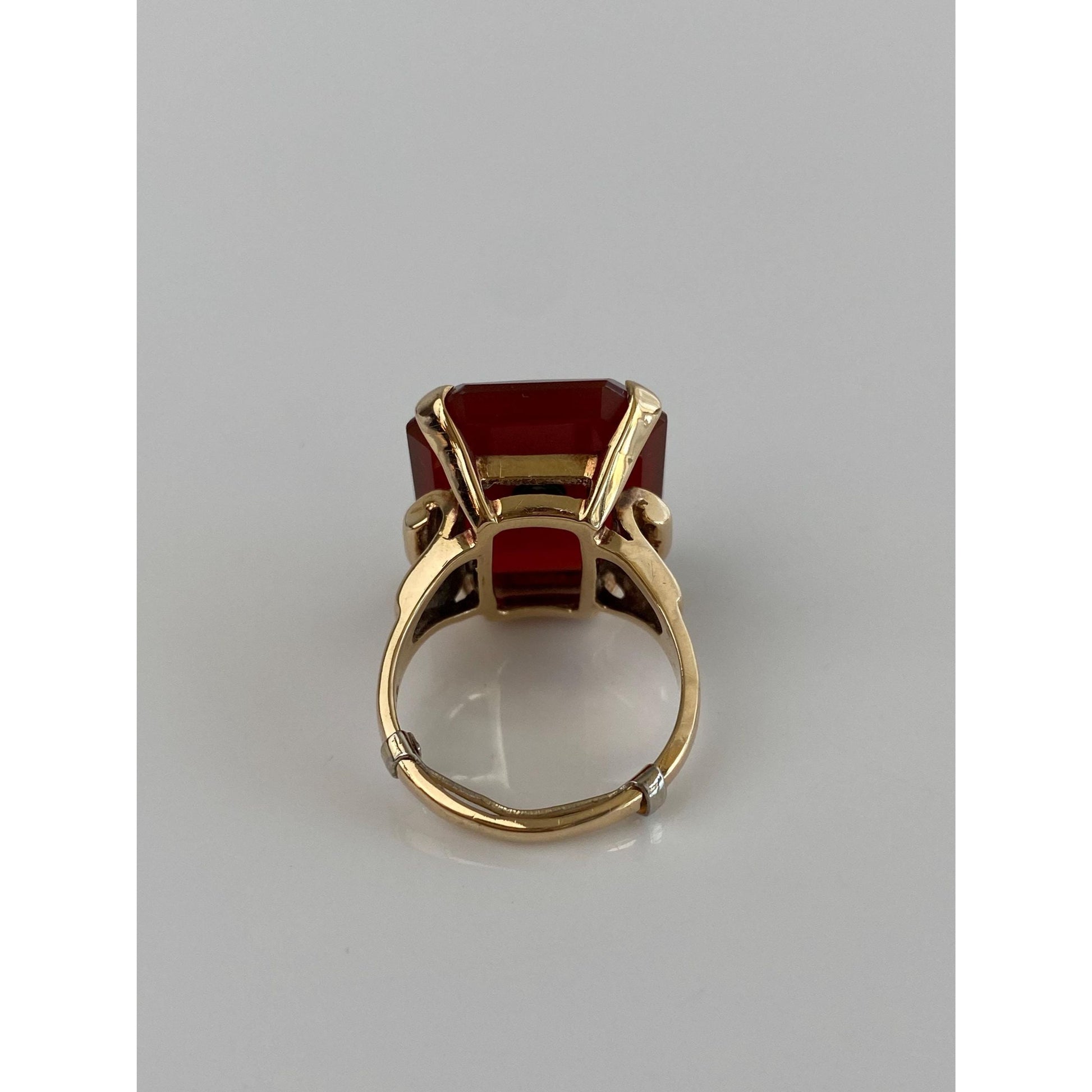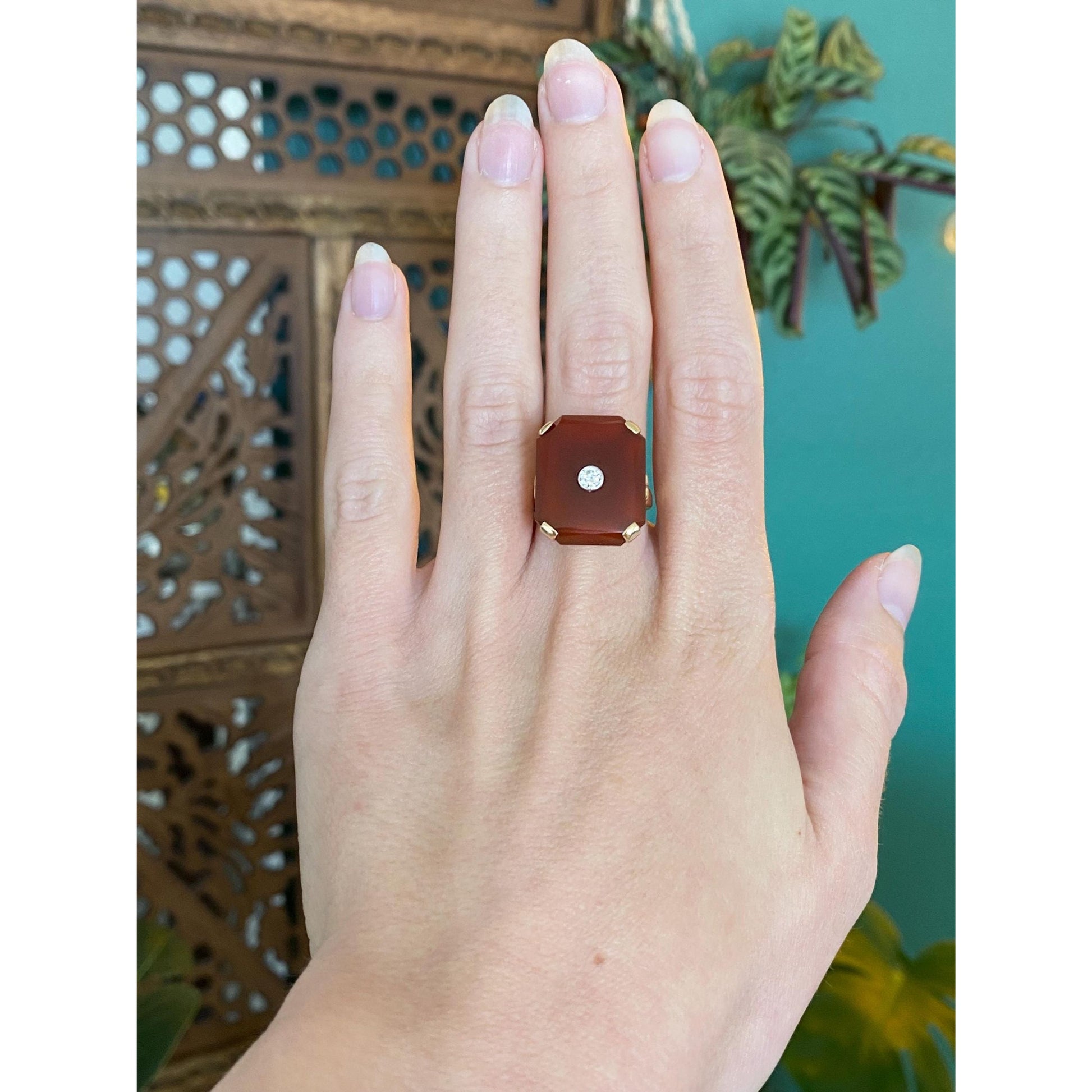 Vintage Solid 14k Yellow Gold Carnelian Diamond Inlay Ring - Size 6.75