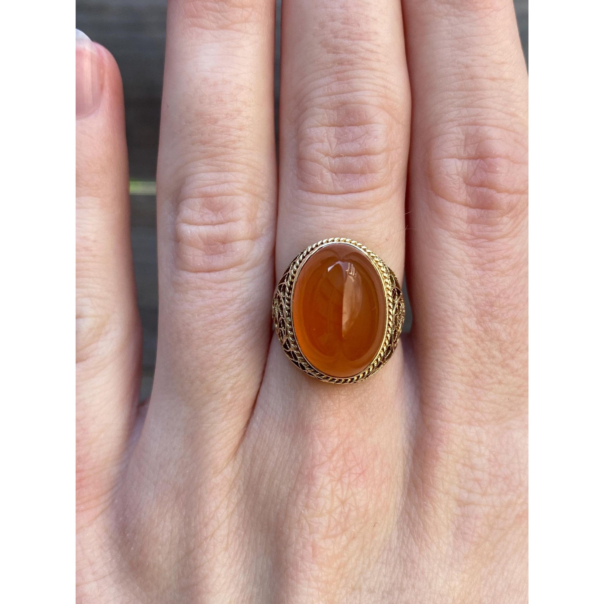 Vintage Solid 14k Yellow Gold Carnelian Ring - Size 5