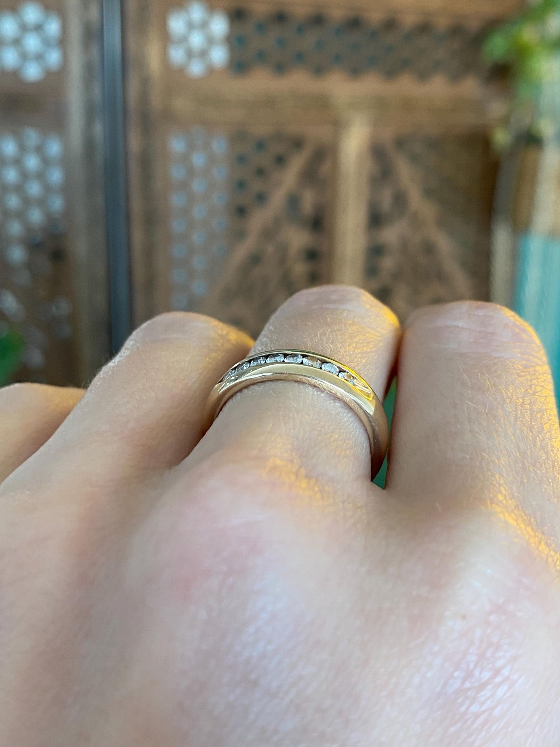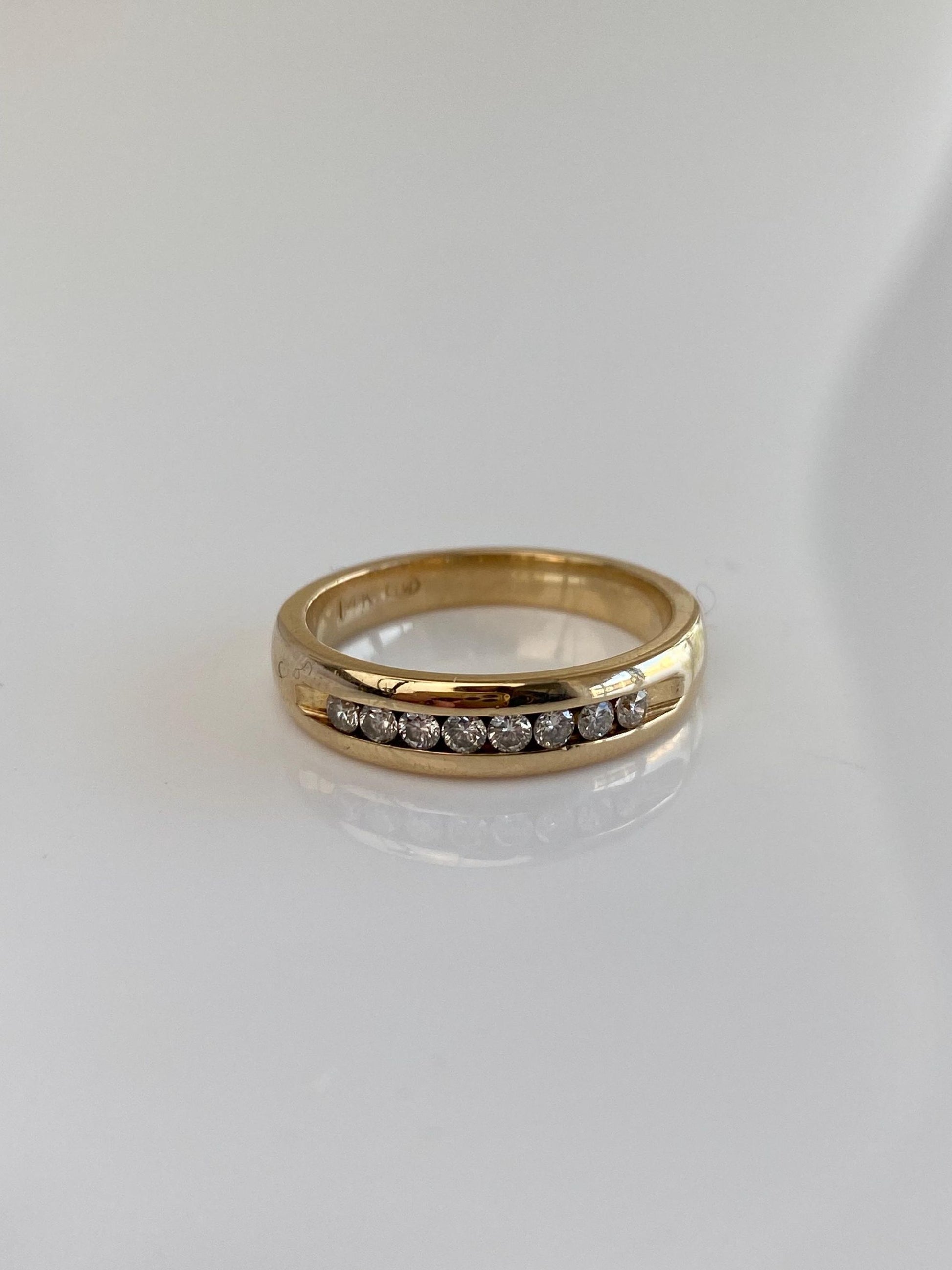 Vintage Solid 14k Yellow Gold Channel Set Diamond Ring Band - Size 6.25