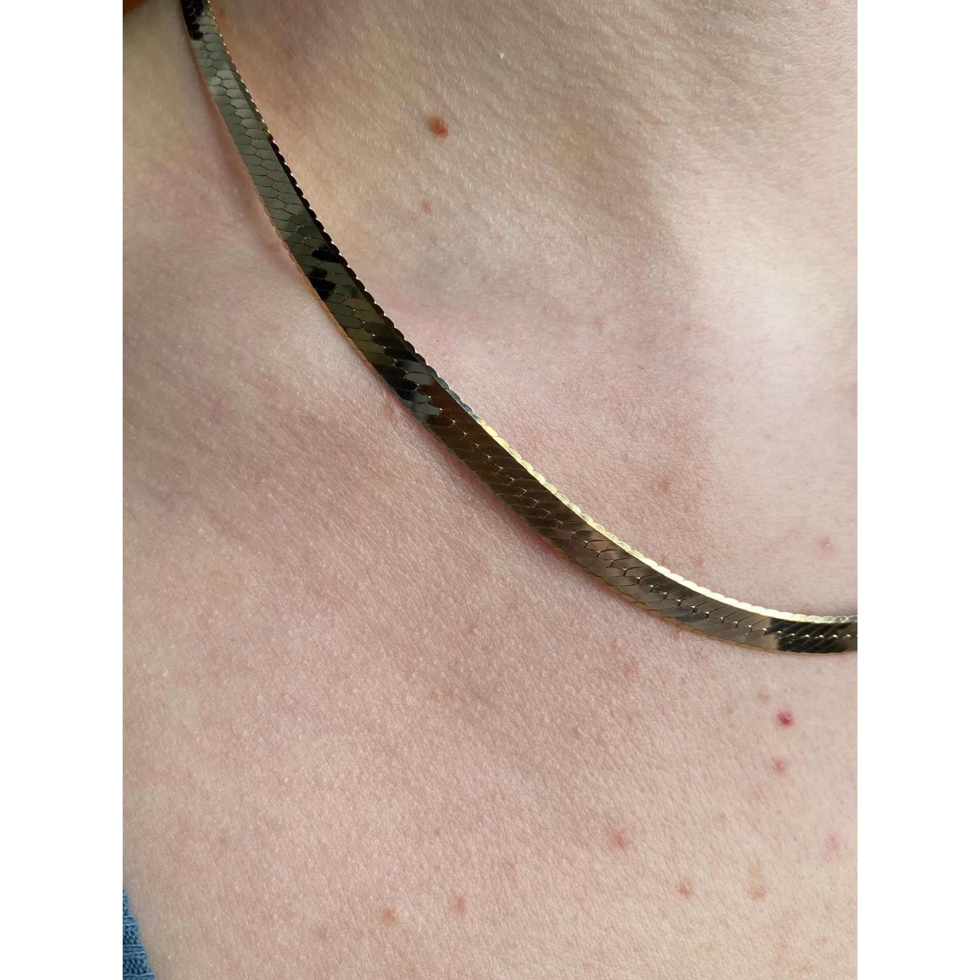 Vintage Solid 14k Yellow Gold Chunky Herringbone Chain Necklace - 17.75 inches