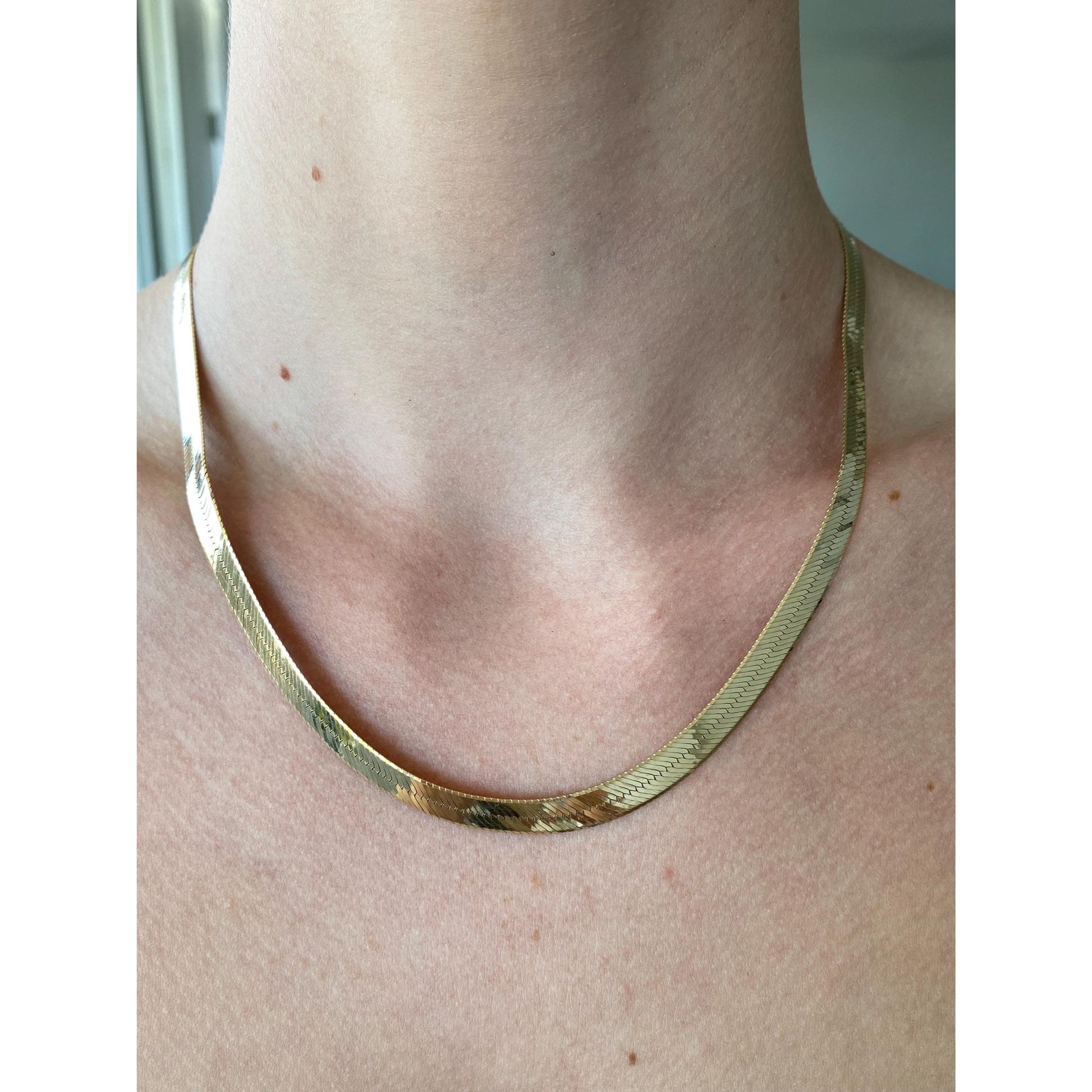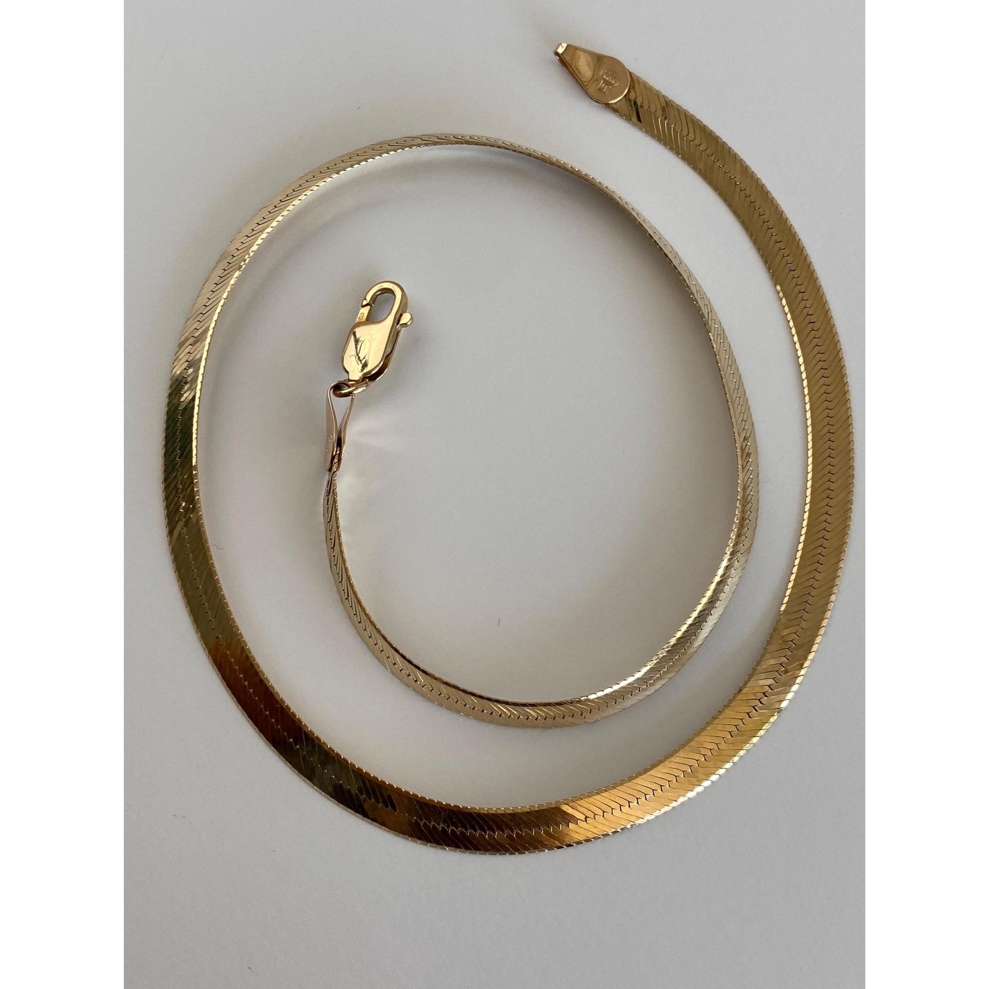 Vintage Solid 14k Yellow Gold Chunky Herringbone Chain Necklace - 18.25 inches