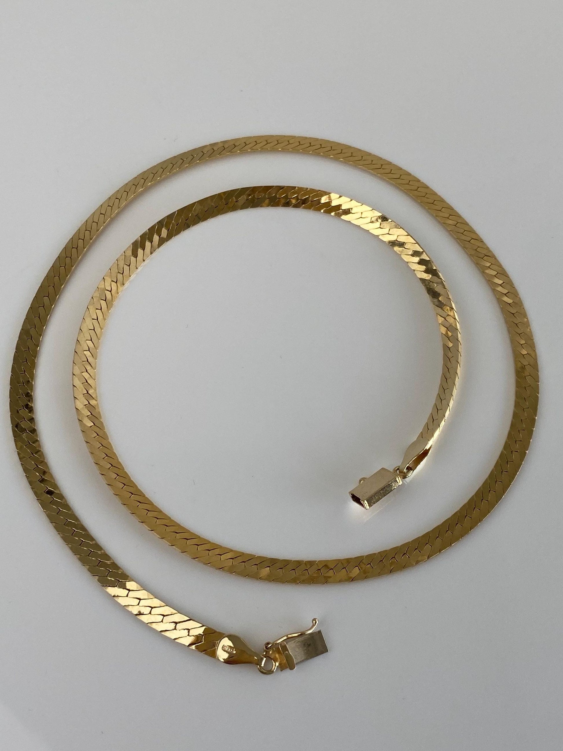 Vintage Solid 14k Yellow Gold Chunky Herringbone Chain Necklace - 20 inches