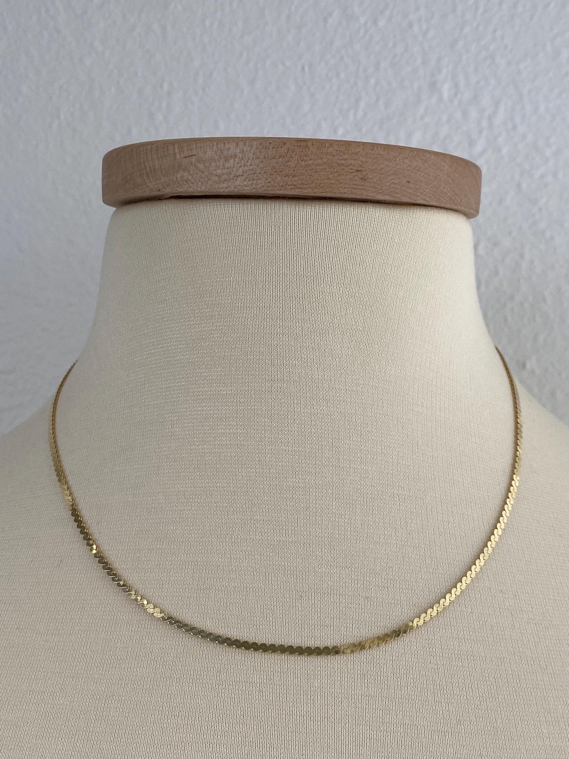 Vintage Solid 14k Yellow Gold Chunky Serpentine Chain Necklace - 18 inches