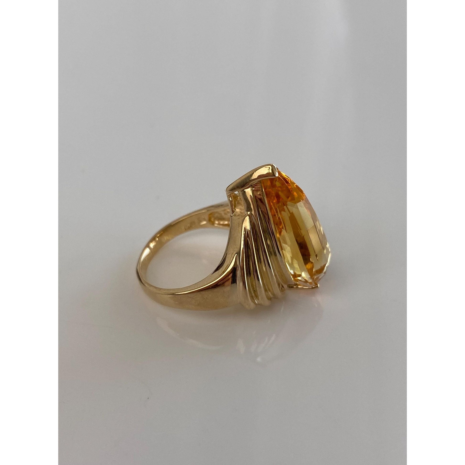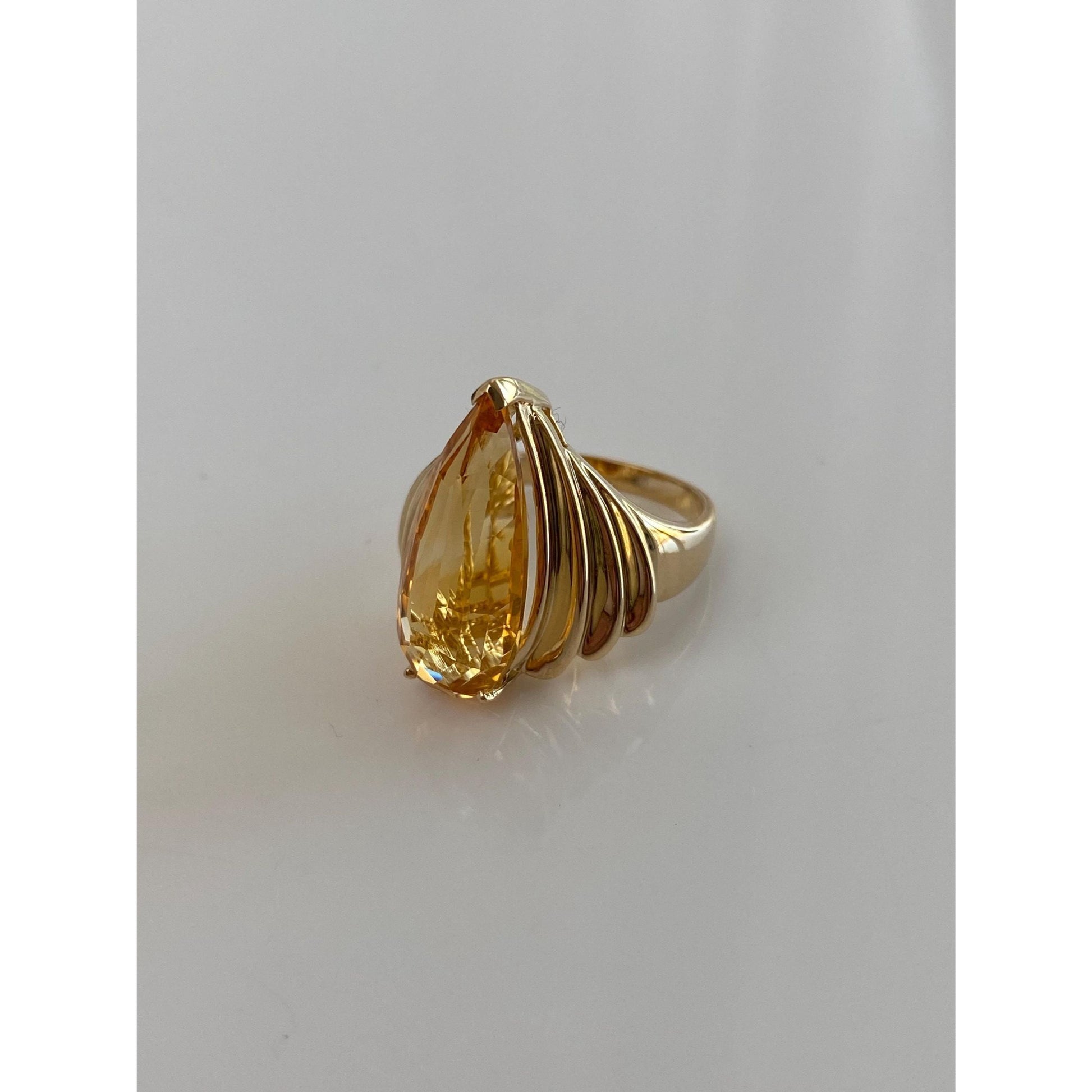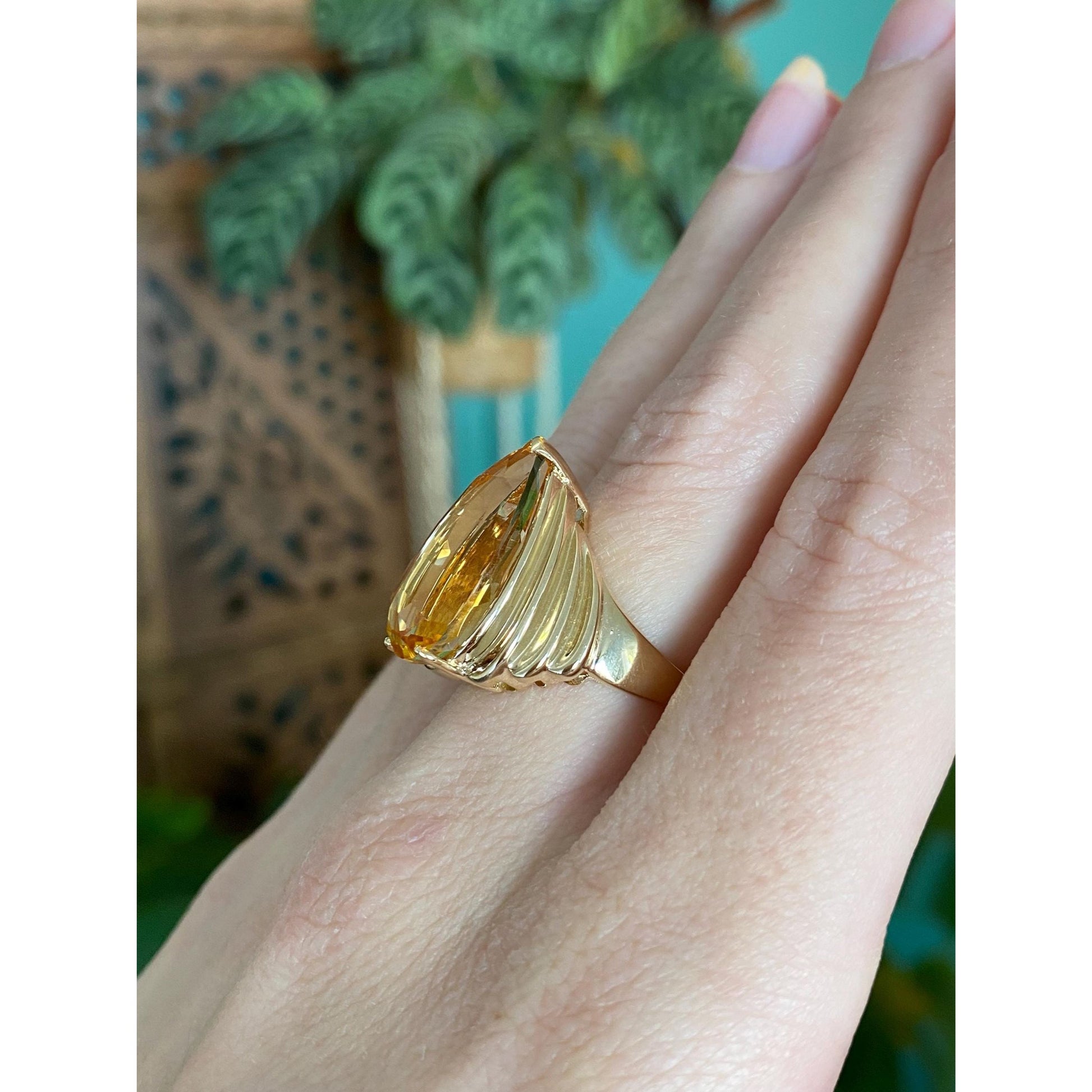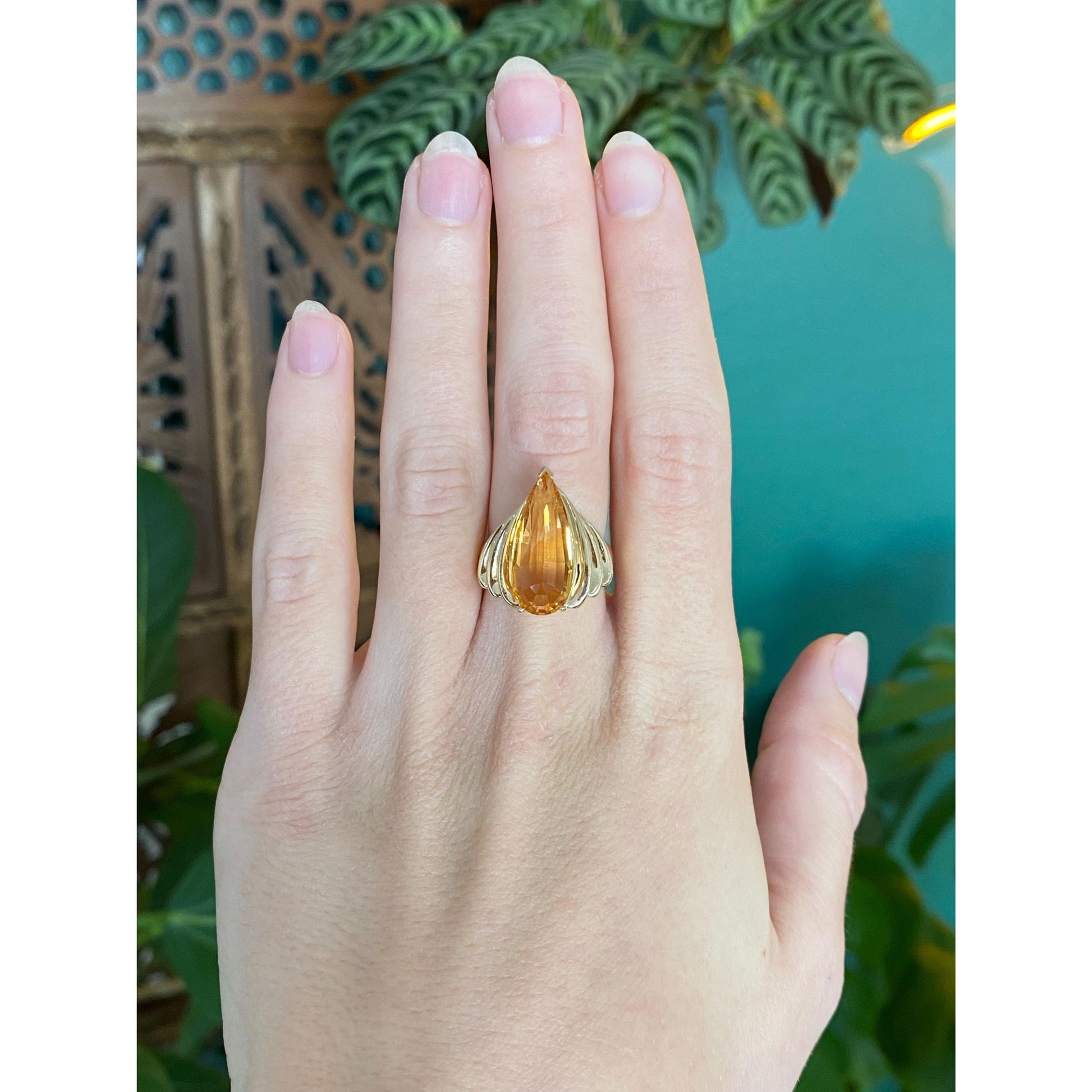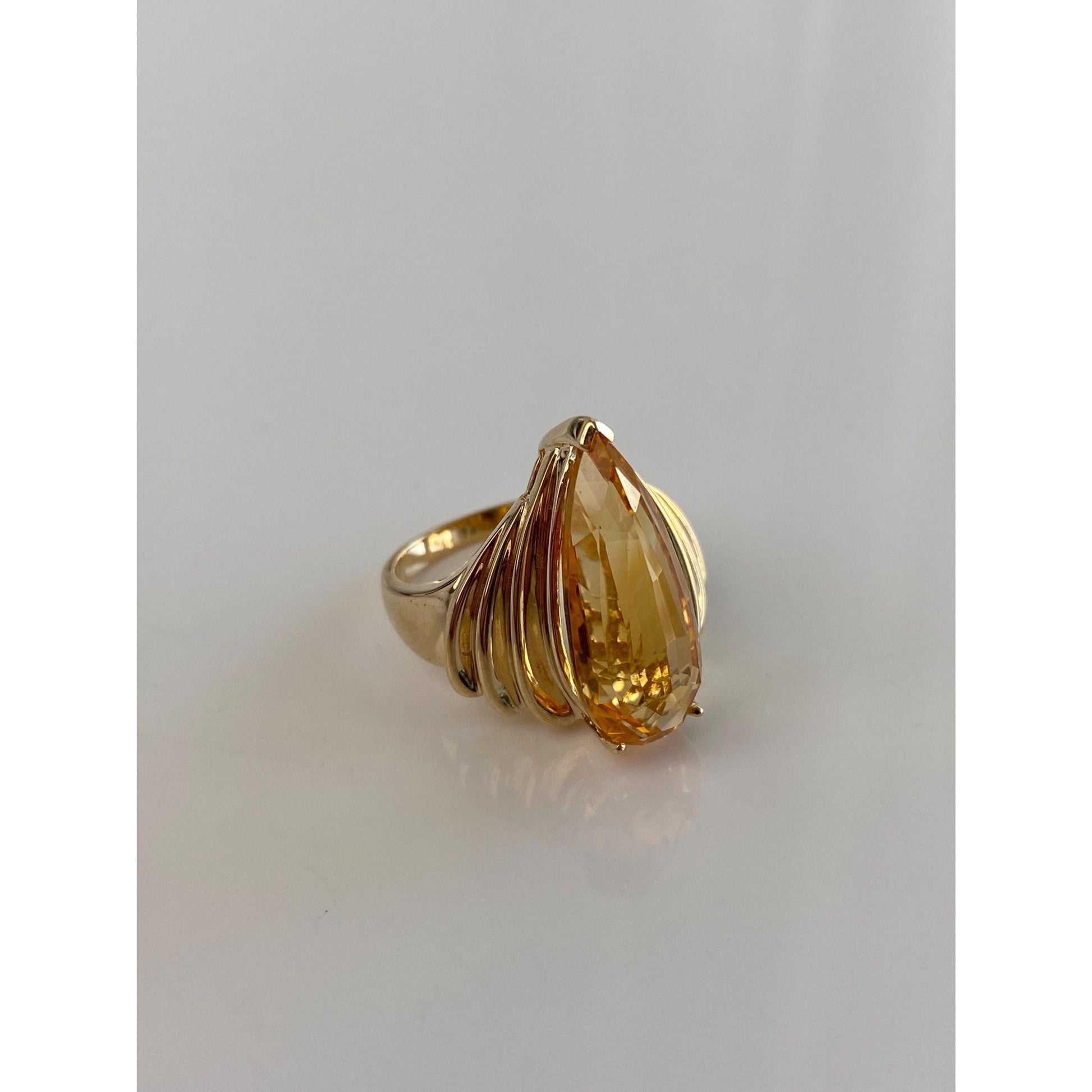 Vintage Solid 14k Yellow Gold Citrine Teardrop Fluted Ring - Size 5.75