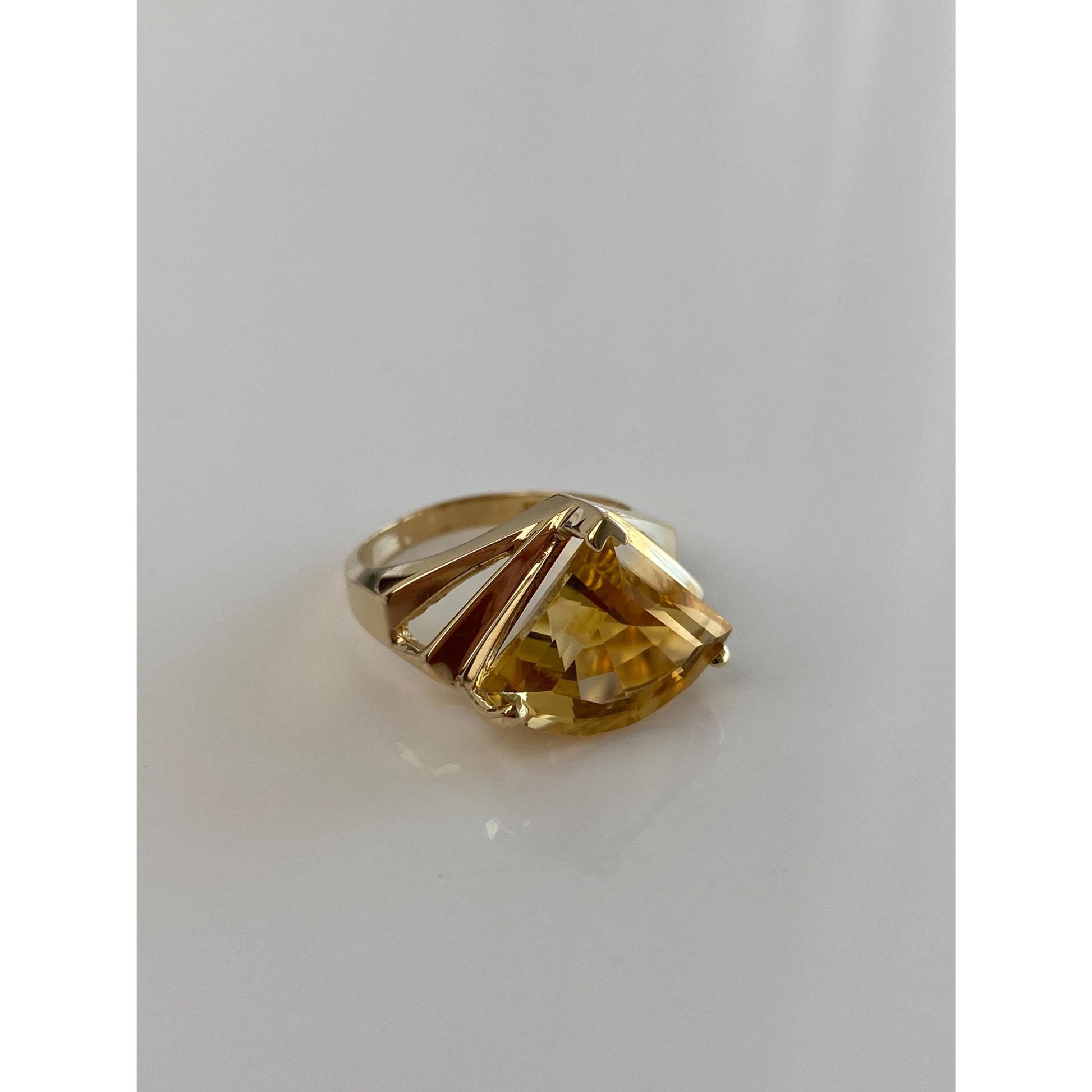 Vintage Solid 14k Yellow Gold Citrine Triangle Ring - Size 5.5