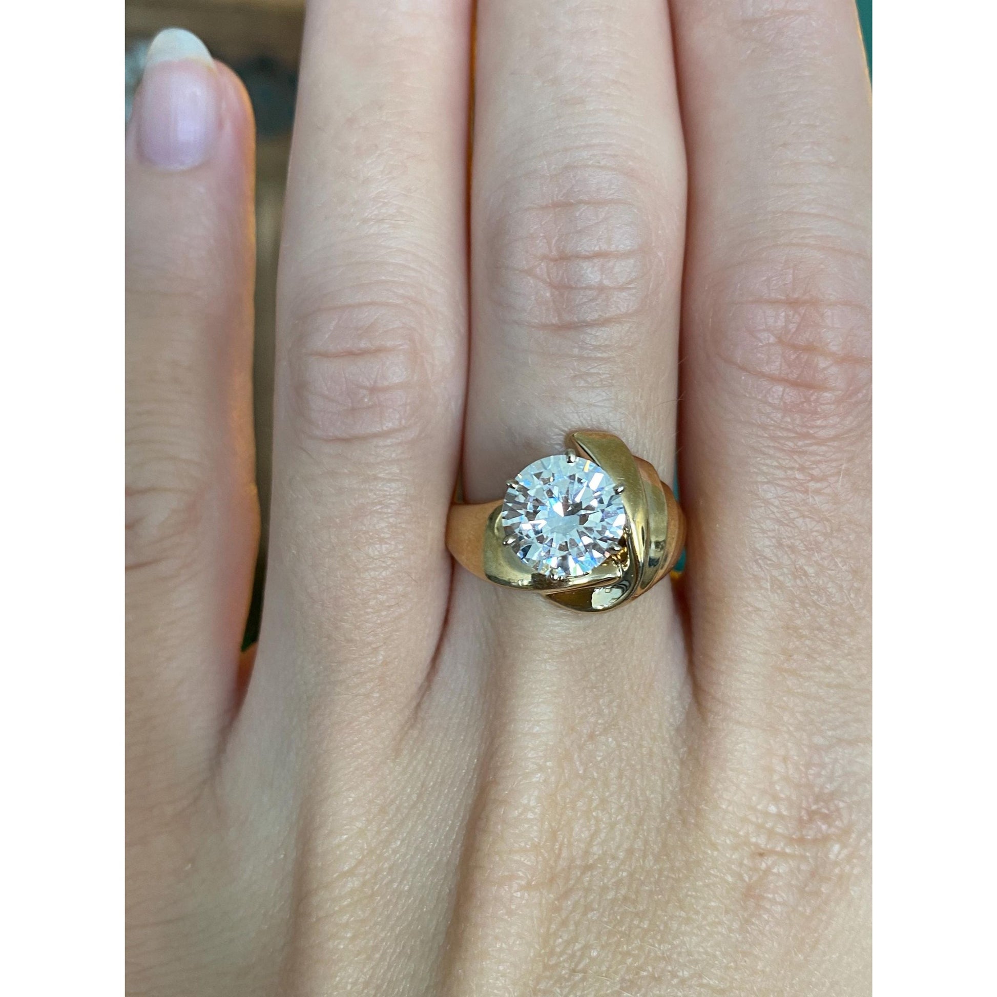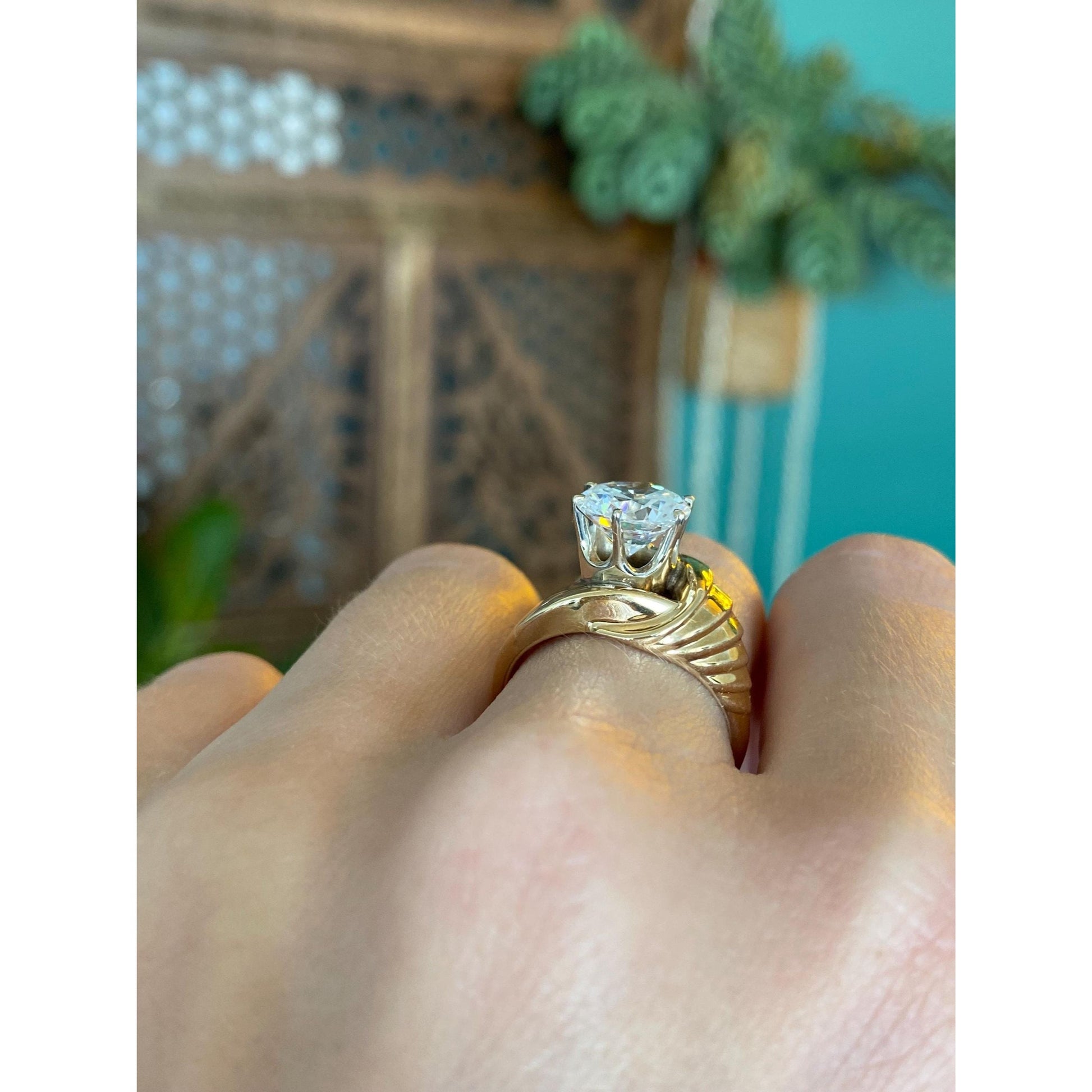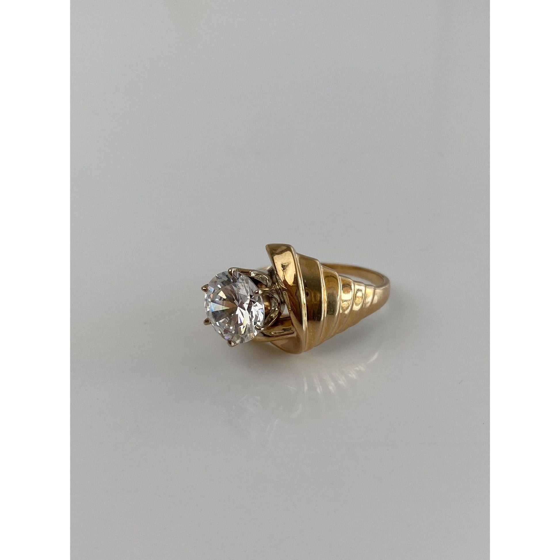 Vintage Solid 14k Yellow Gold Clear Cubic Zirconia Ring - Size 7
