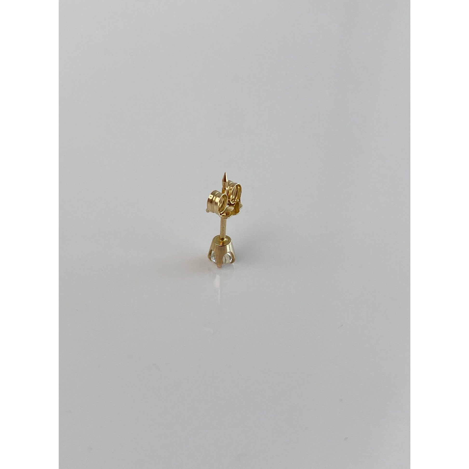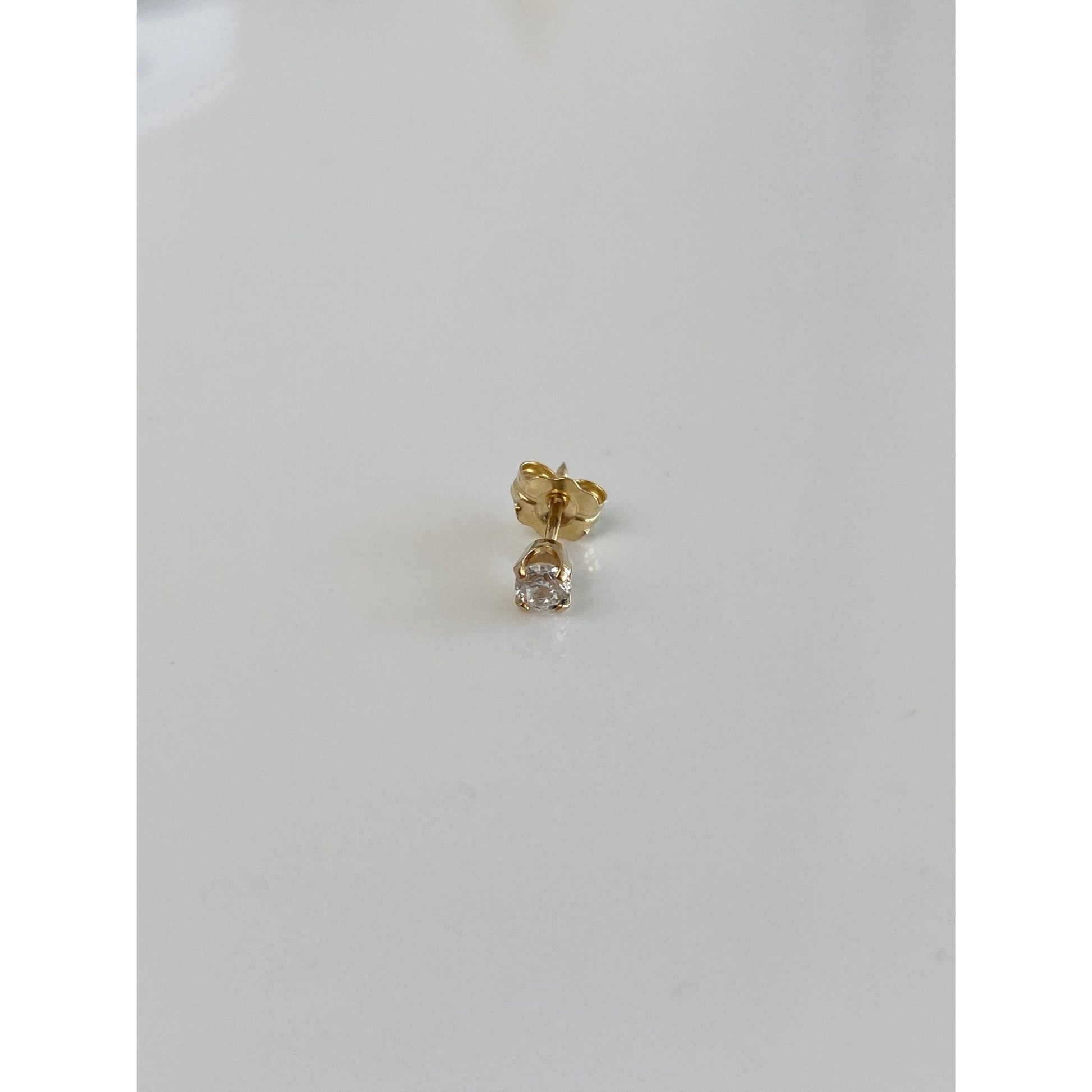 Vintage Solid 14k Yellow Gold Clear Cubic Zirconia Single Stud Earring