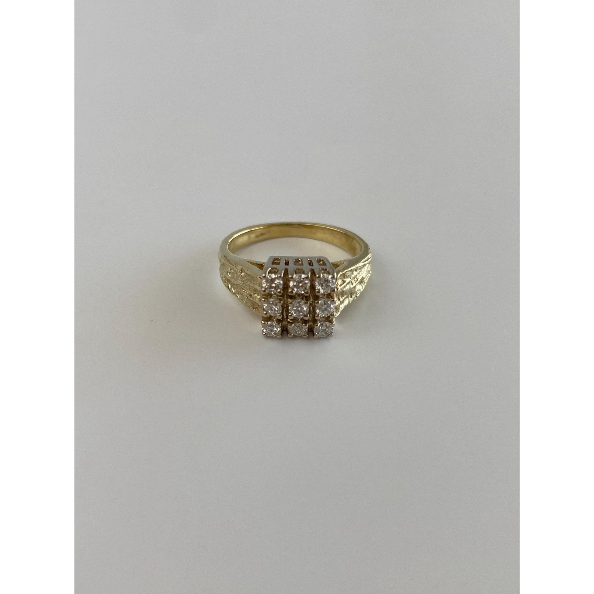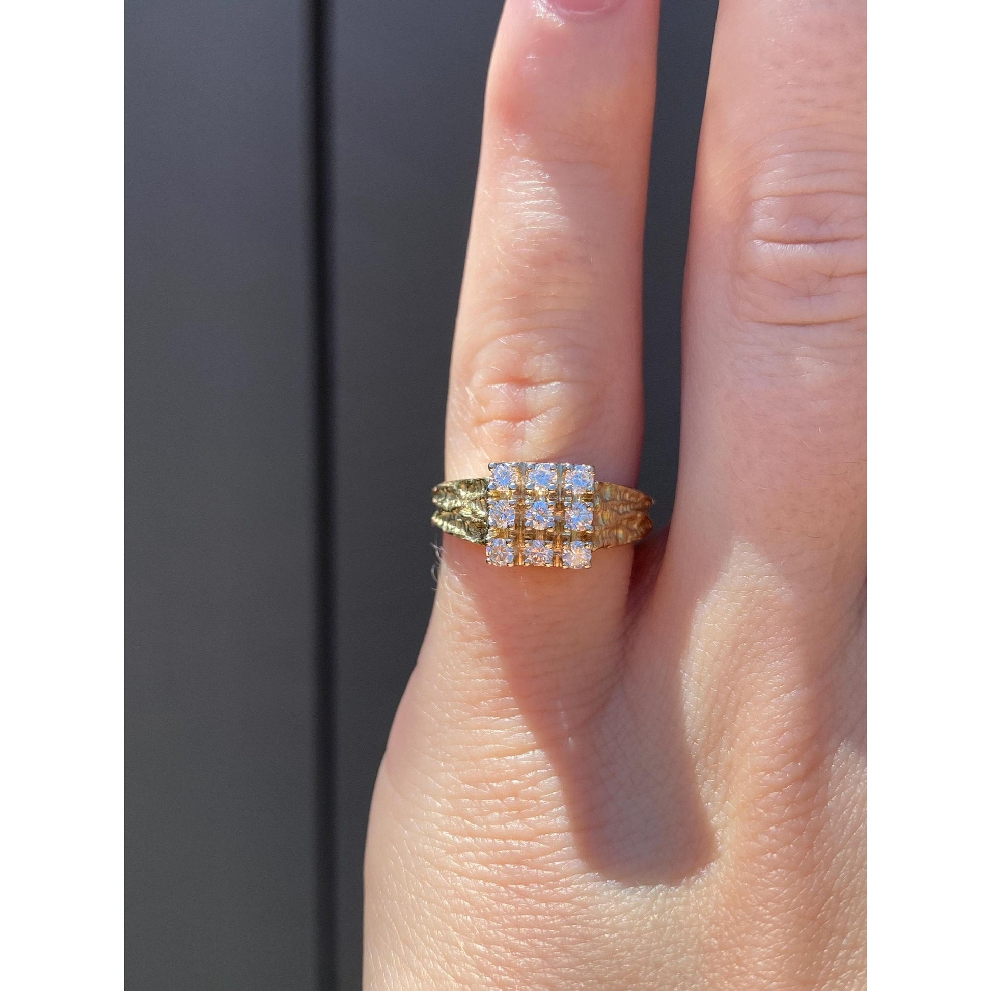 Vintage Solid 14k Yellow Gold Clear Sapphire Grid Ring - Size 4