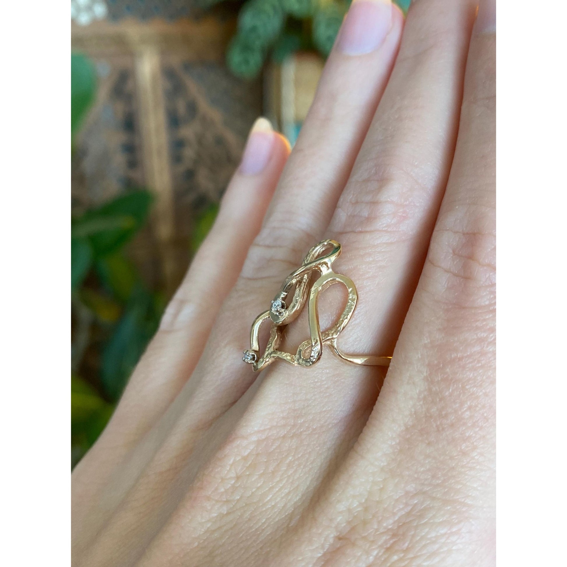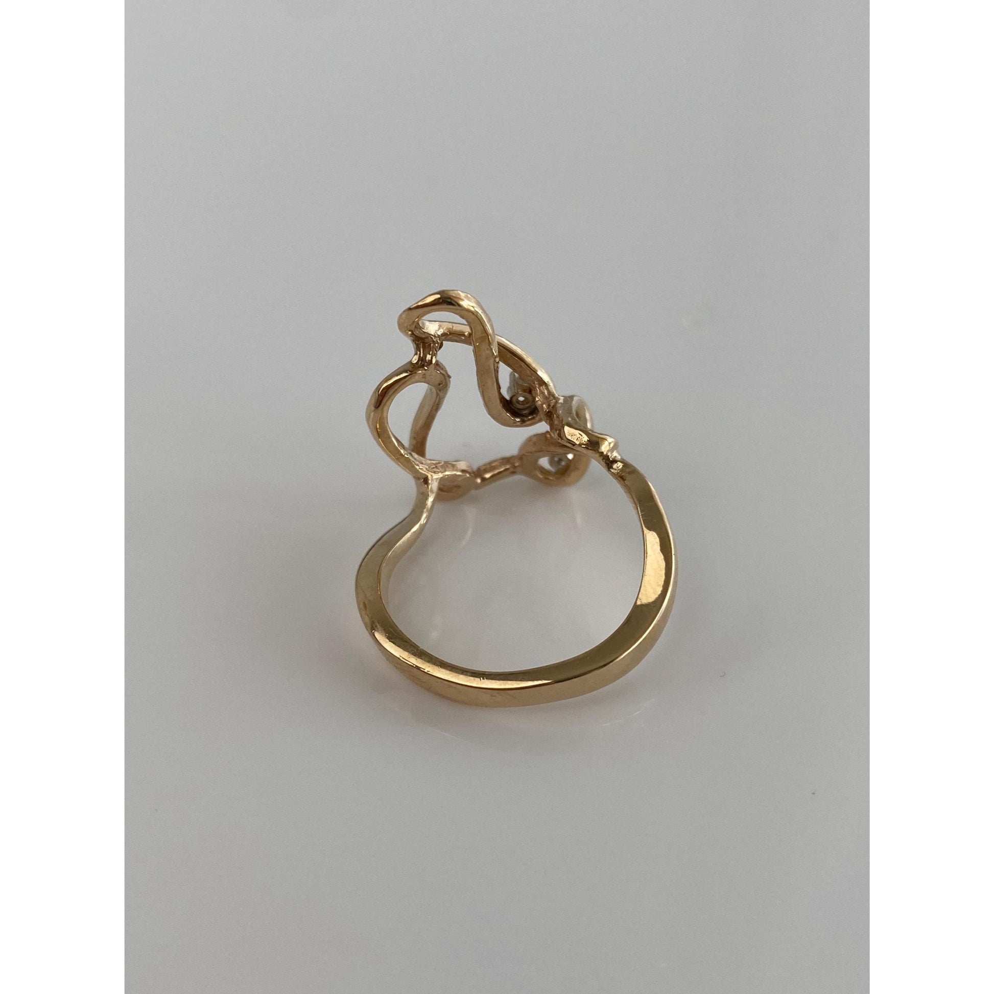 Vintage Solid 14k Yellow Gold Clear Sapphire Loops Ring - Size 6.5