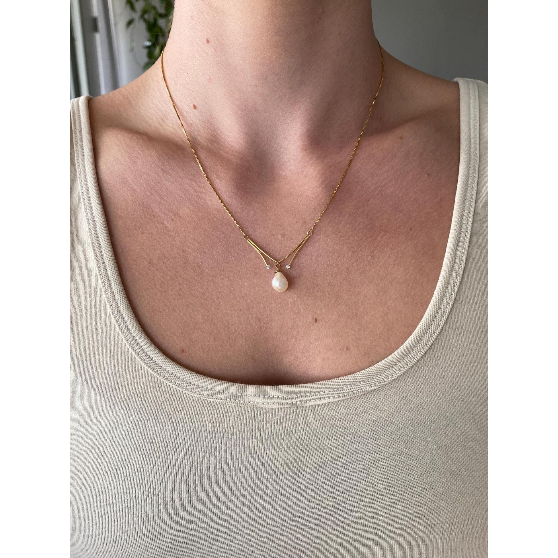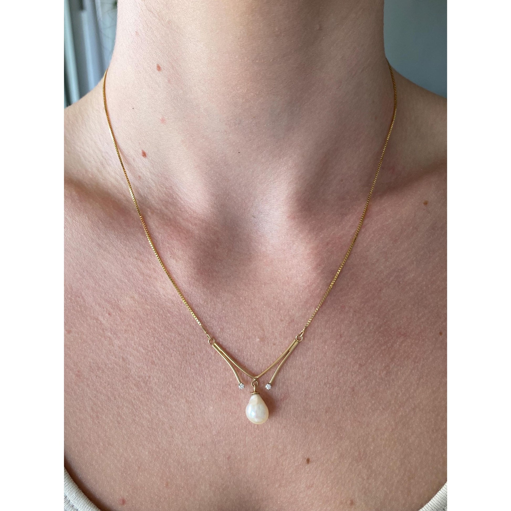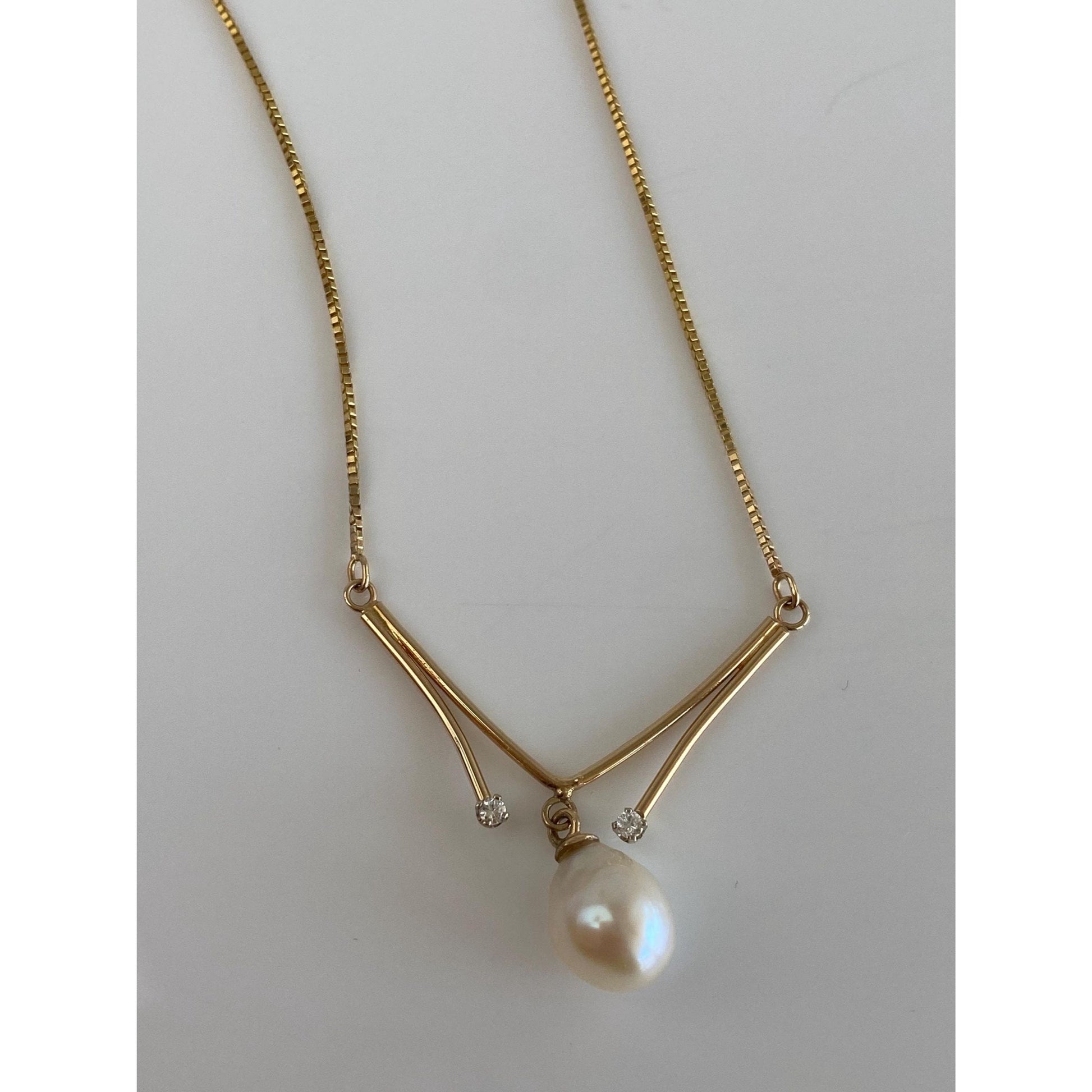 Vintage Solid 14k Yellow Gold Clear Sapphire Pearl Box Chain Necklace - 17.25 inches