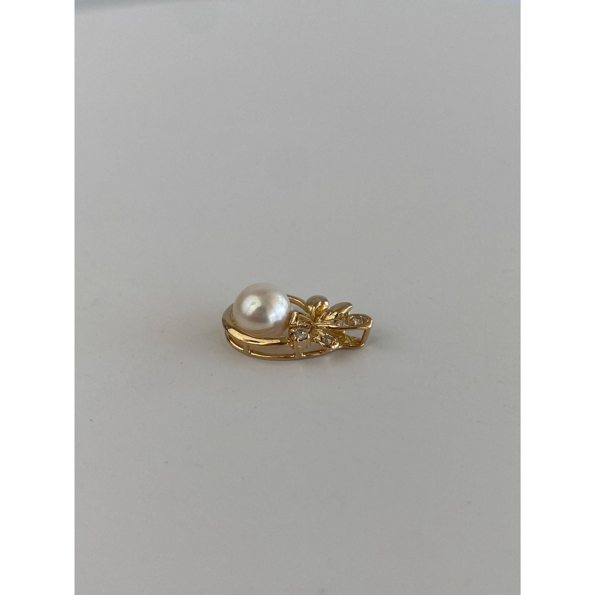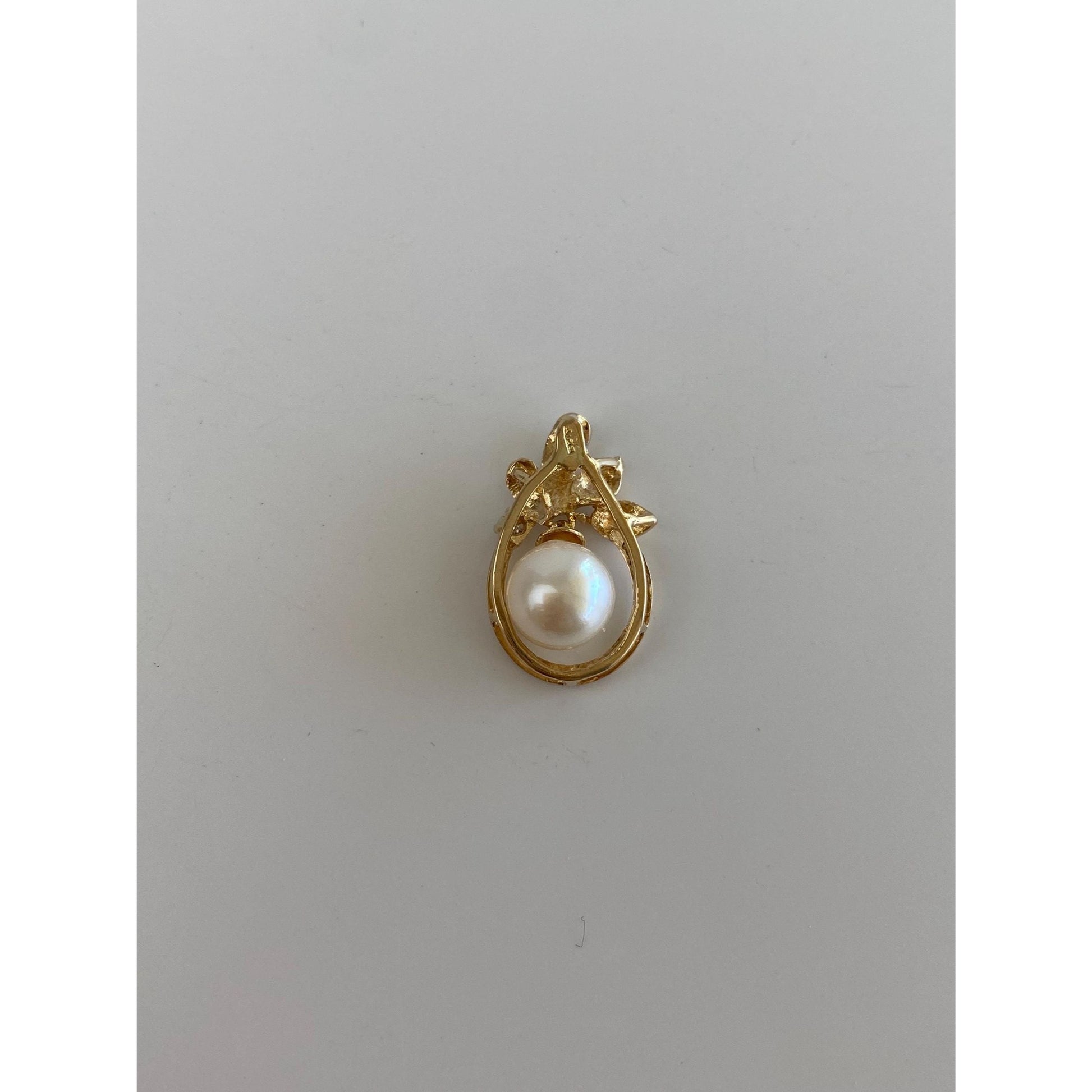 Vintage Solid 14k Yellow Gold Clear Sapphire Pearl Dangle Slide Charm