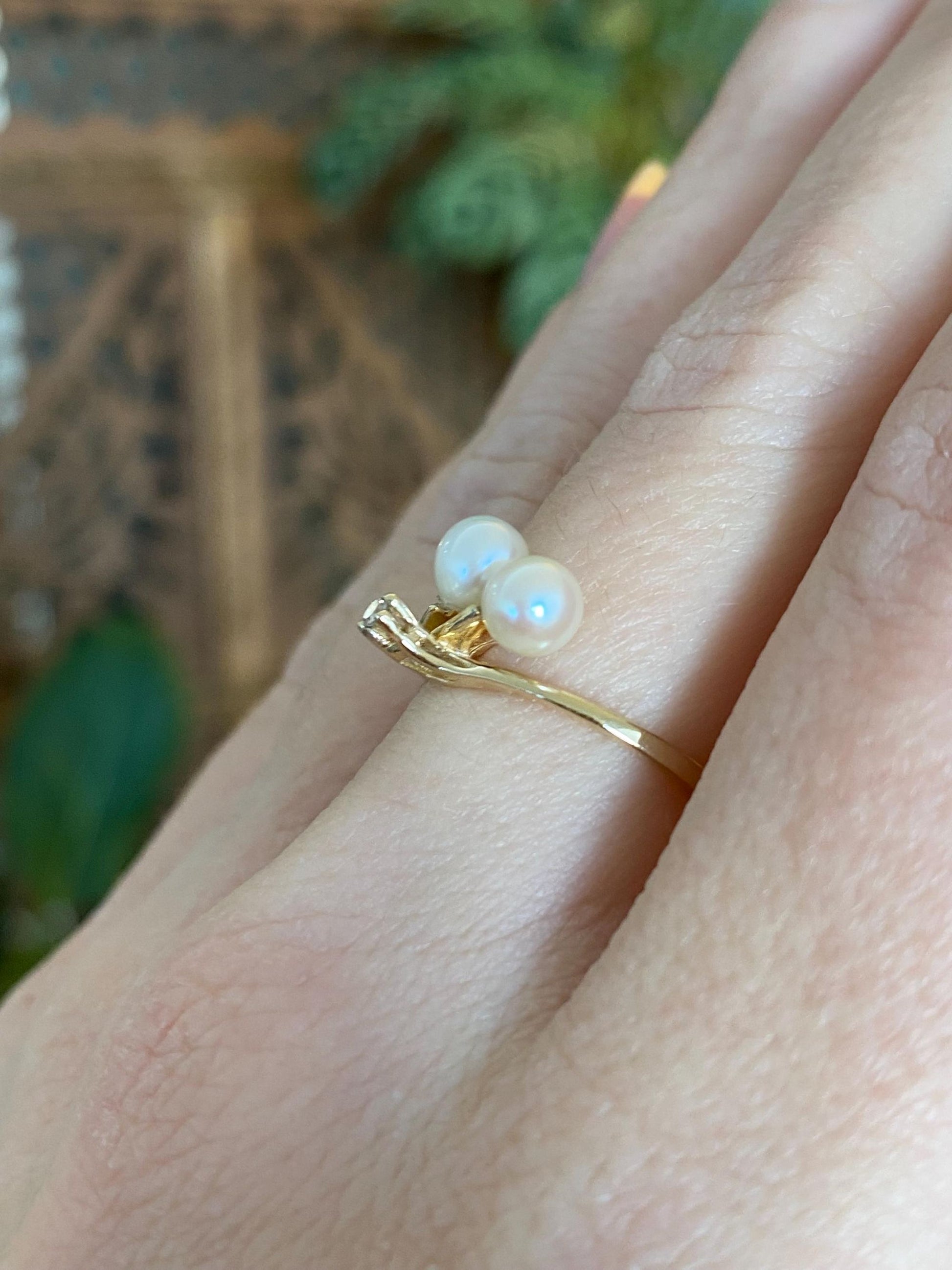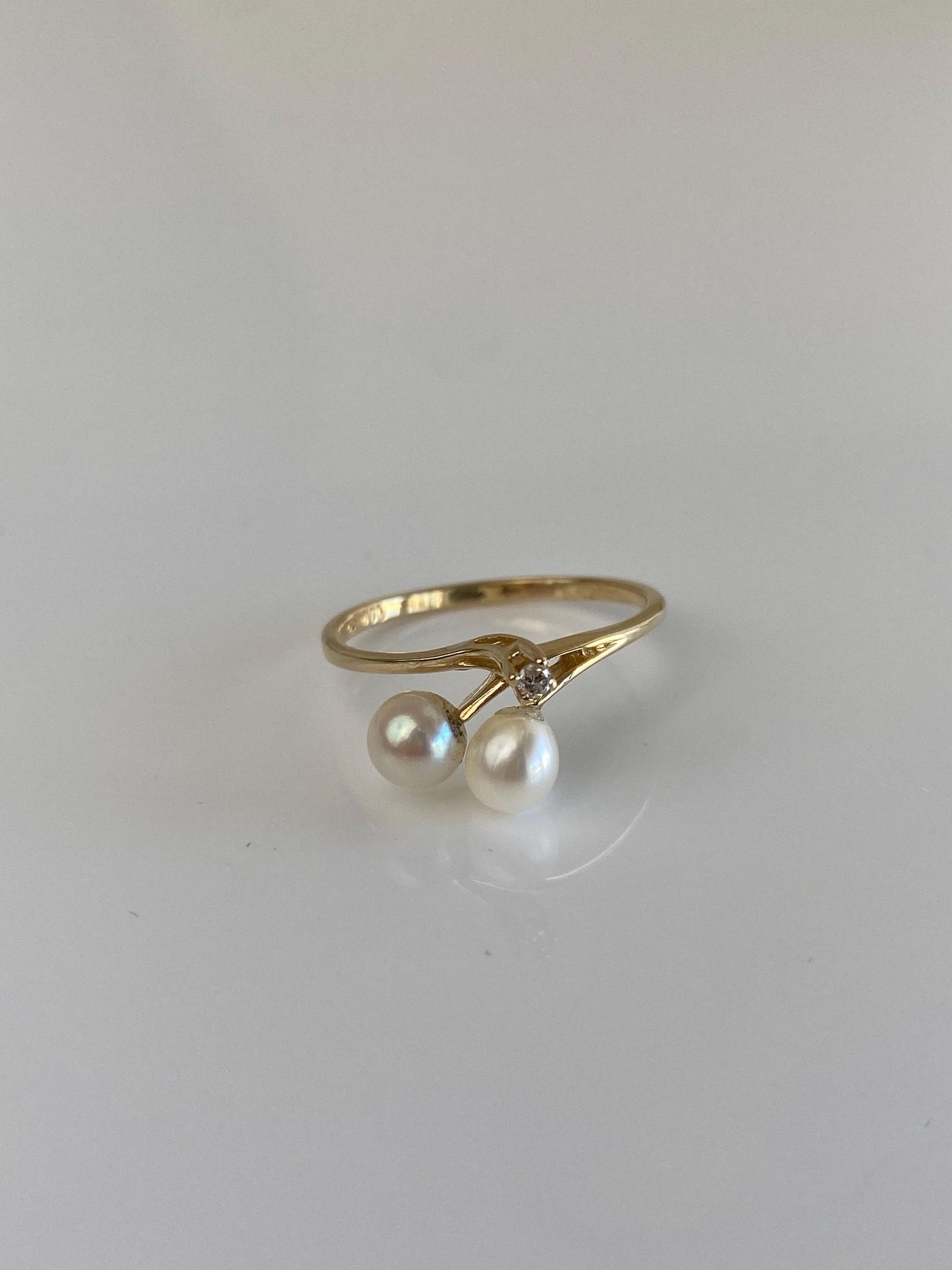Vintage Solid 14k Yellow Gold Clear Sapphire Pearls Ring - Size 6.25