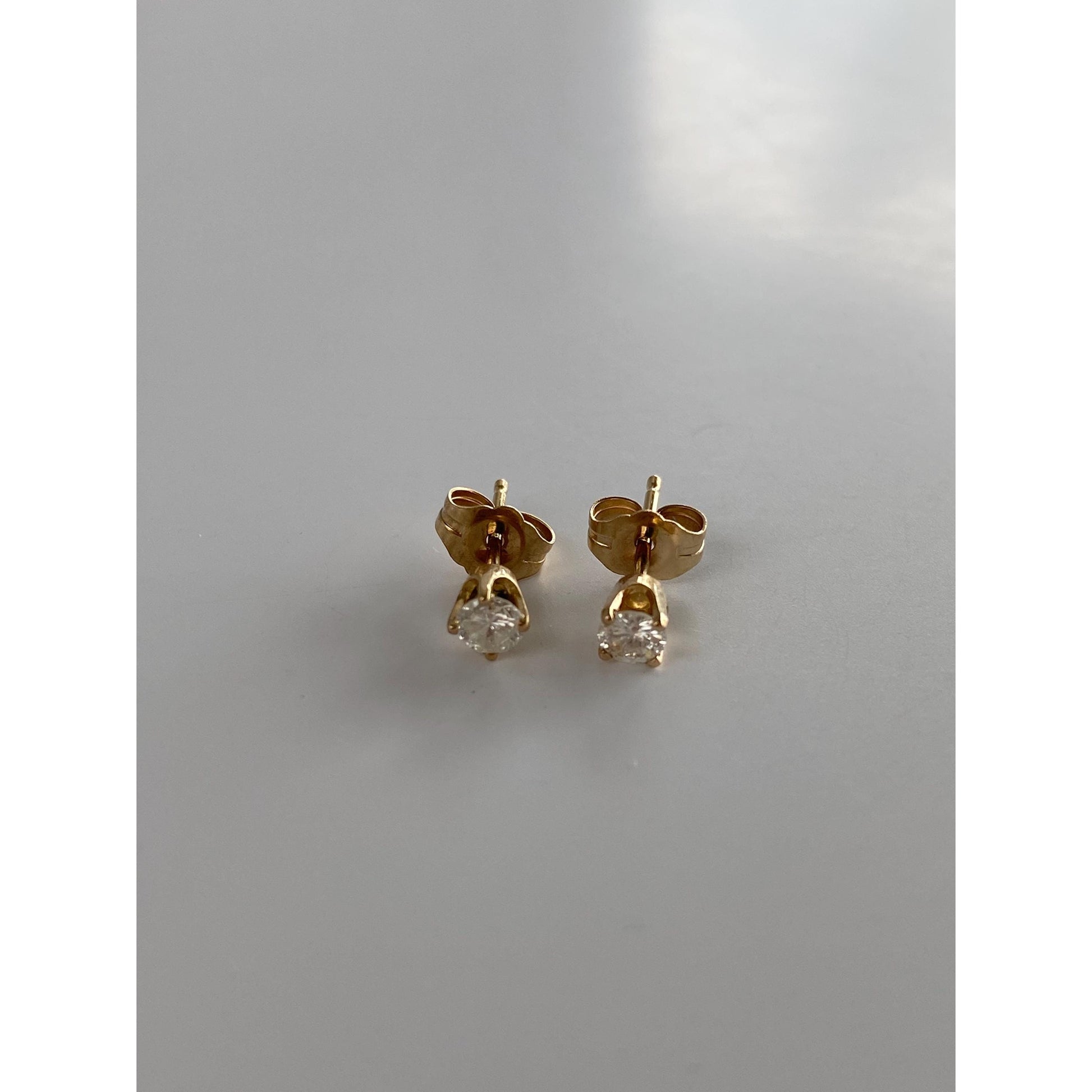 Vintage Solid 14k Yellow Gold Clear Sapphire Stud Earrings