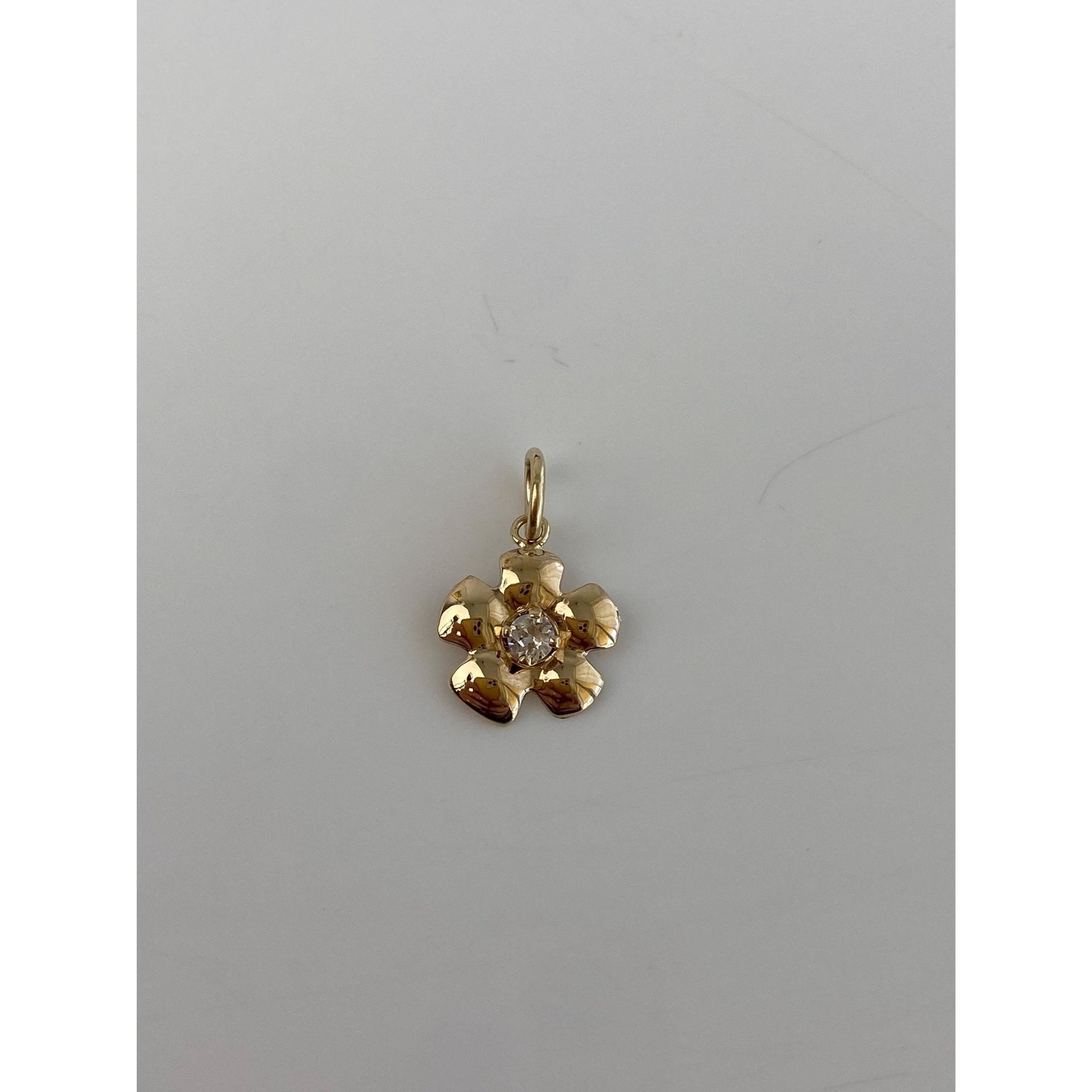 Vintage Solid 14k Yellow Gold Clear Spinel Flower Charm
